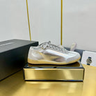 CC SNEAKER IN SILVER GRAY CALFSKIN AND SUEDE