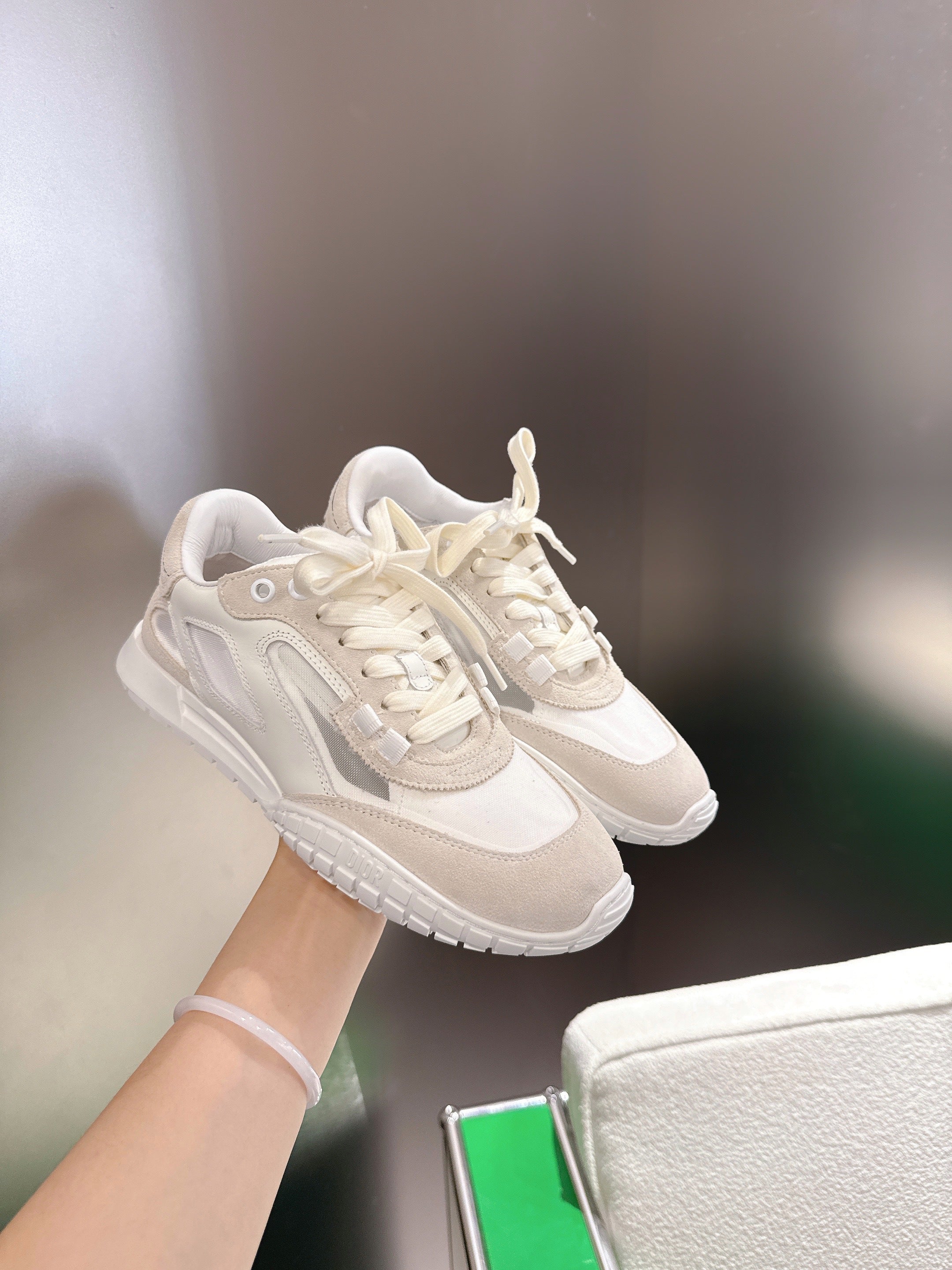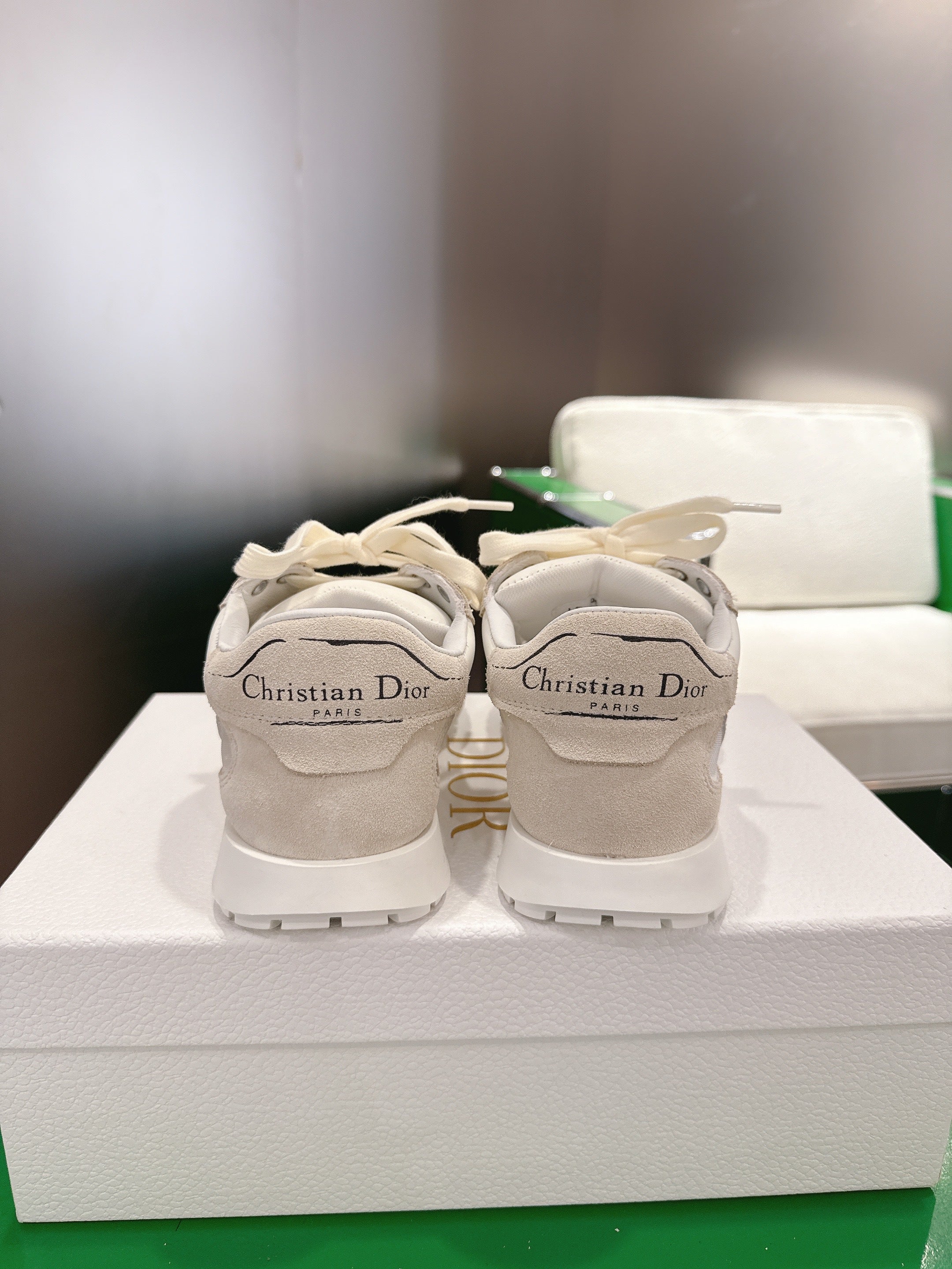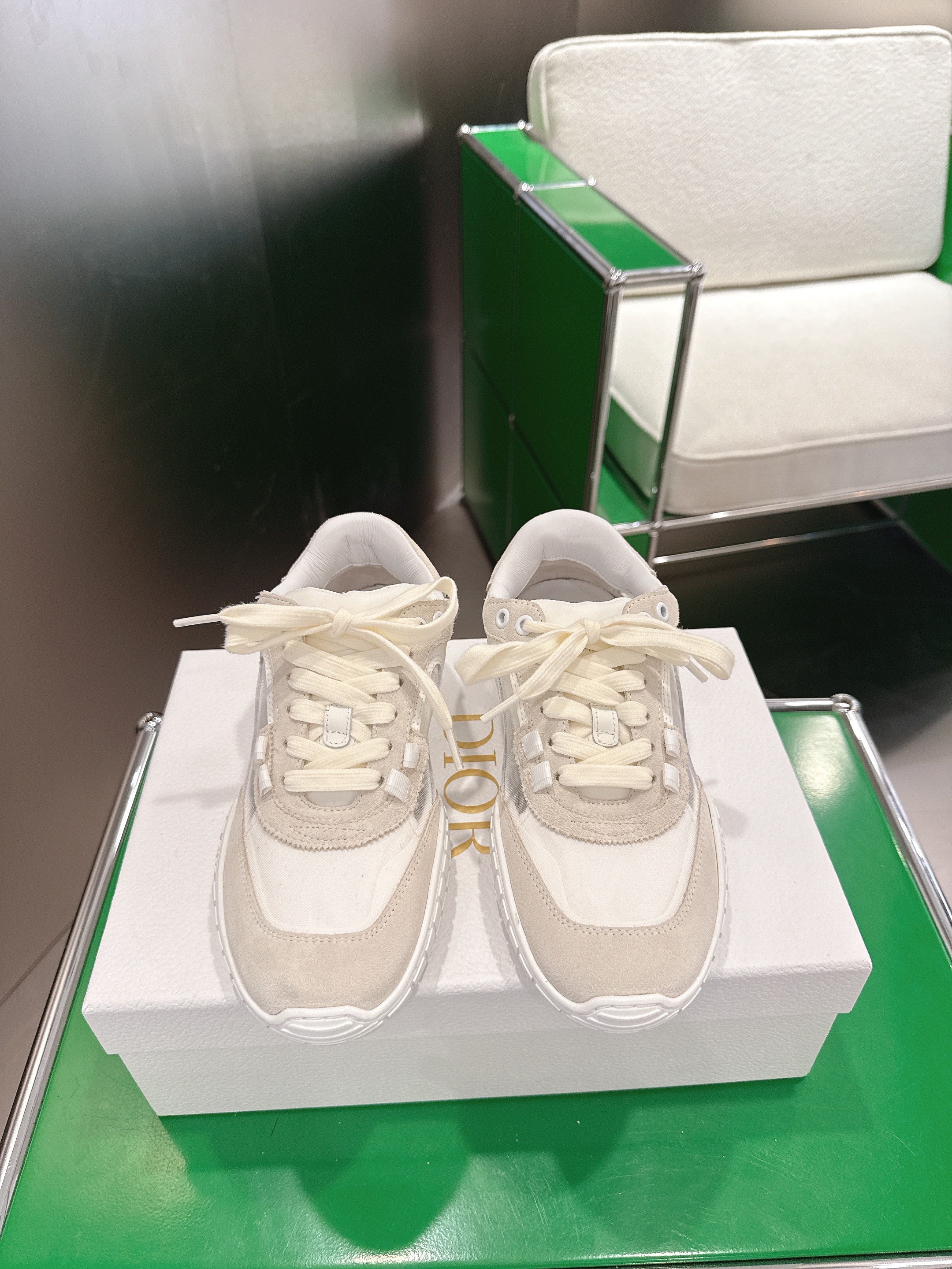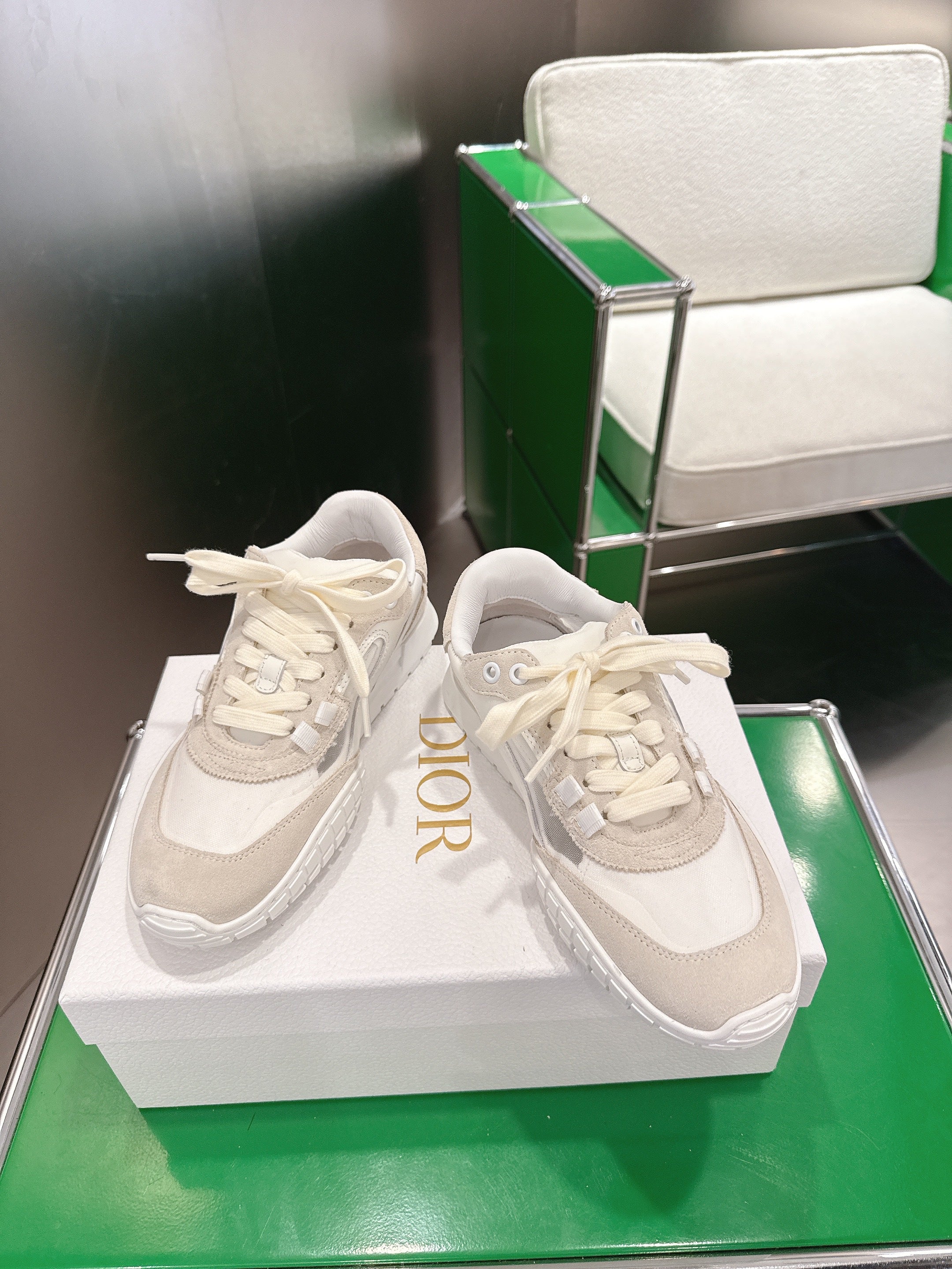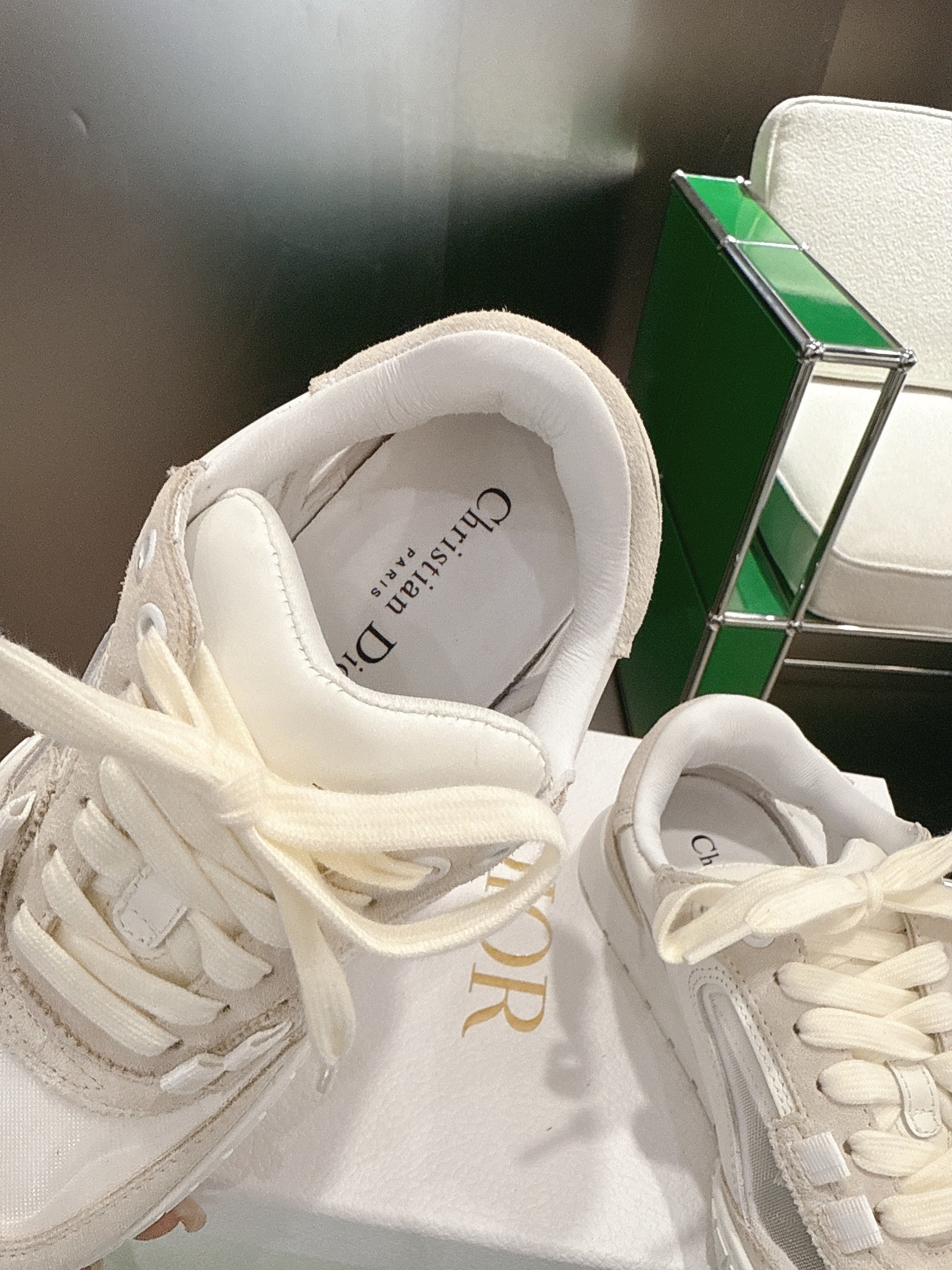 CD Tech Sneakers White Light Pale Taupe Cowhide Mesh Suede 562673