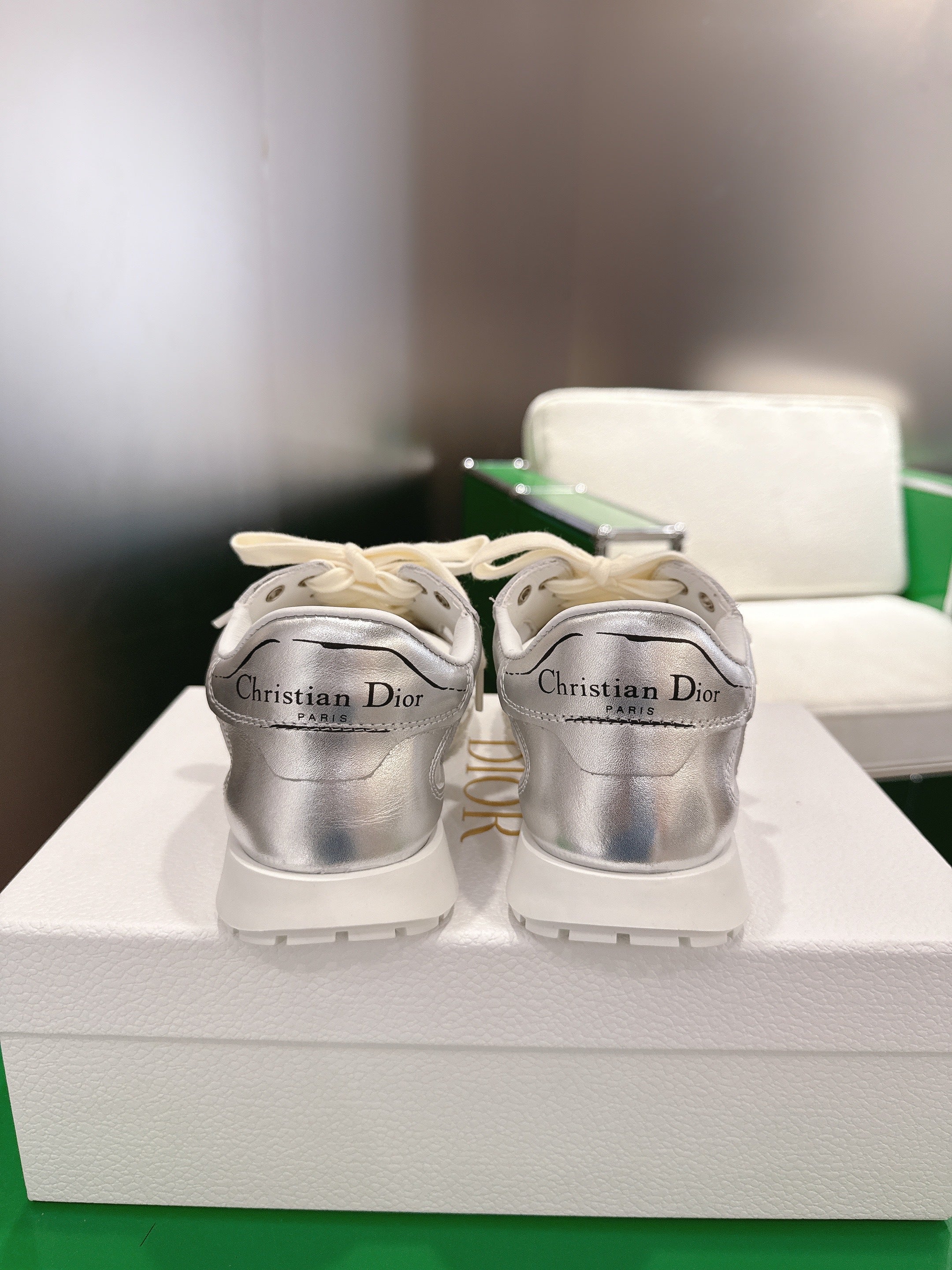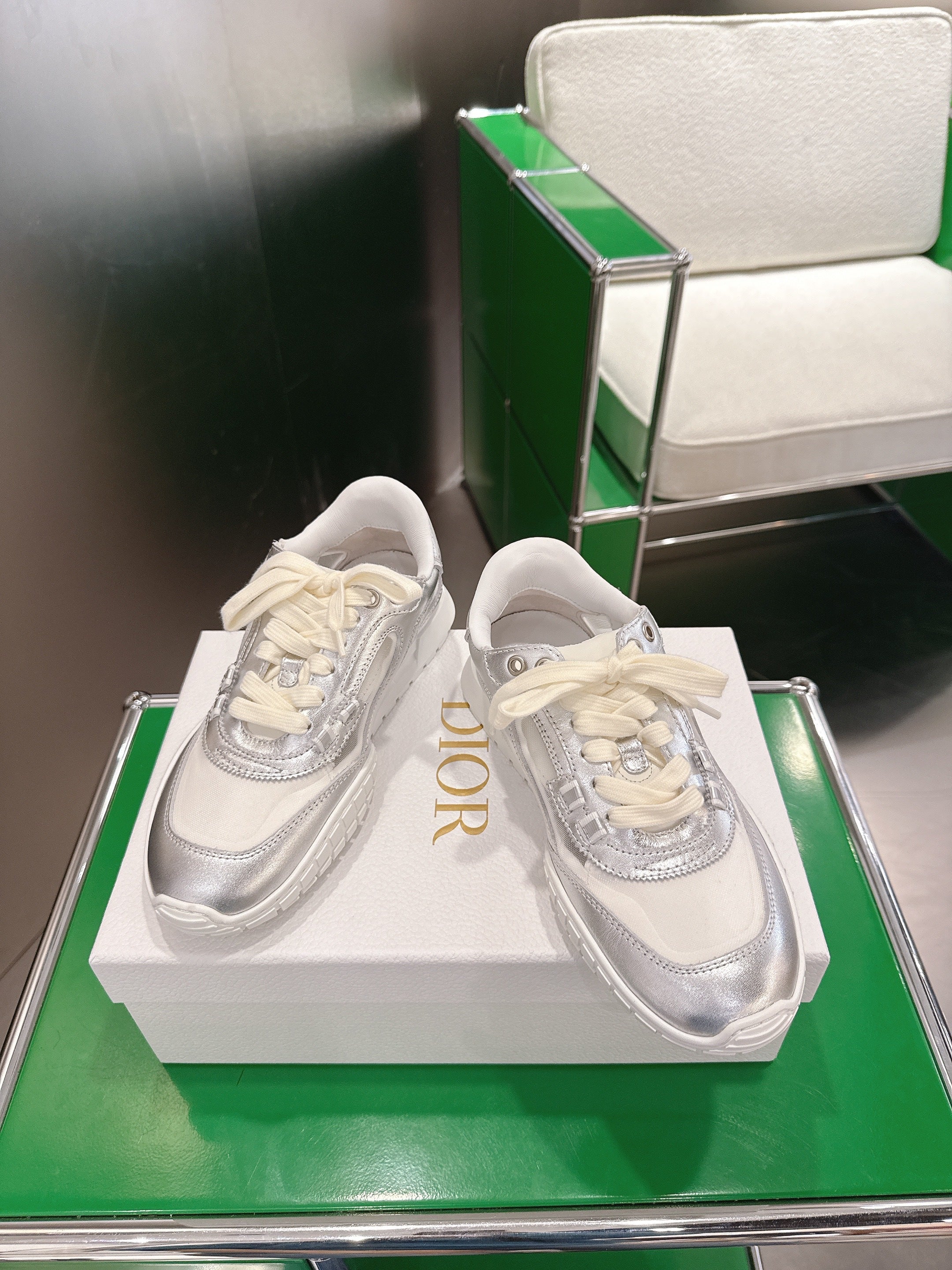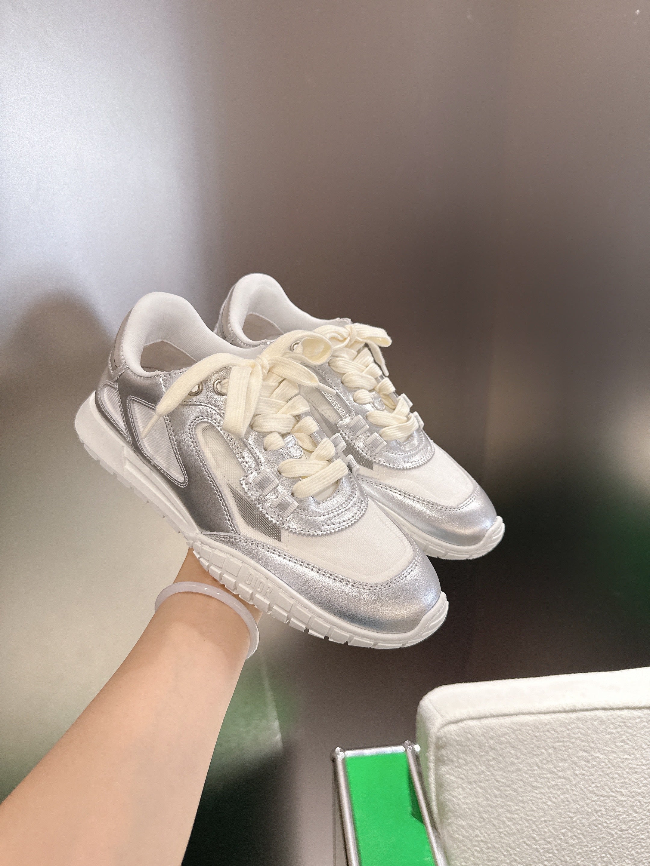 CD Tech Sneakers White Sliver Cowhide Mesh 562670