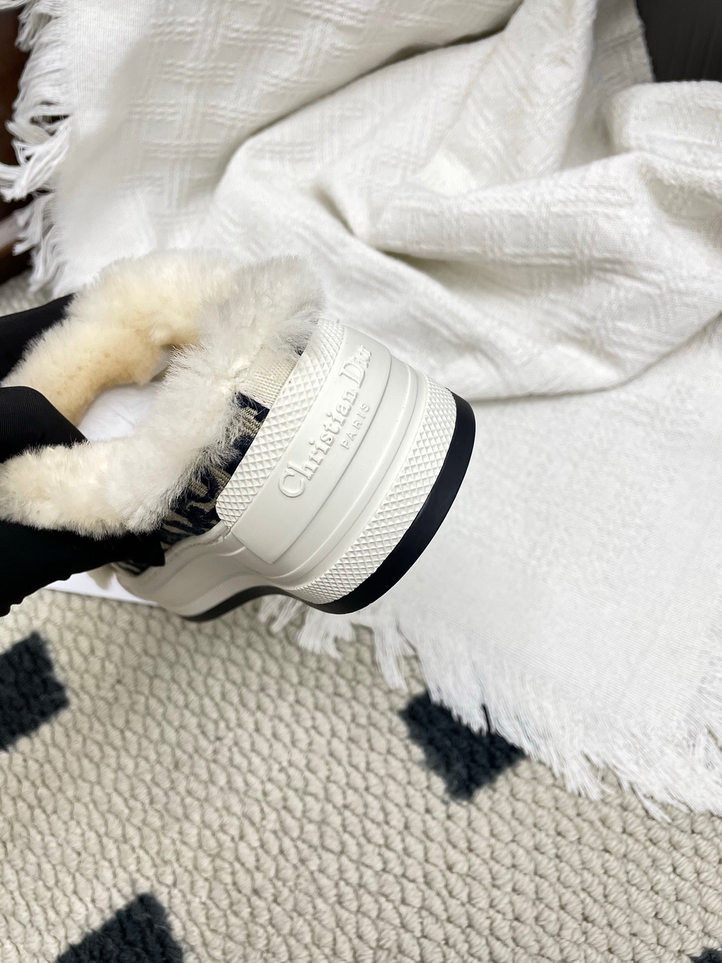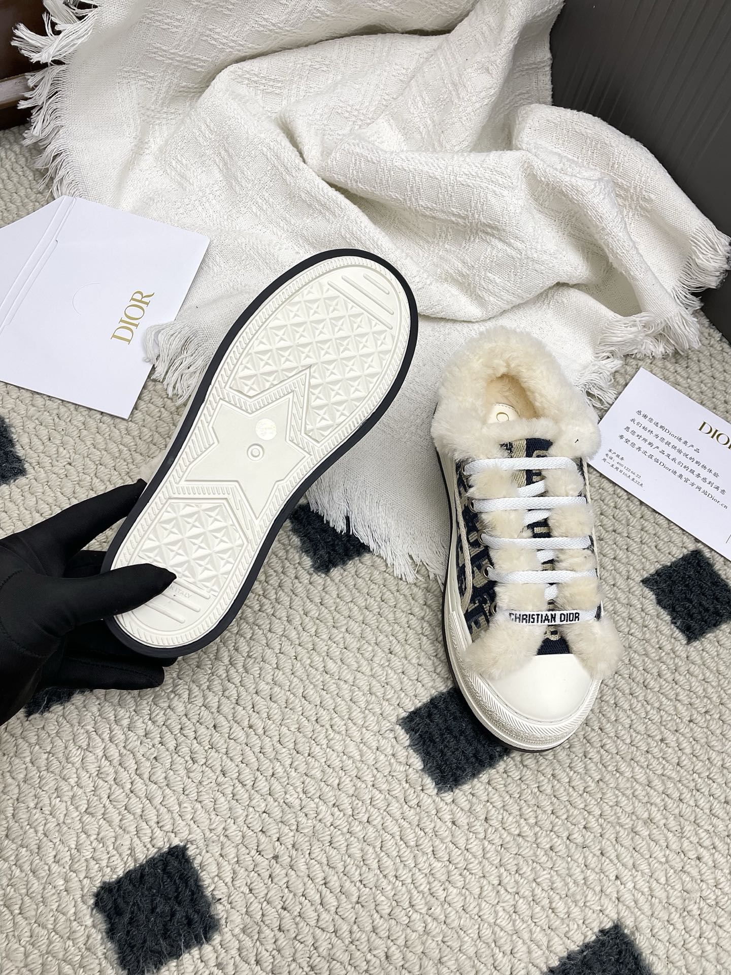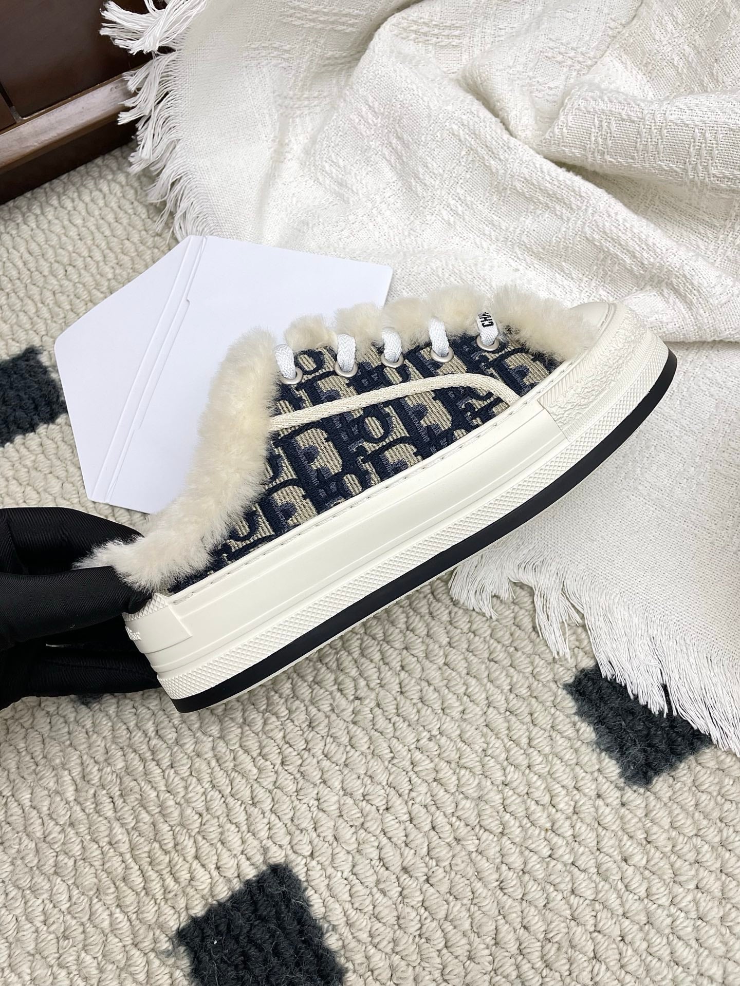 CD Walk'n Dior Platform Sneaker Black Beige Oblique Motif Fabric Wool