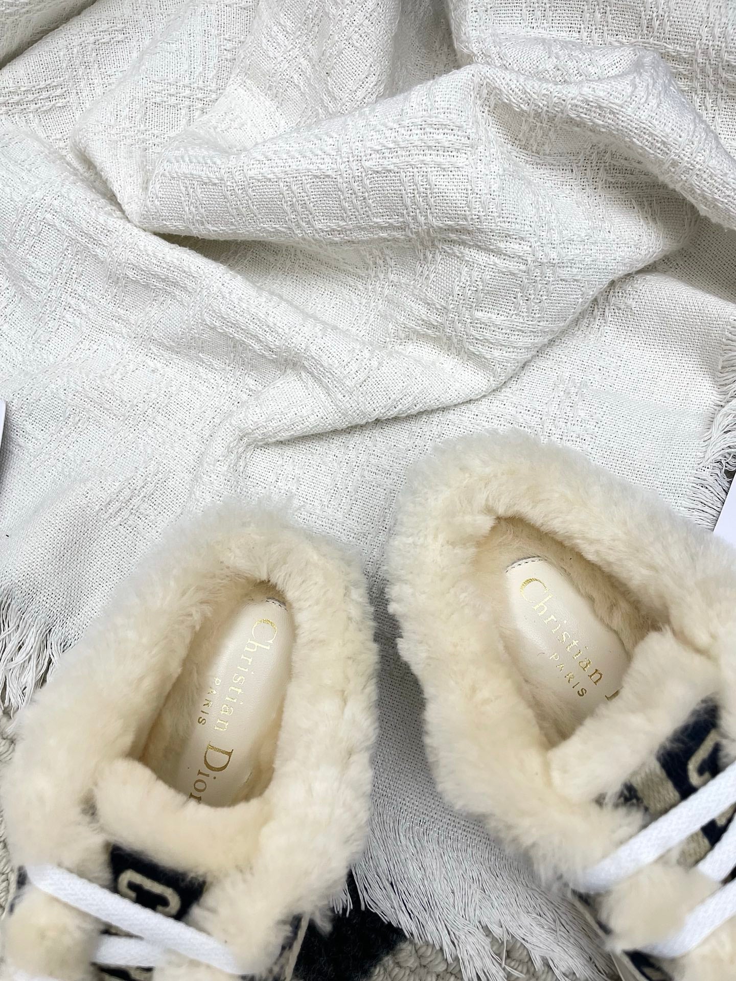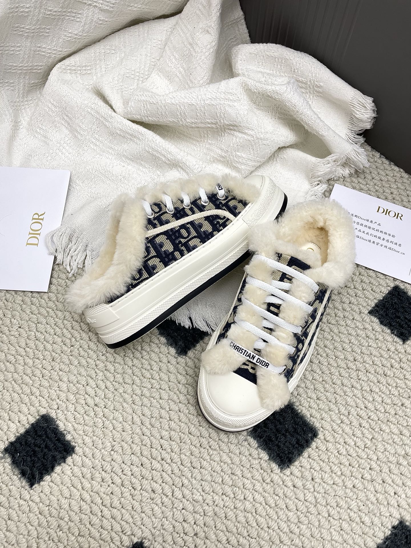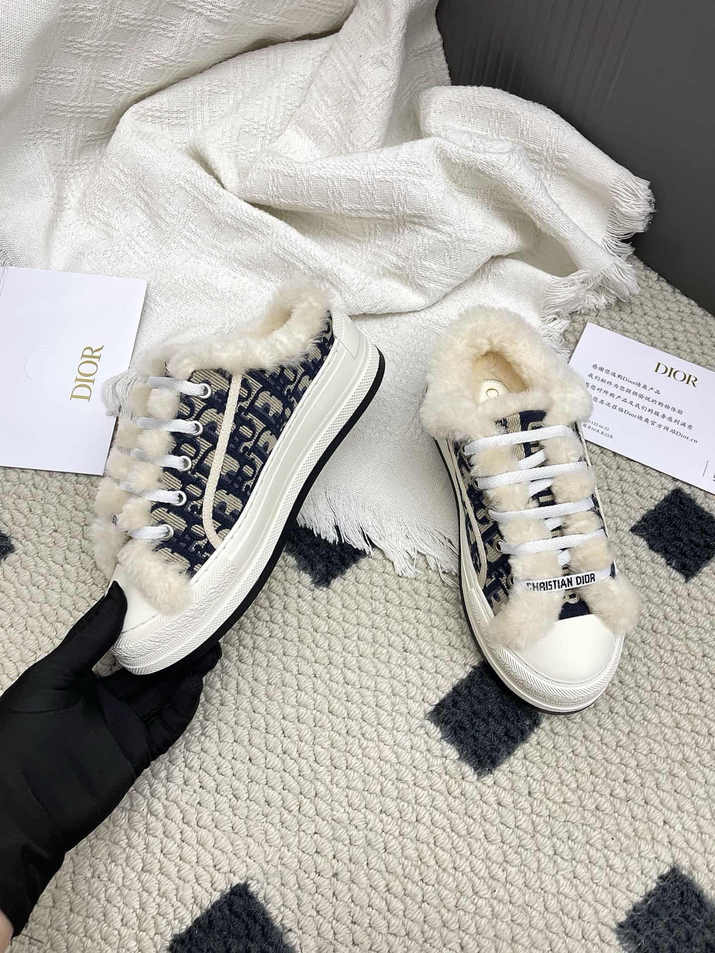 CD Walk'n Dior Platform Sneaker Black Beige Oblique Motif Fabric Wool