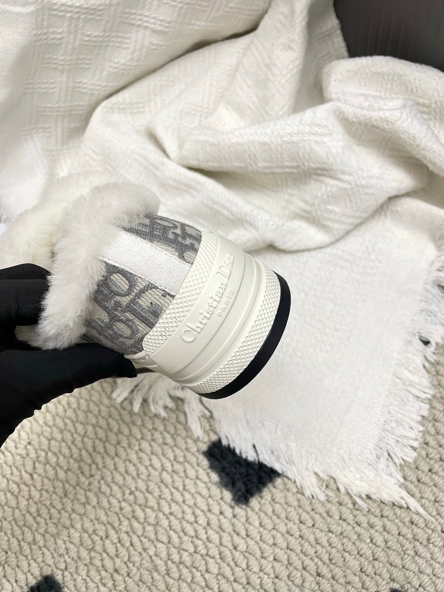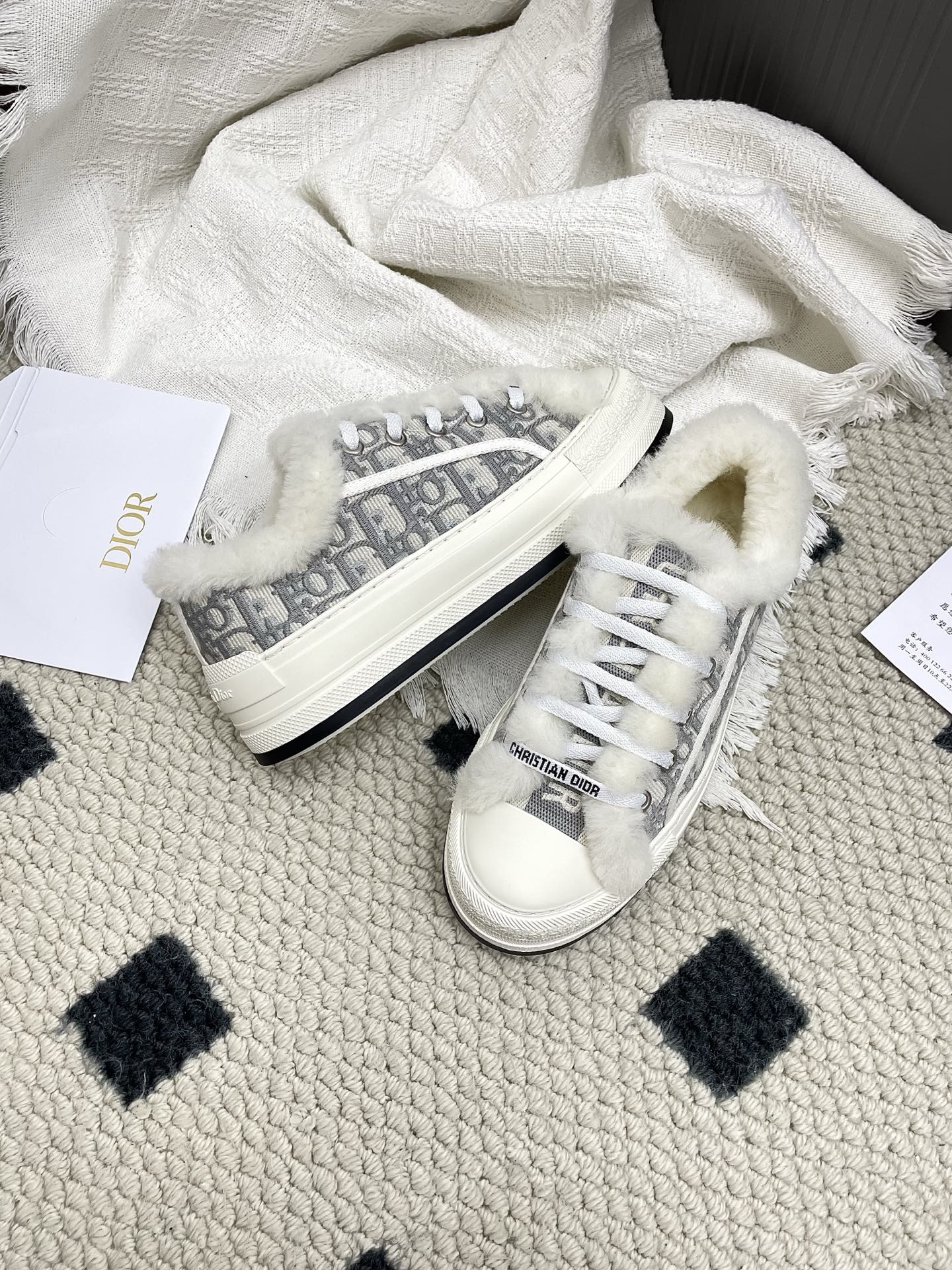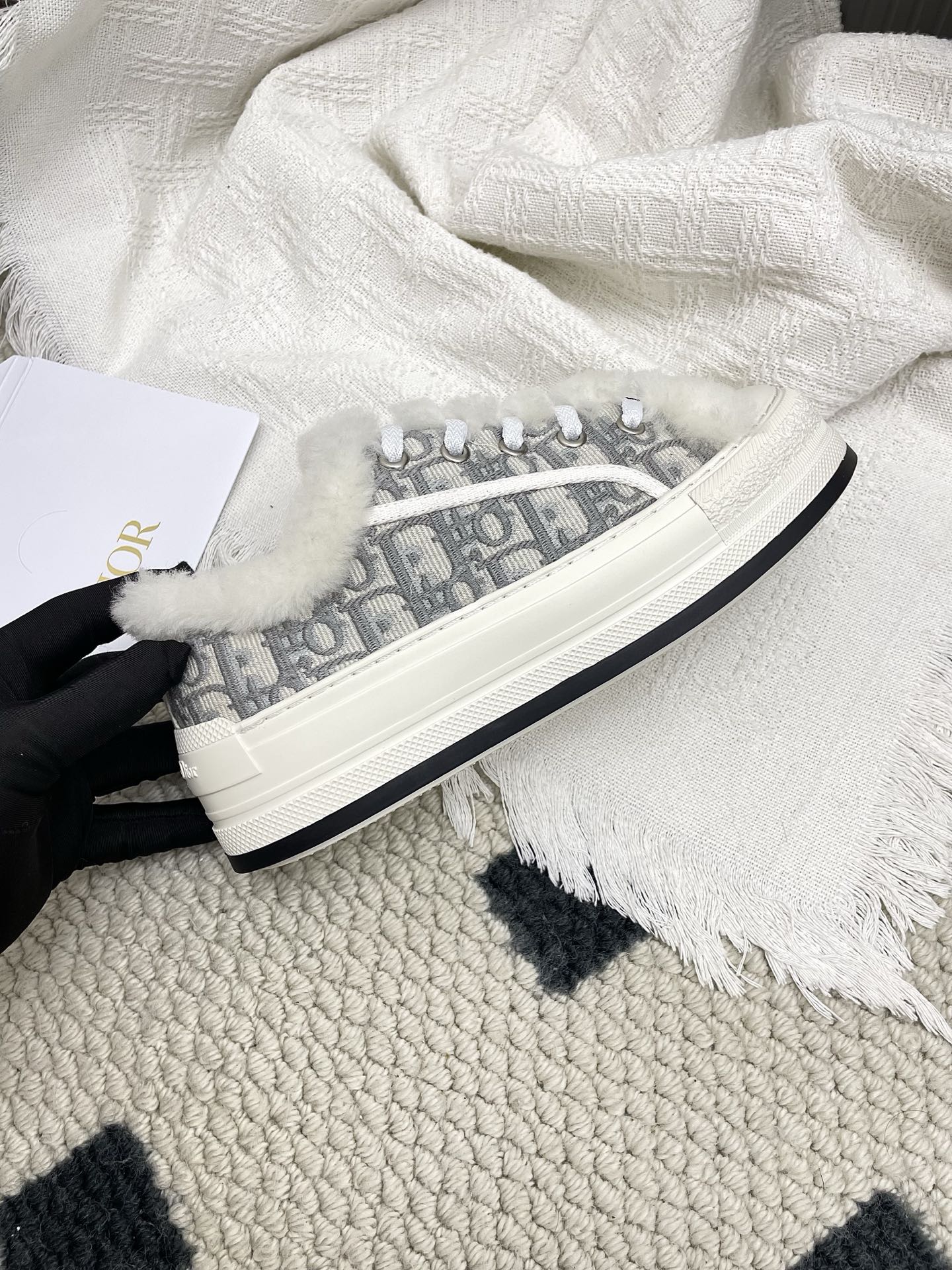 CD Walk'n Dior Platform Sneaker Grey Beige Oblique Motif Fabric Wool