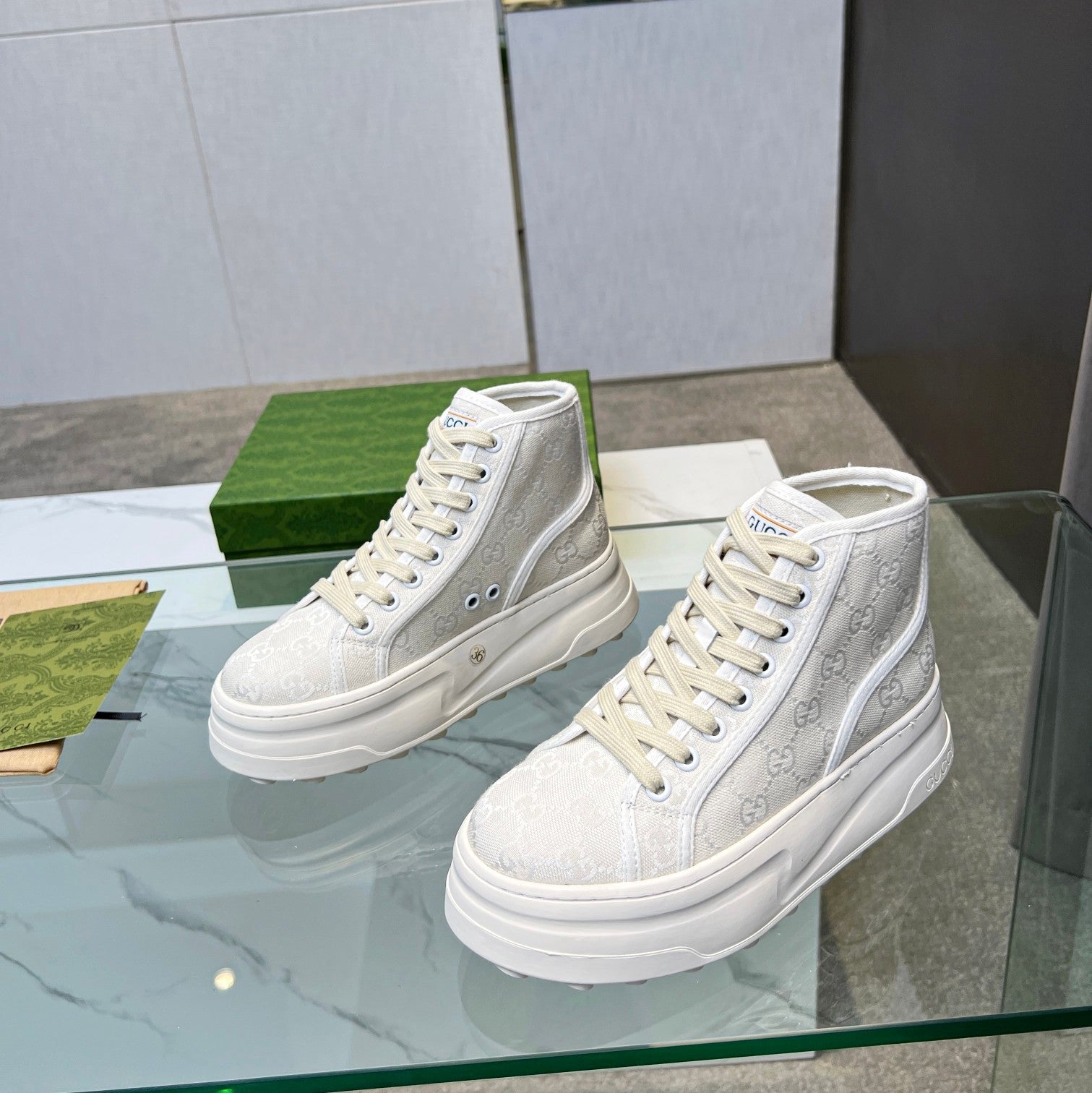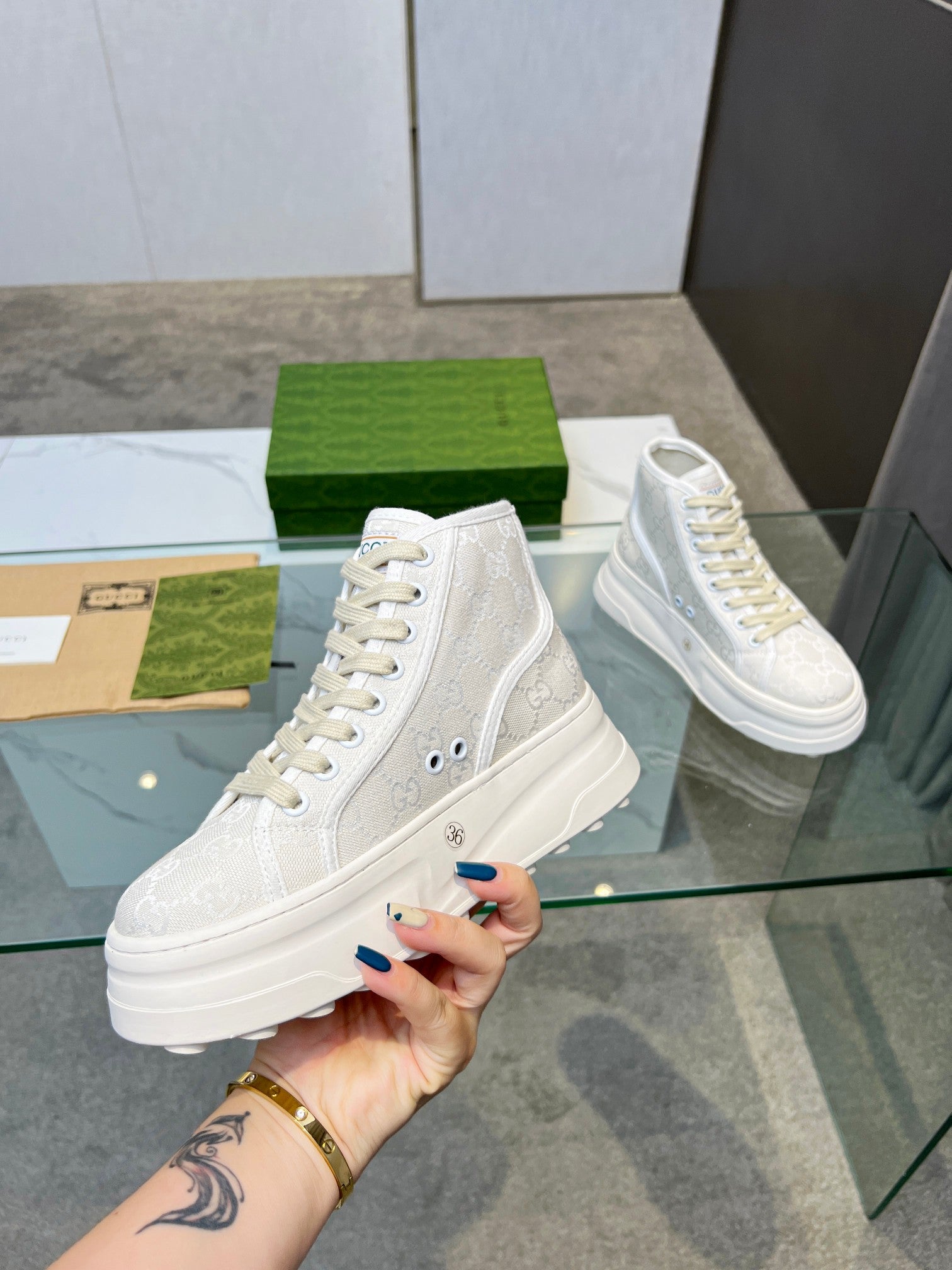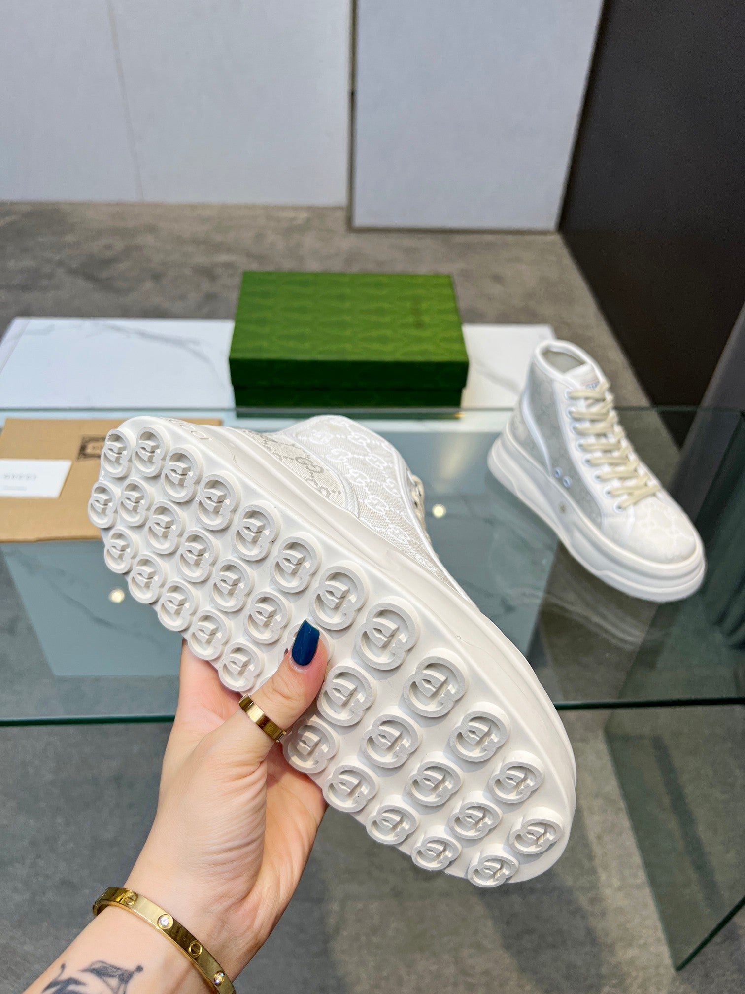 GG High Top Sneakers 50mm White Beige Canvas 457433