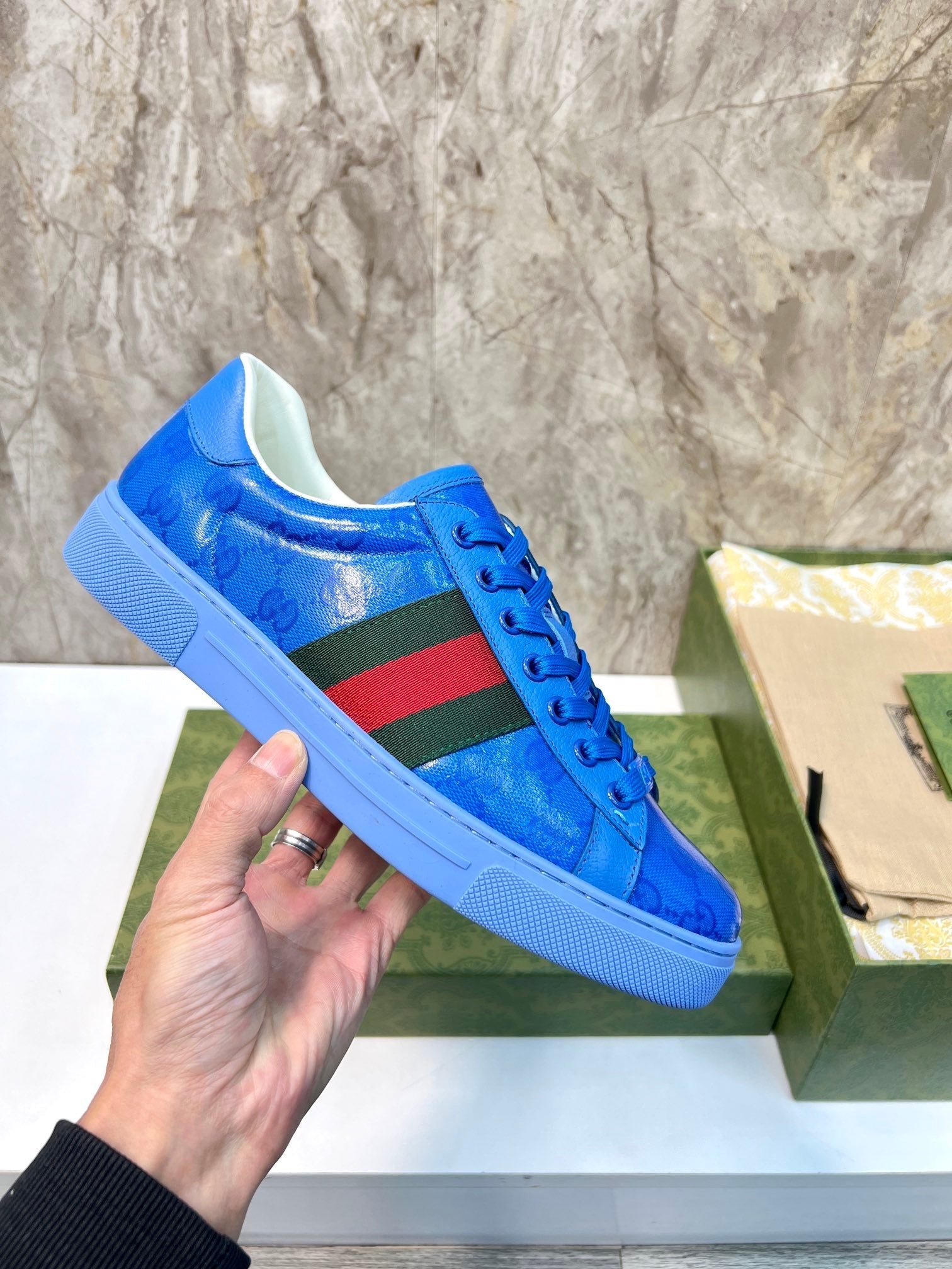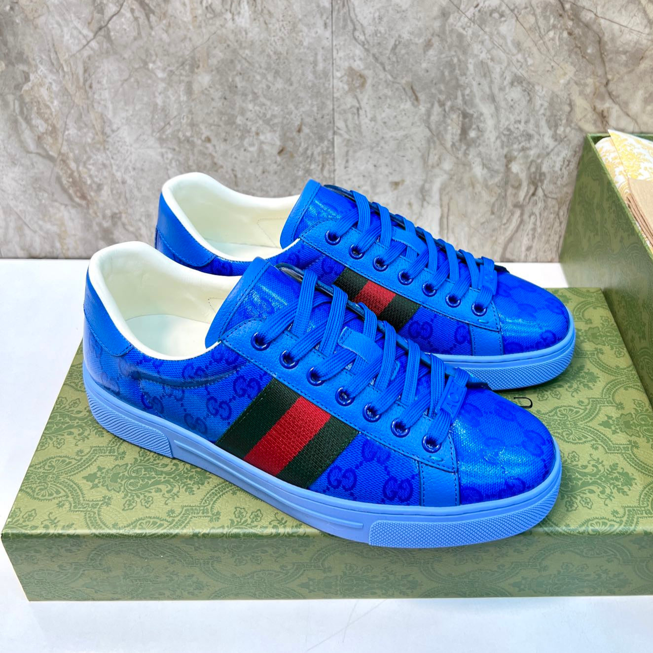 GG Men's ACE Sneaker Blue Calfskin 525957
