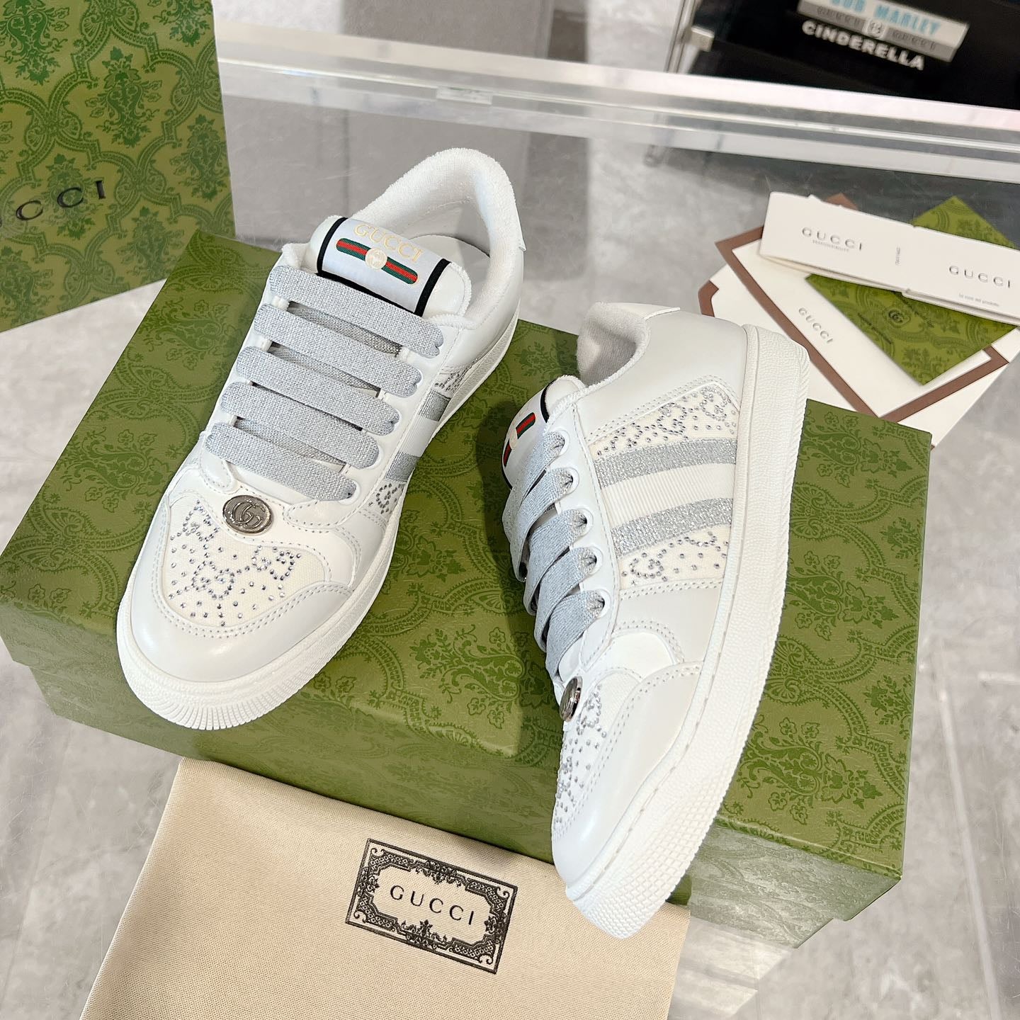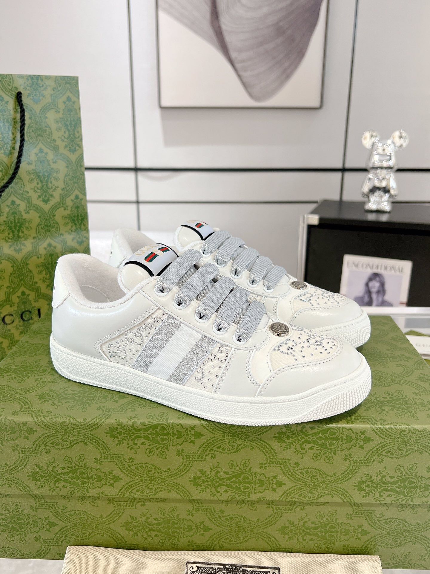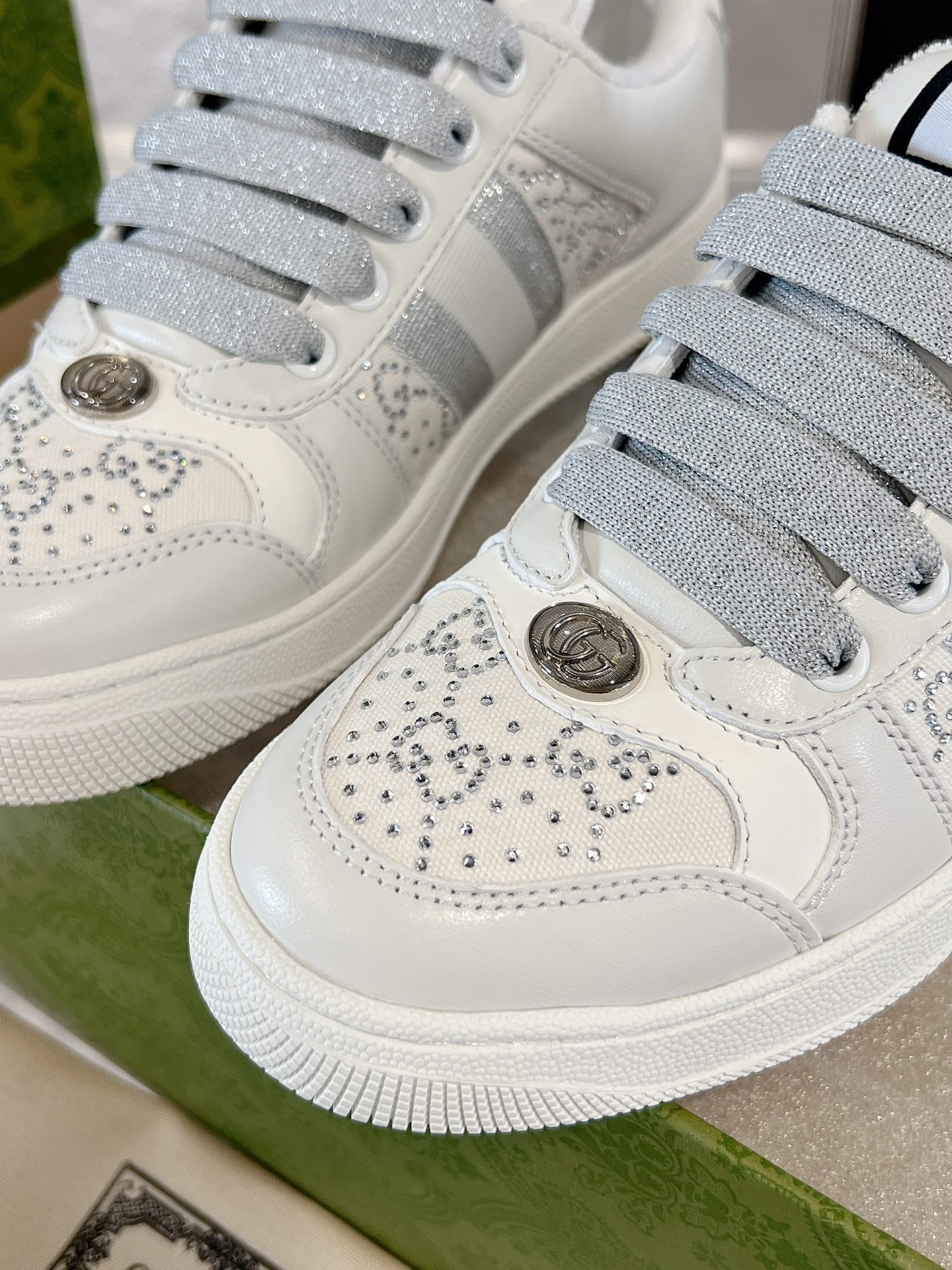 Gucci 2025 Screener Sneaker White Gray Leather Canvas 758539