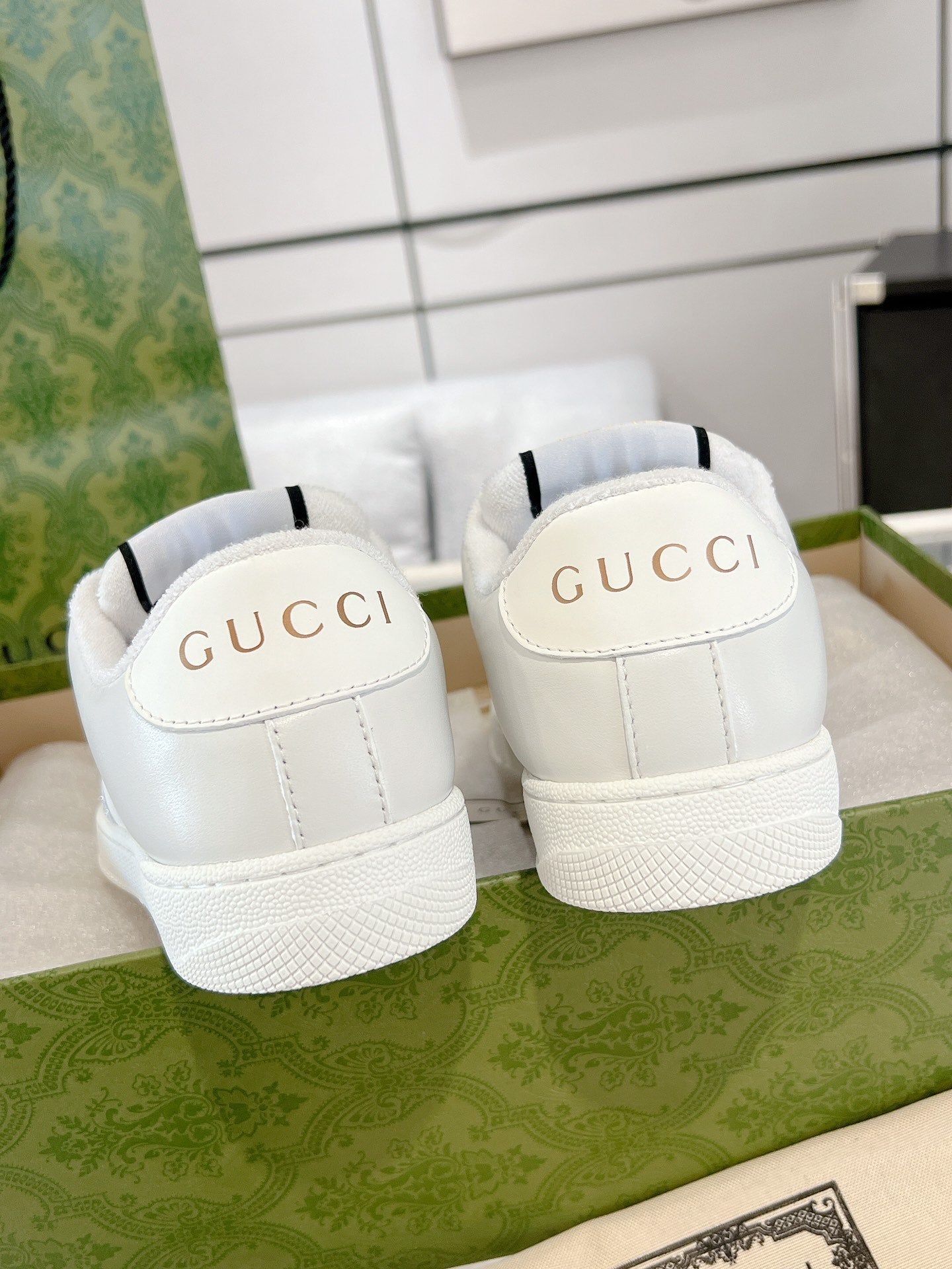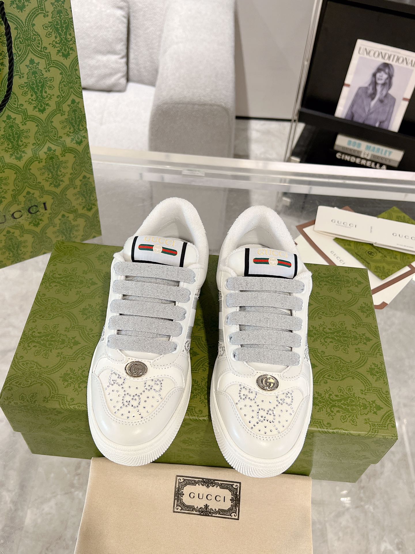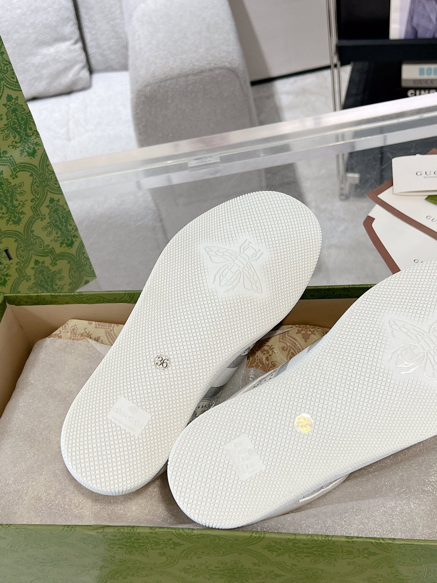 Gucci 2025 Screener Sneaker White Gray Leather Canvas 758539