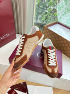 Gucci Shift Damen sneaker Varianten Schwarzes Beige & Dark Brown Canvas and Suede Trim 506841