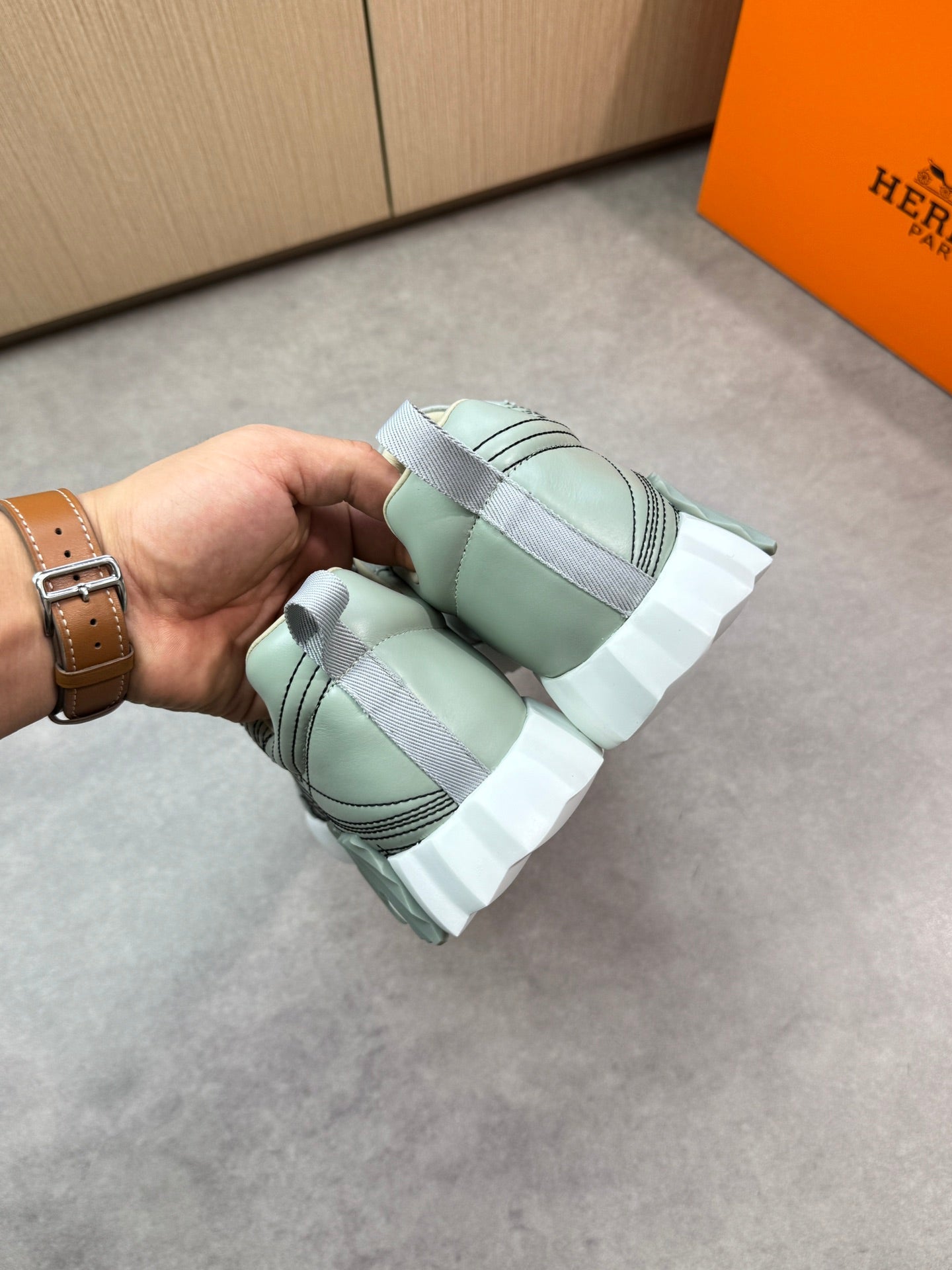 HM Men's Bouncing Sneaker Pastel Green Calfskin Suede 696023