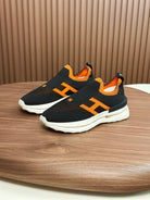 HM Men's Slip on Sneaker Black Orange Flyknit Fabric 690058
