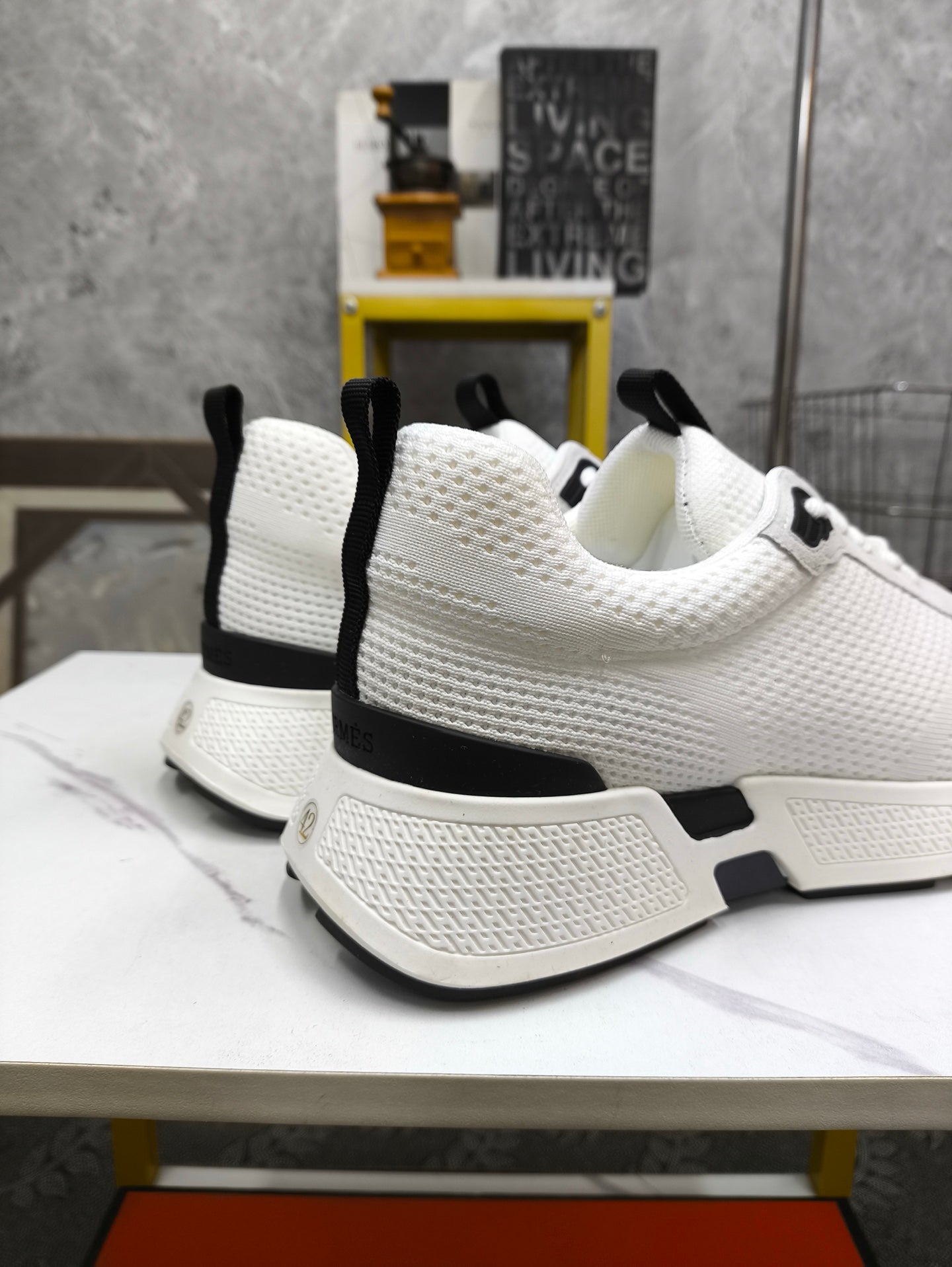 HM Men's Sneaker White Black Mesh Lambskin 543944