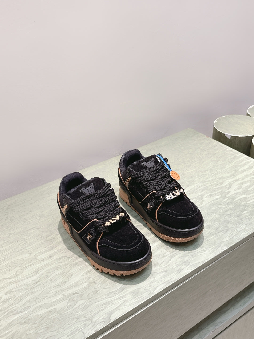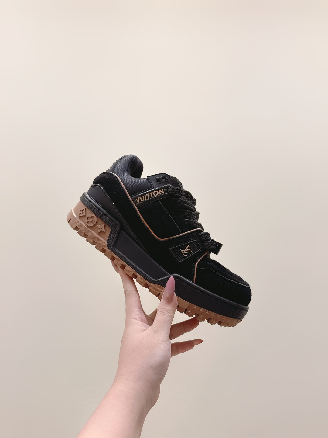 LV Trainer Maxi Sneakers Black Sude Mesh 515196