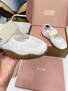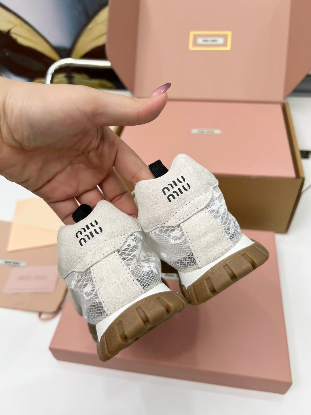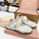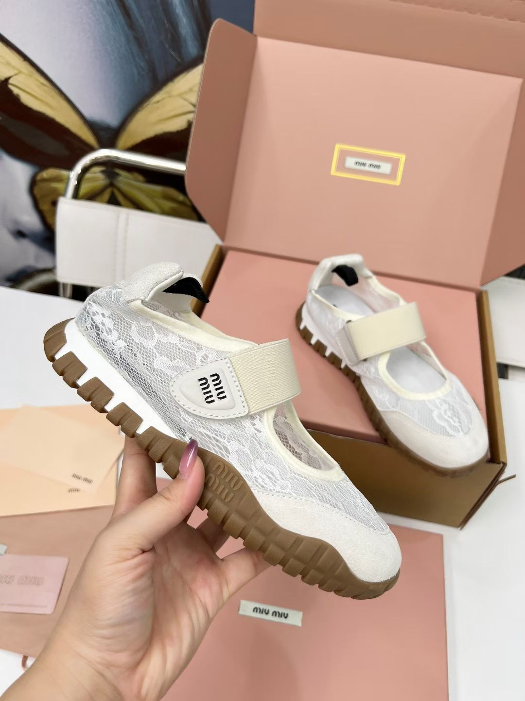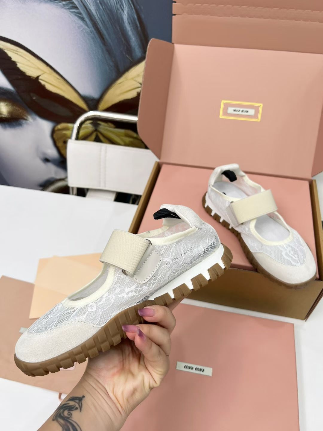 Miu Tyre Ballerina Shoes Beige Suede Lace 456345