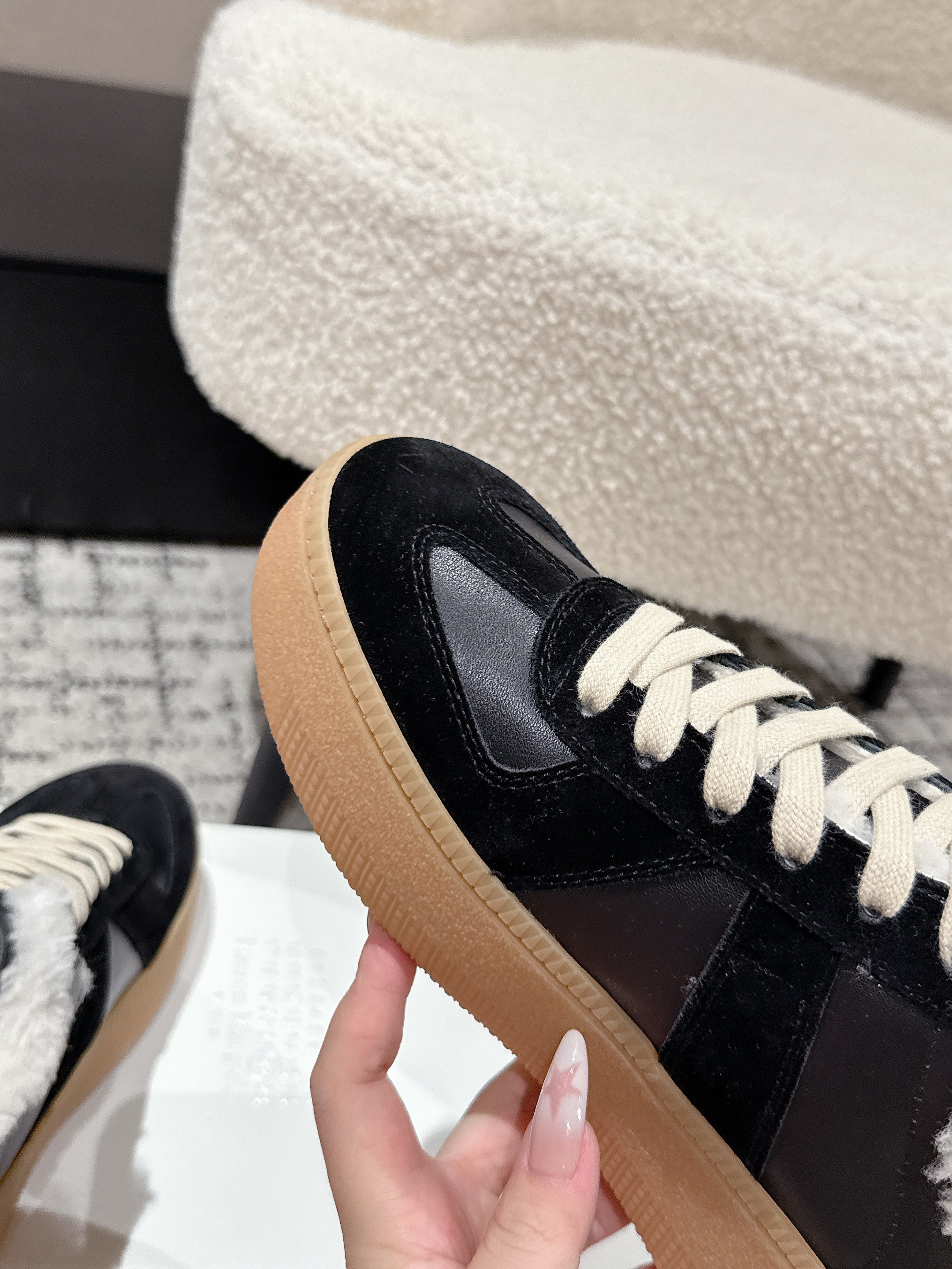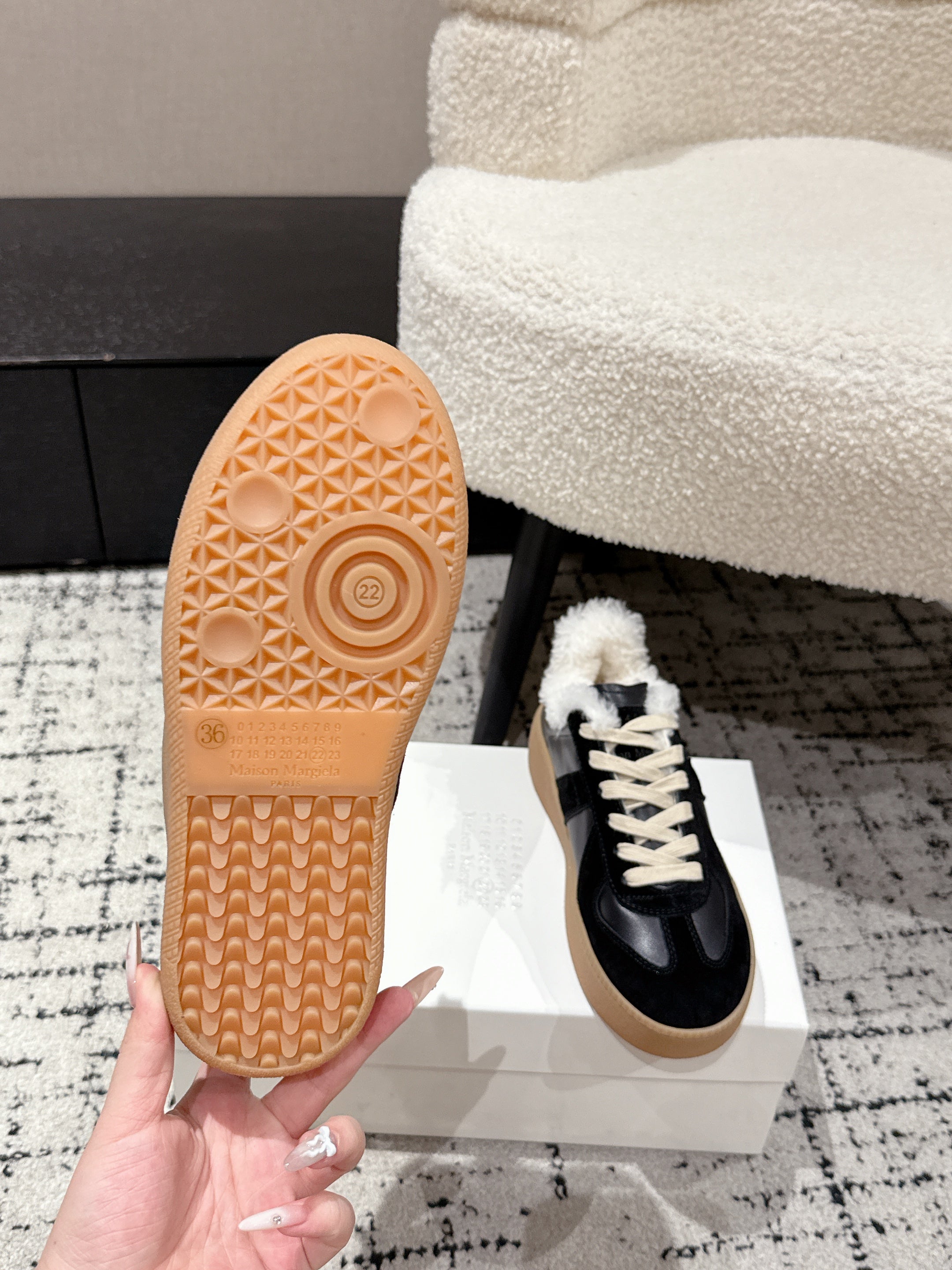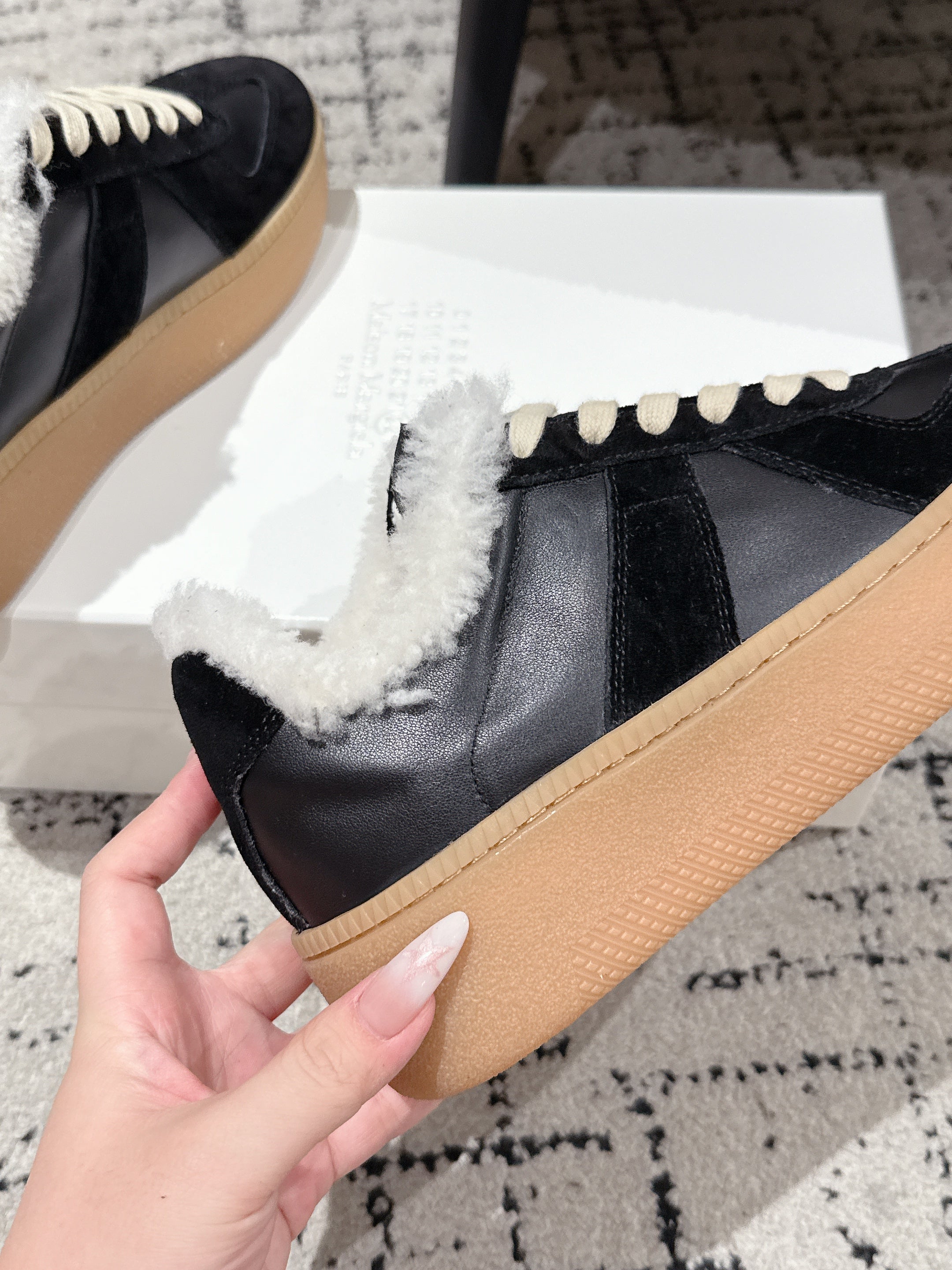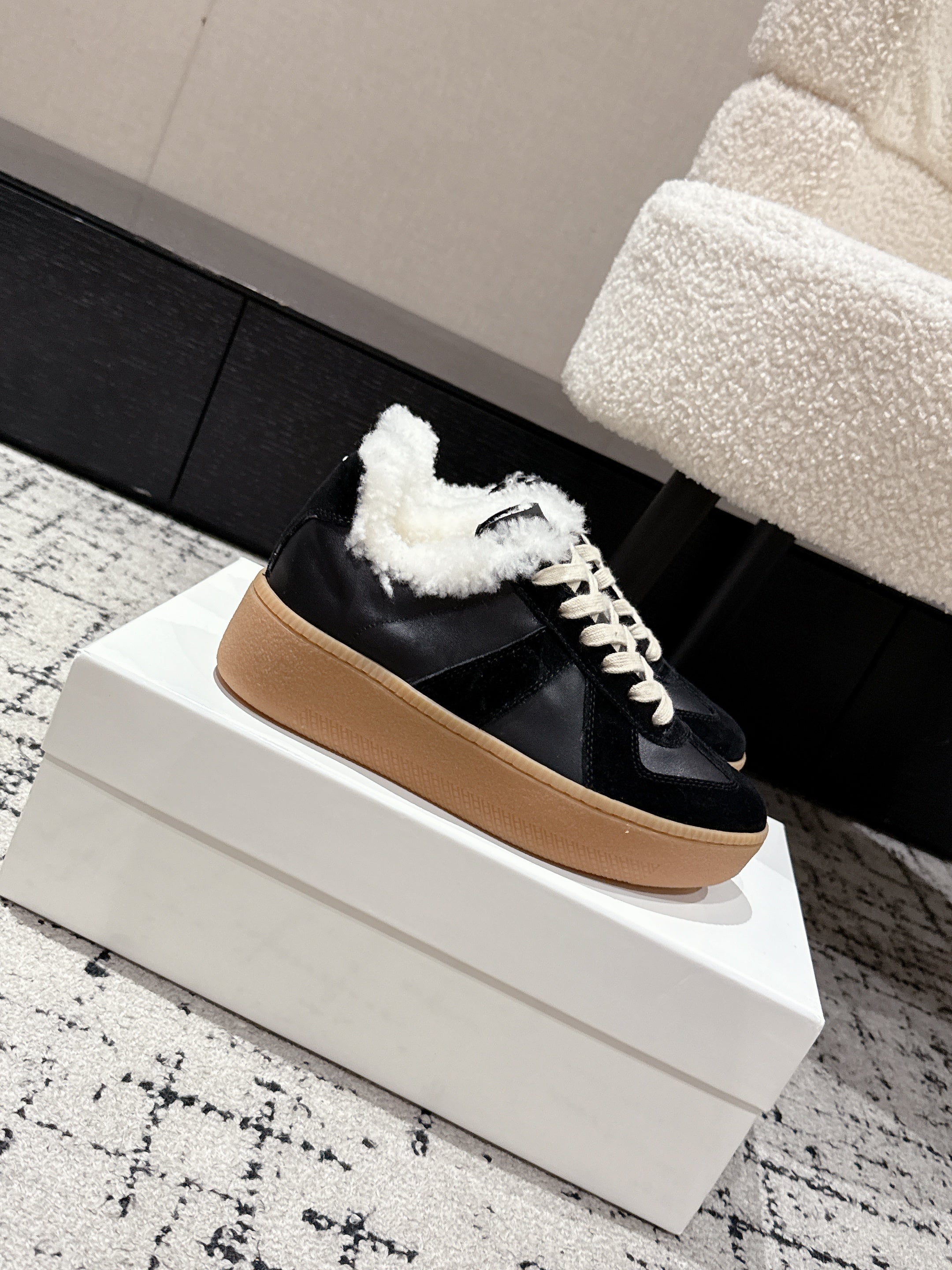 MM Platform German Training Shoes 50mm Black Suede Sheepskin Fur 558418