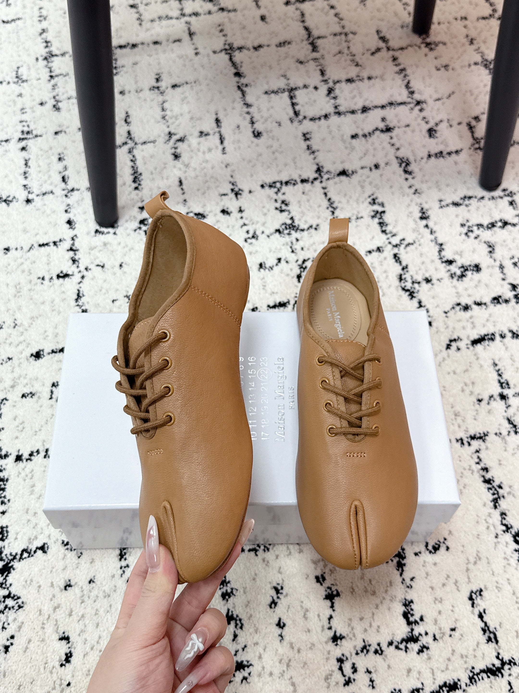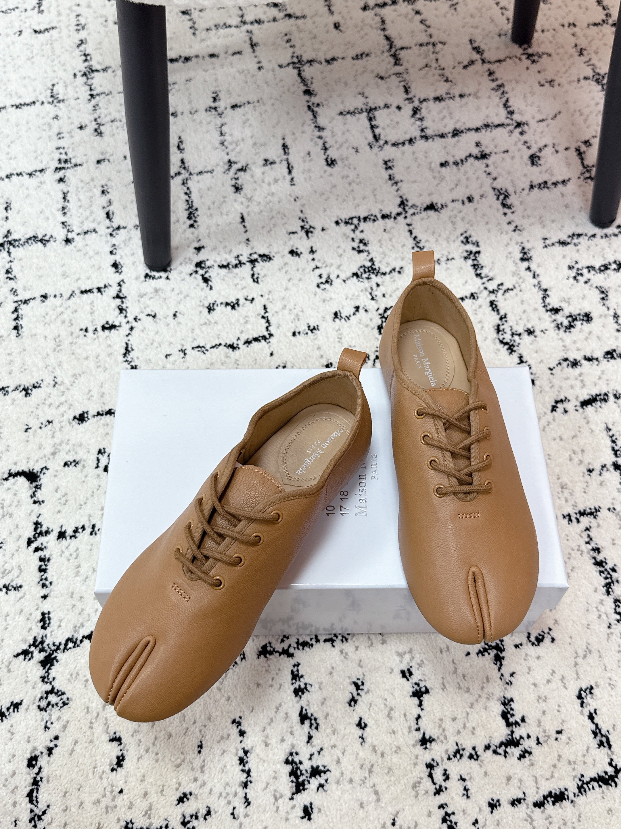 MM Tabi 6-Point Toe Lace-up Shoes Camel Calfskin 558420