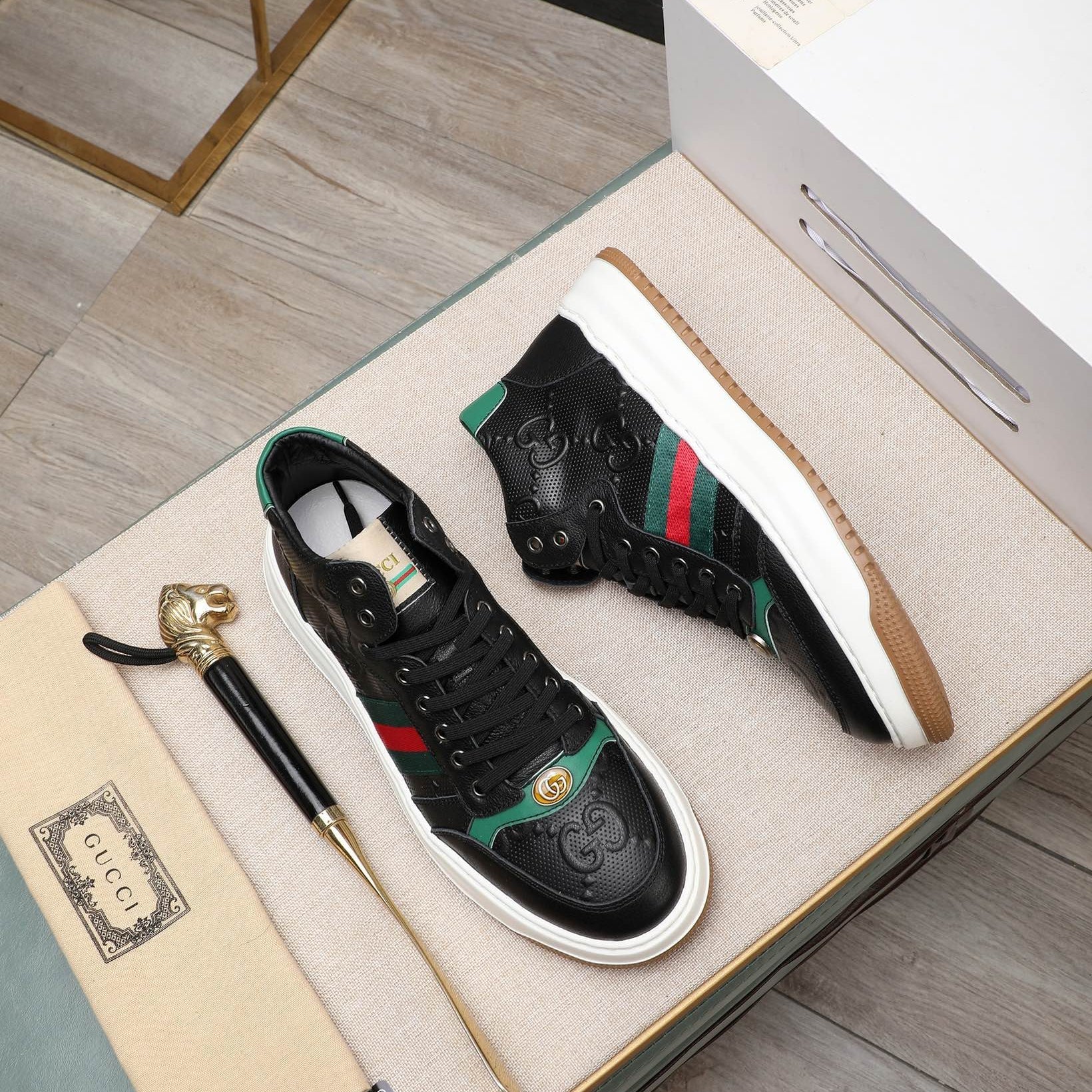 GG Men's Sneaker White Black Cowhide 535204