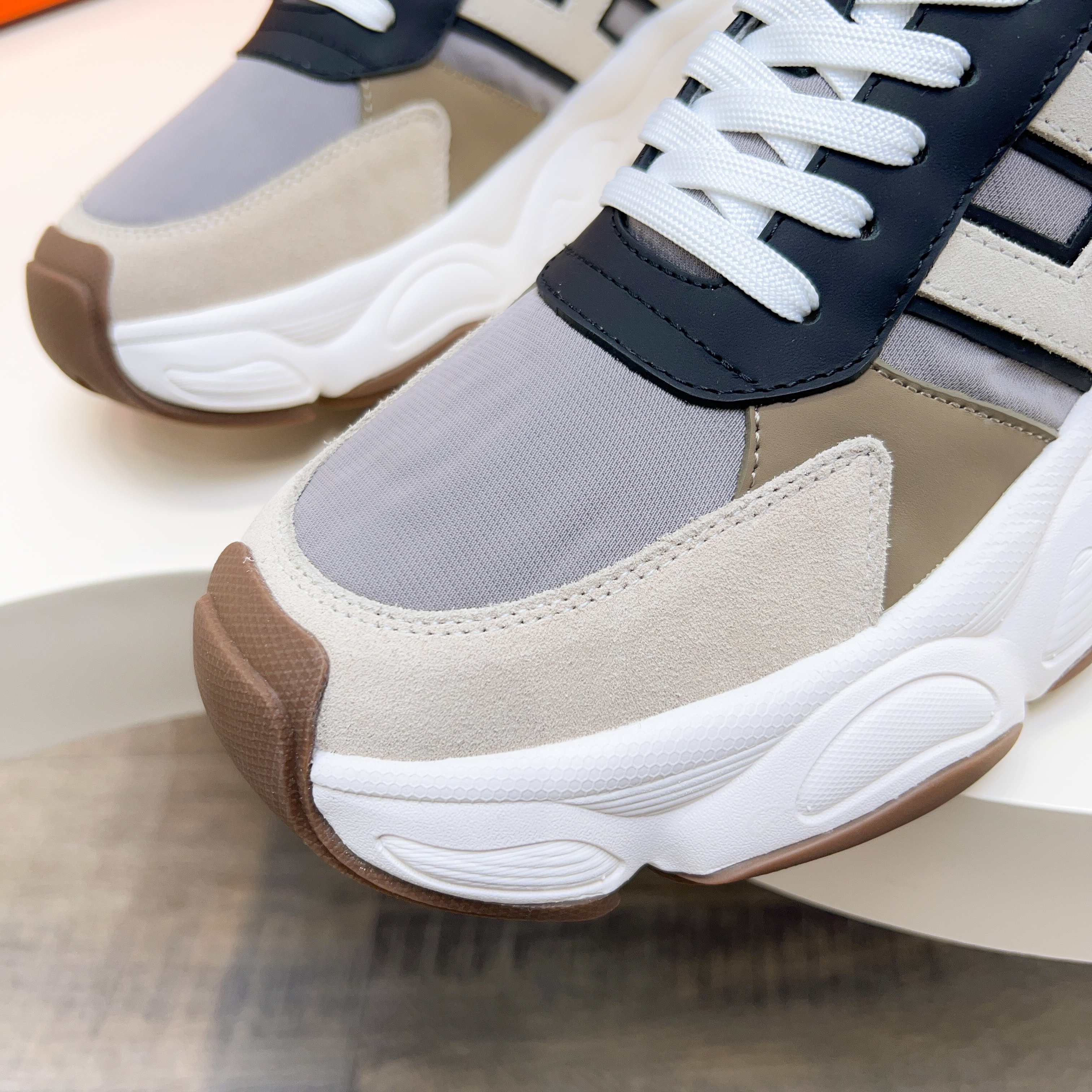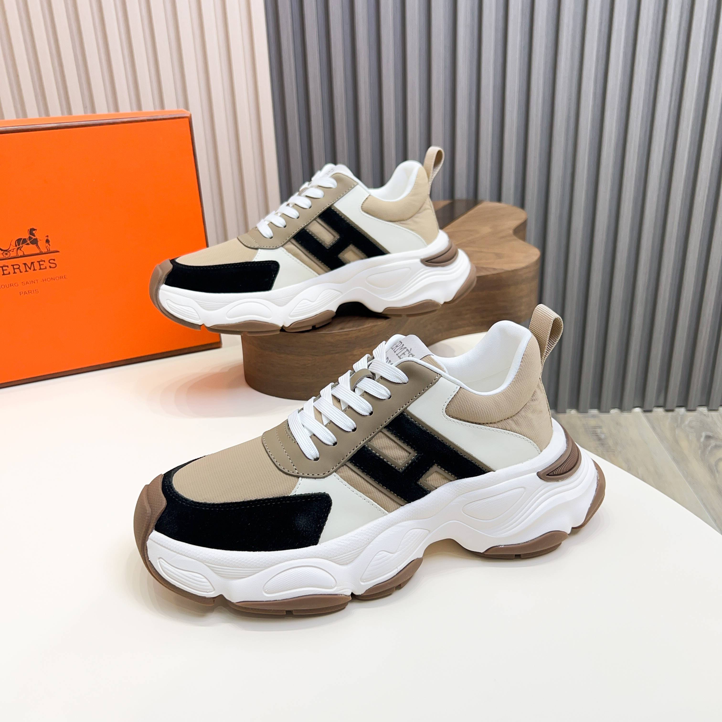 HM Men's Sneaker Beige Cowhide Fabric 603857