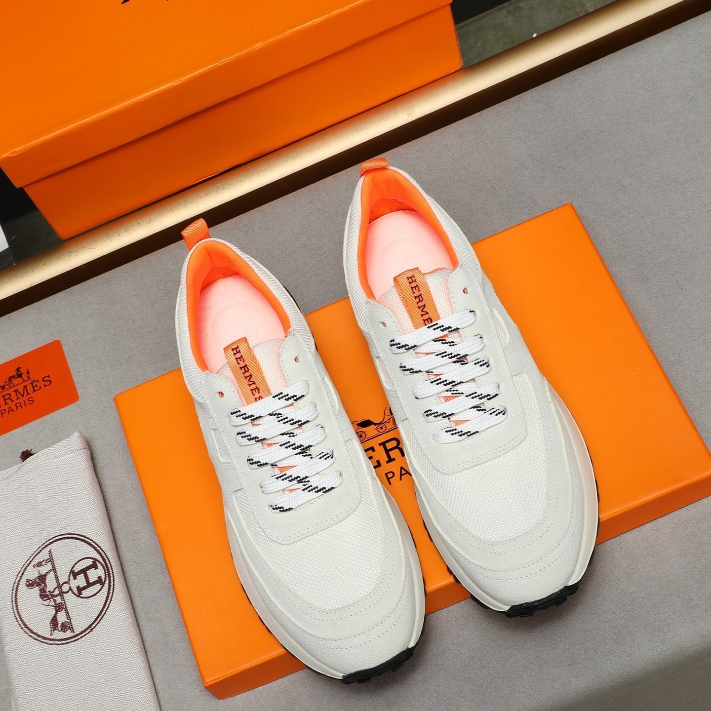HM Men's 25 Bouncing Sneaker Orange Mesh Cowhide 639251