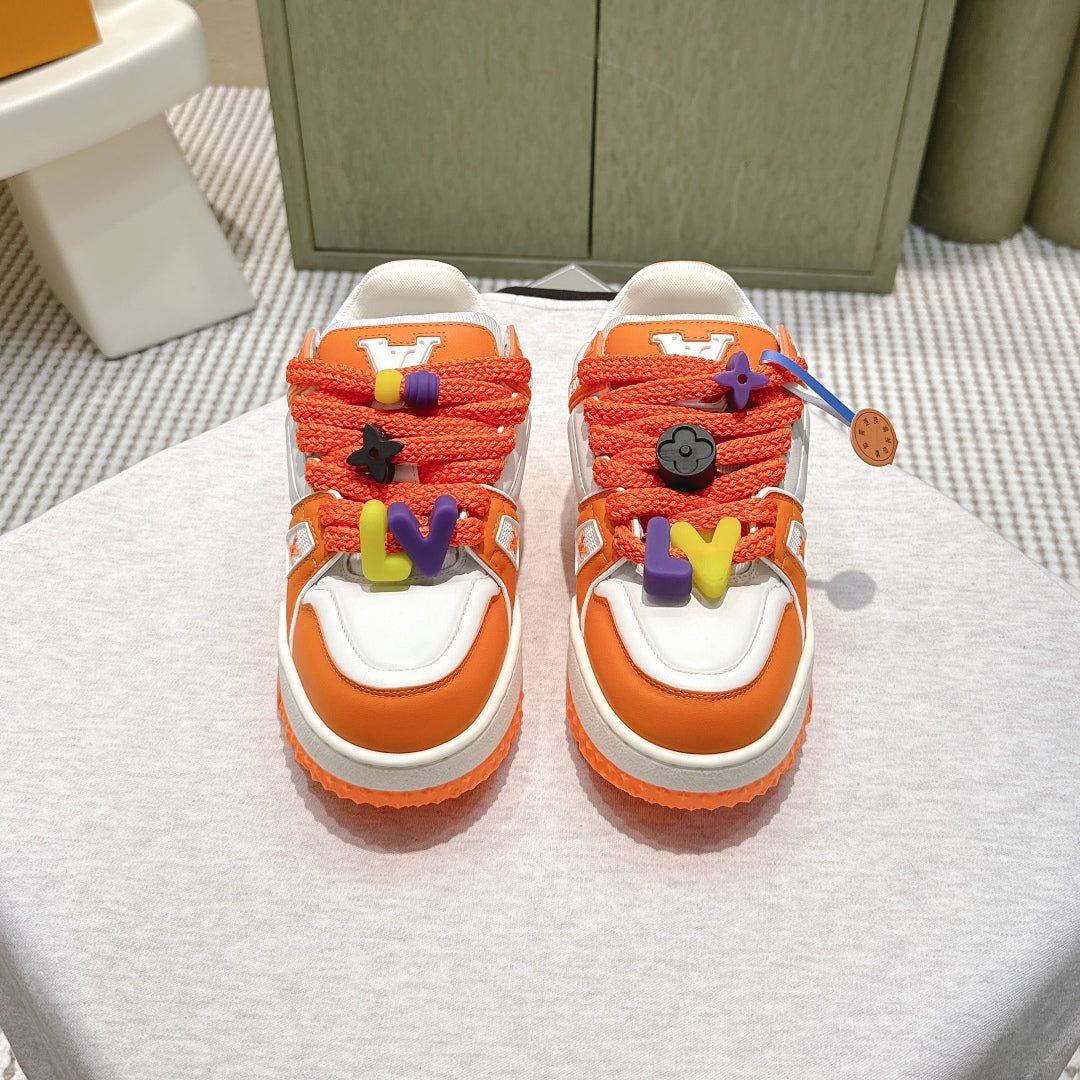 LV Trainer Maxi Sneakers White and Orange Calfskin Mesh 515201