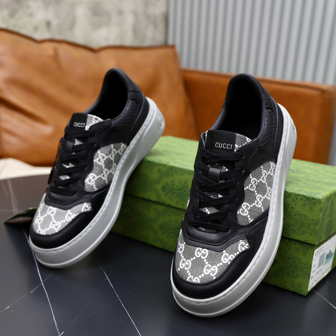 GG Men's Sneaker Black White Cowhide 522970