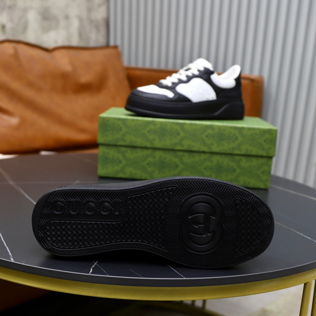 GG Men's Sneaker Black White Cowhide Embossed 523164