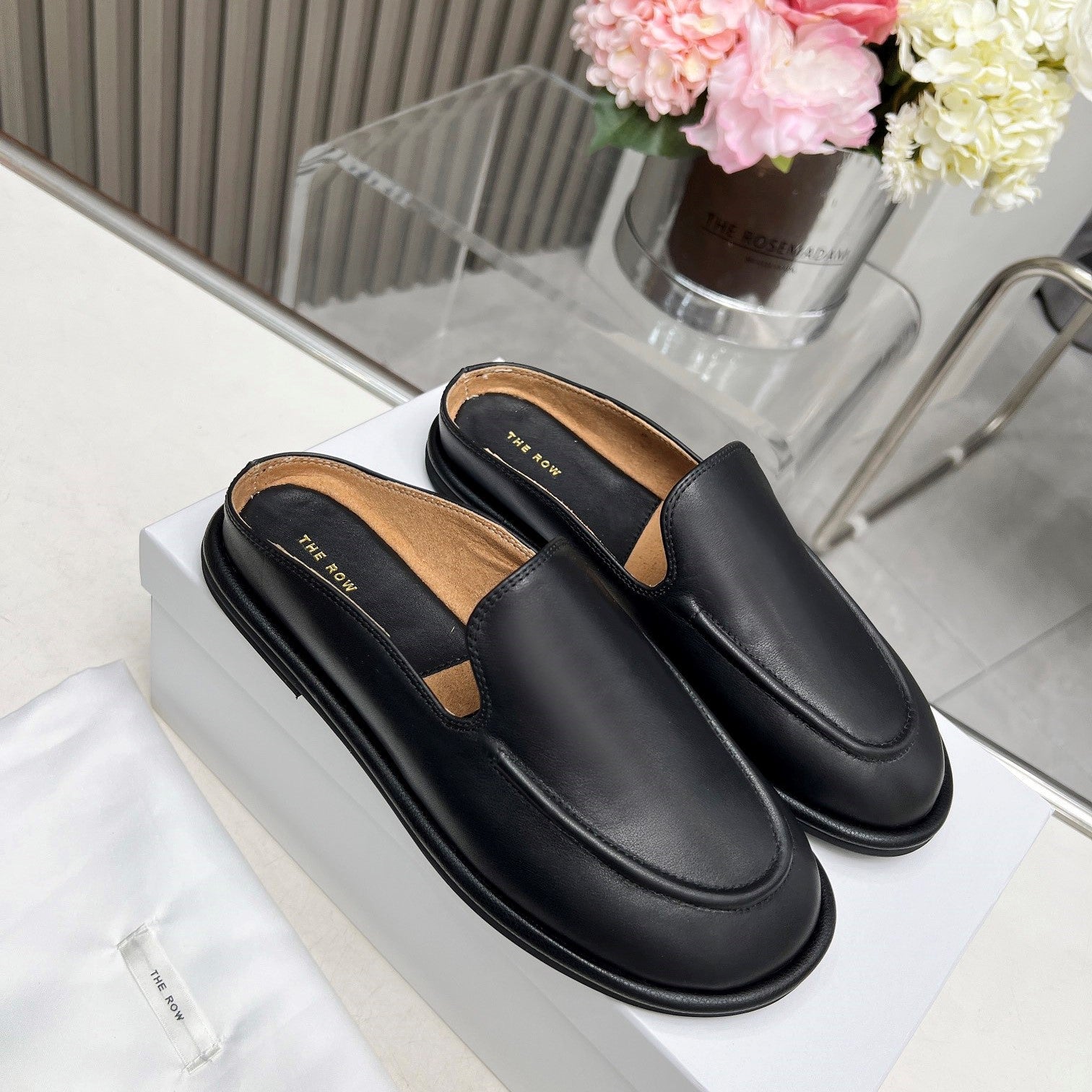 The Row Hugh Slides Black Cowhide Rubber 451281