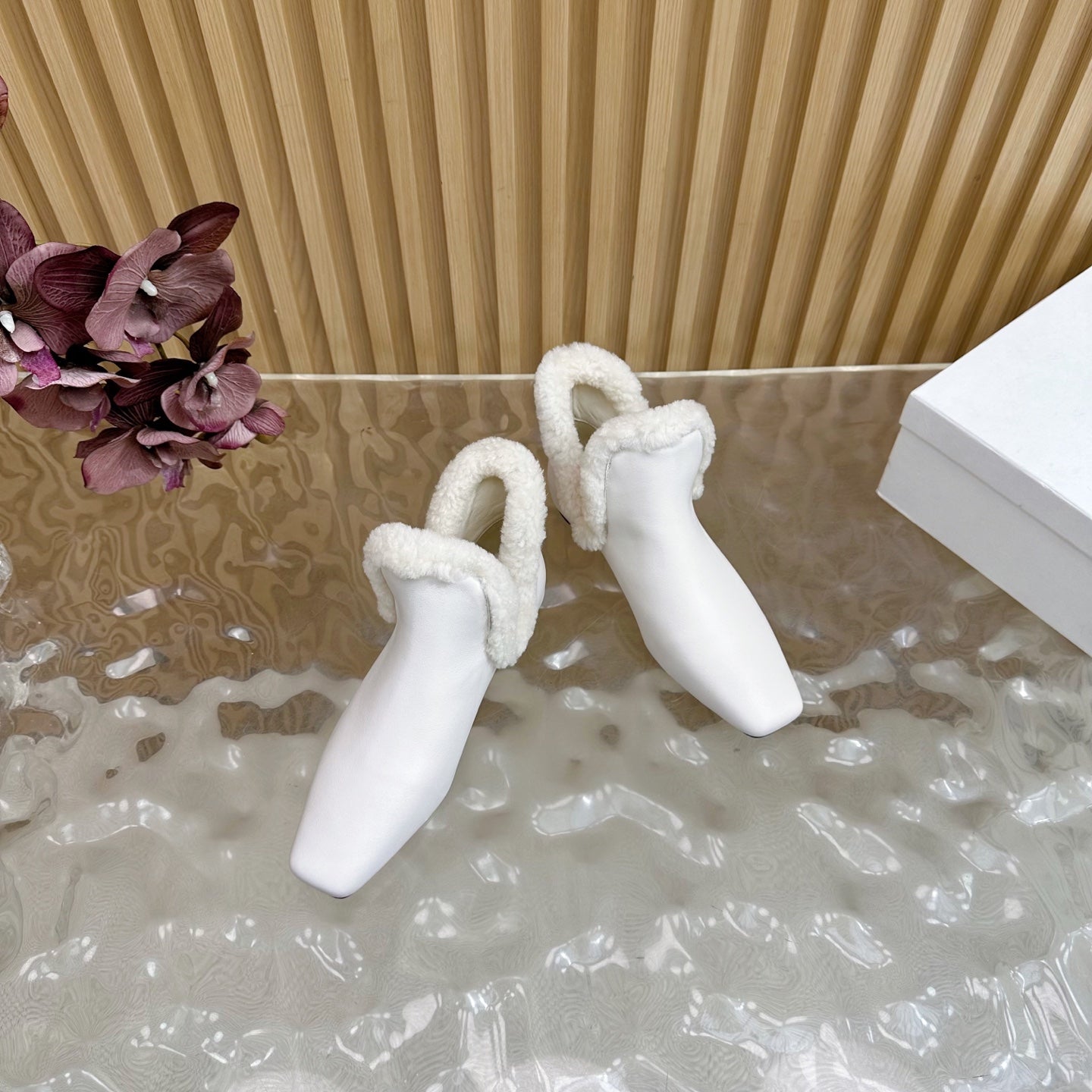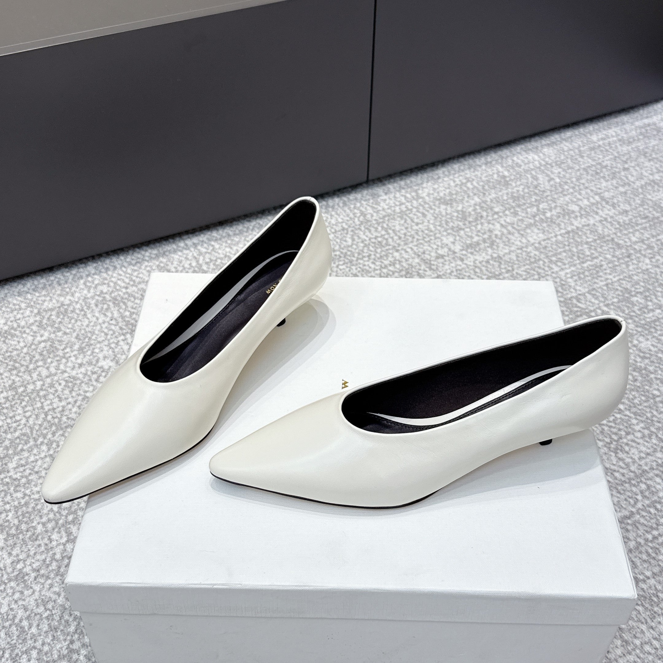 The Row 25ss TR Kitten heel Pointed Toe Shoes 35mm White Sheepskin451303