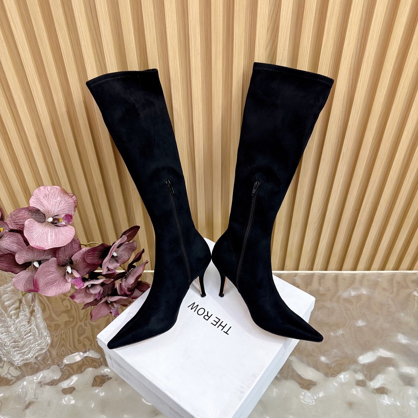 The Row Pointed-toe Knee-high Boots 35mm Black Suede 436639