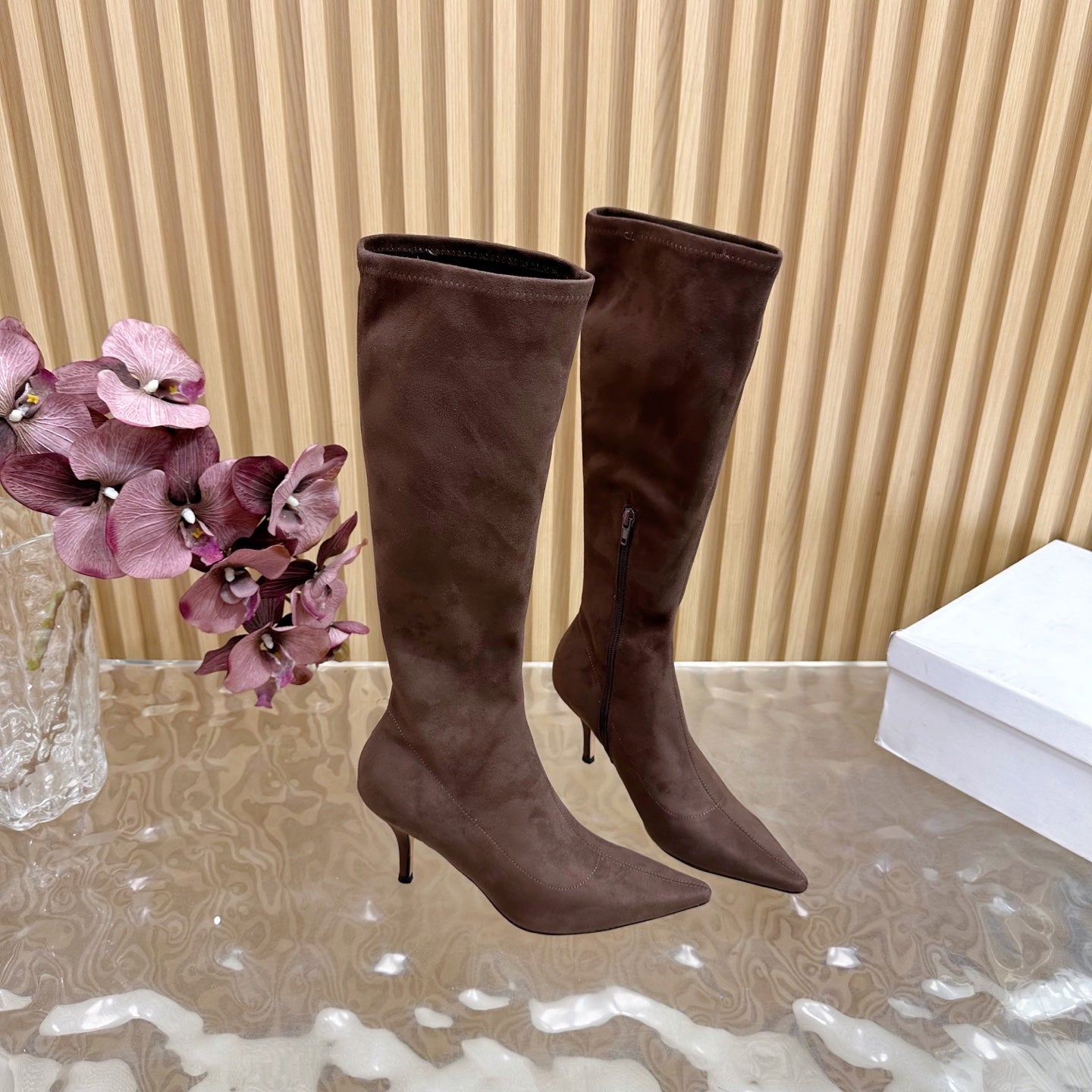 The Row Pointed-toe Knee-high Boots 35mm Dark Brown Suede 436640
