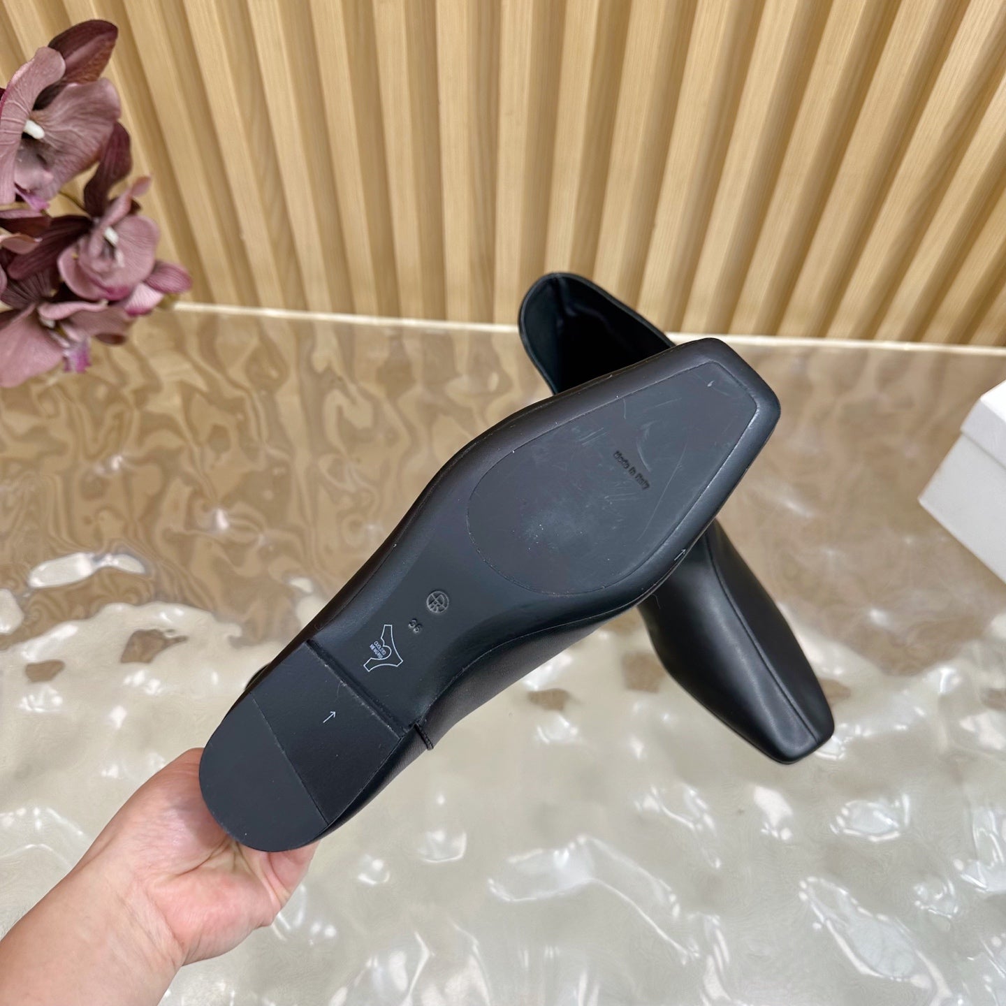 The Row 25ss TR Kitten heel Pointed Toe Shoes 35mm Black Sheepskin 425560