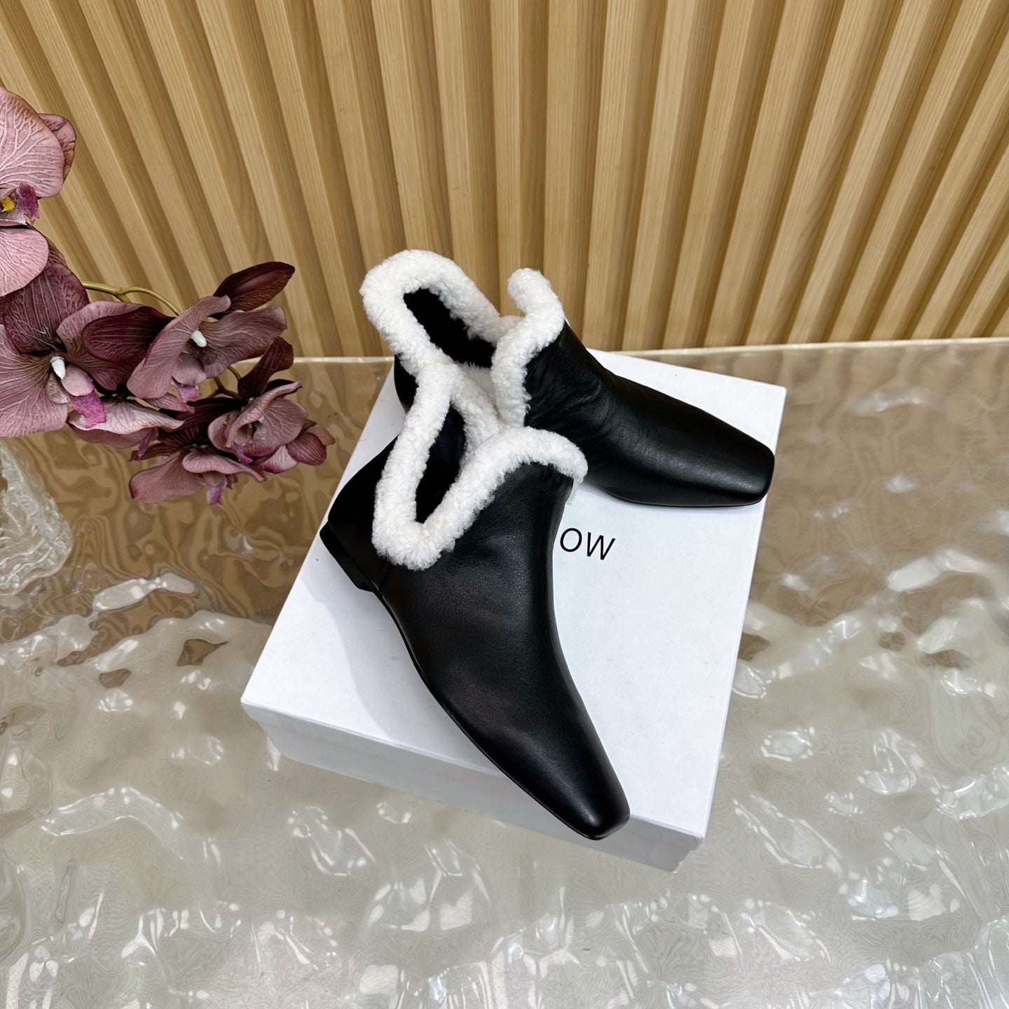 The Row Eros Ankle Boots Black Shearling-trimmed Sheepskin 436644