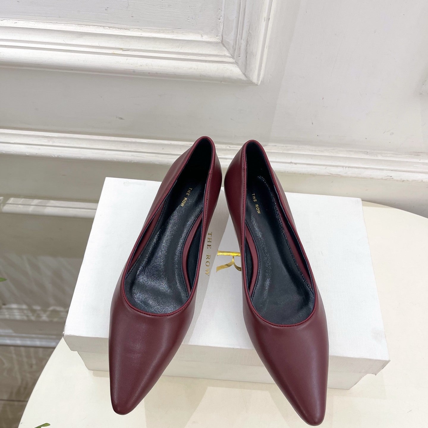 The Row 25ss TR Kitten heel Pointed Toe Shoes 35mm Burgundy Sheepskin 425559