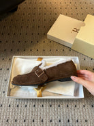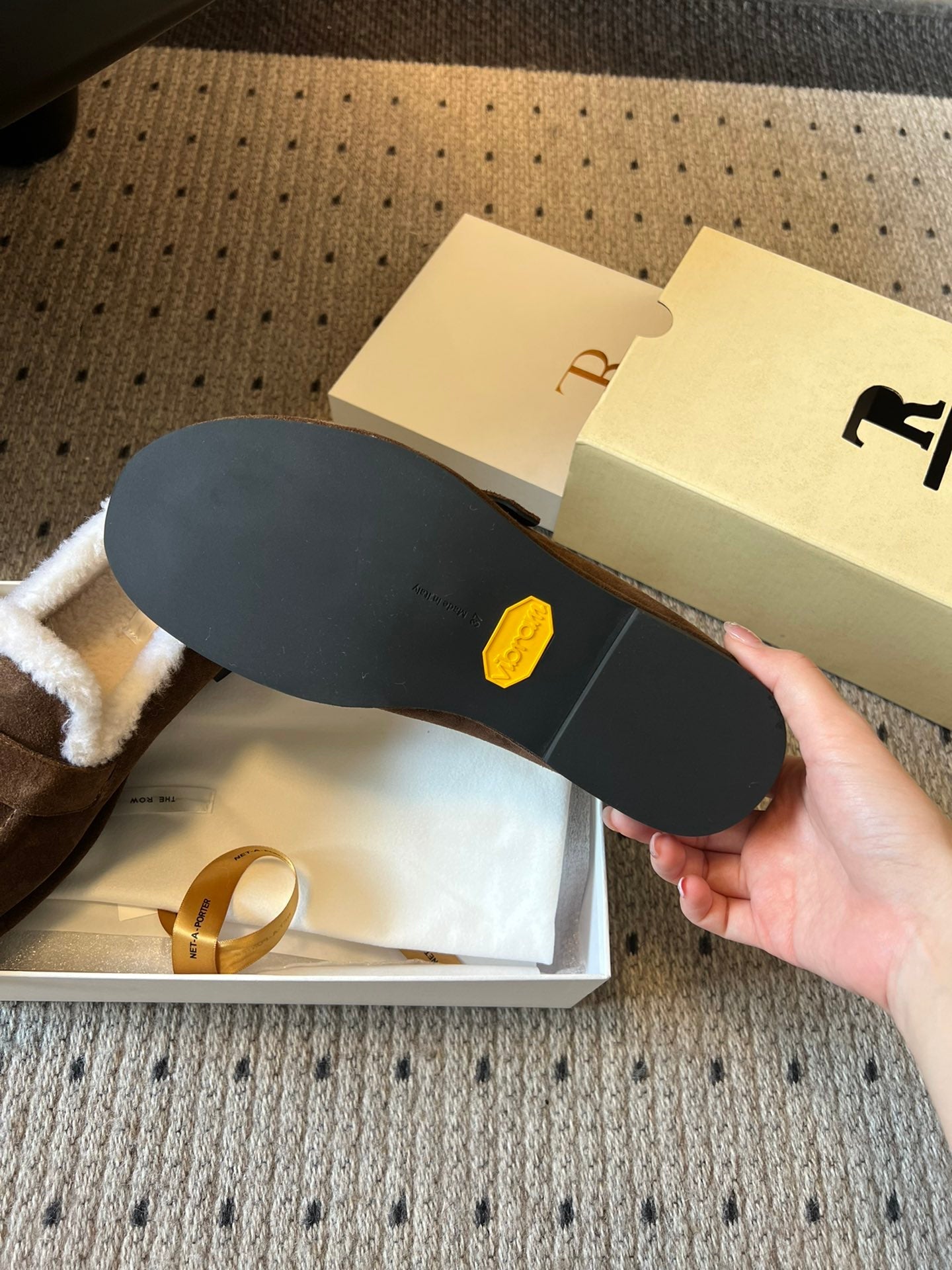 The Row 2025 Shearling Loafer Brown White Suede Wool 561602