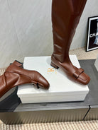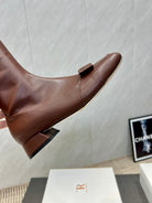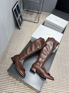 The Row 2025 Square Toe And Bow Accent Long Boot Brown Sheepskin 540514