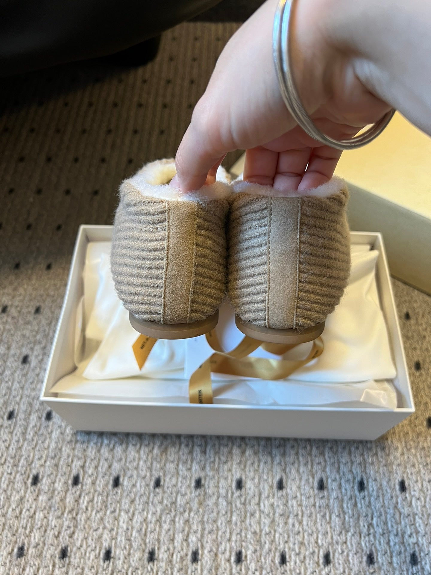 The Row 2025 Striped Furry Slipper Beige White Wool 561638