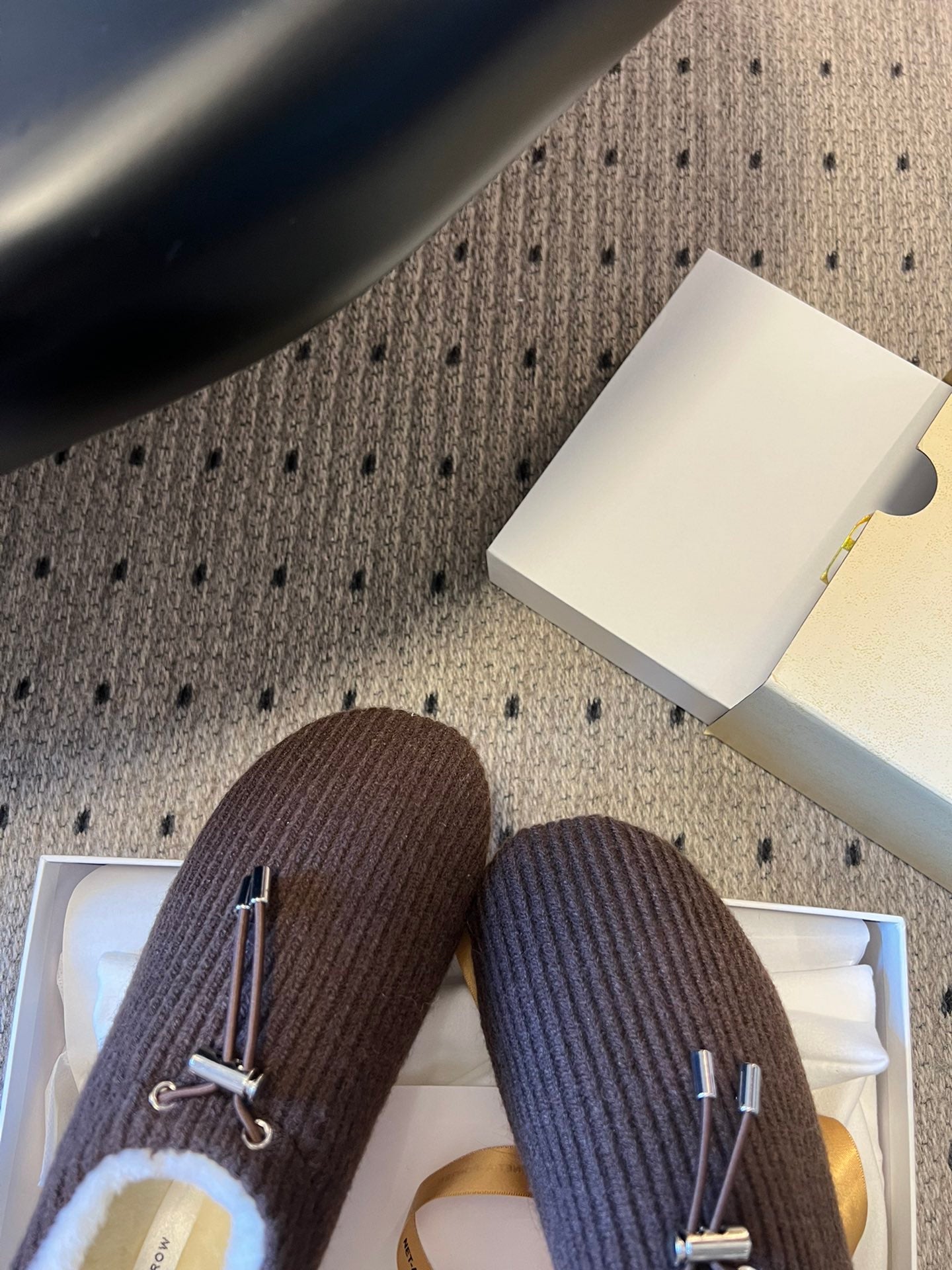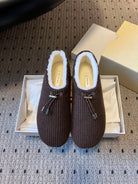 The Row 2025 Striped Furry Slipper Brown White Wool 561637