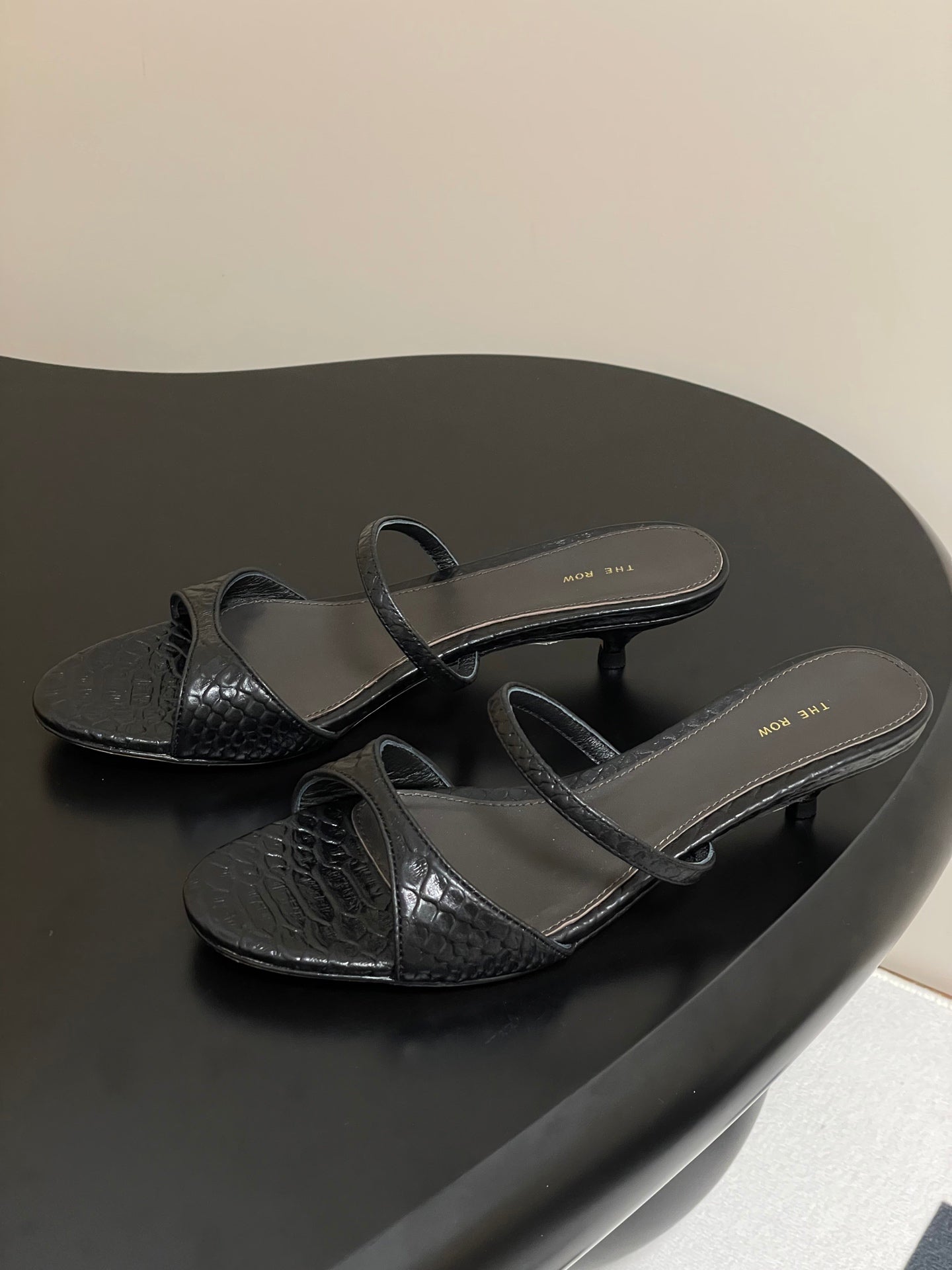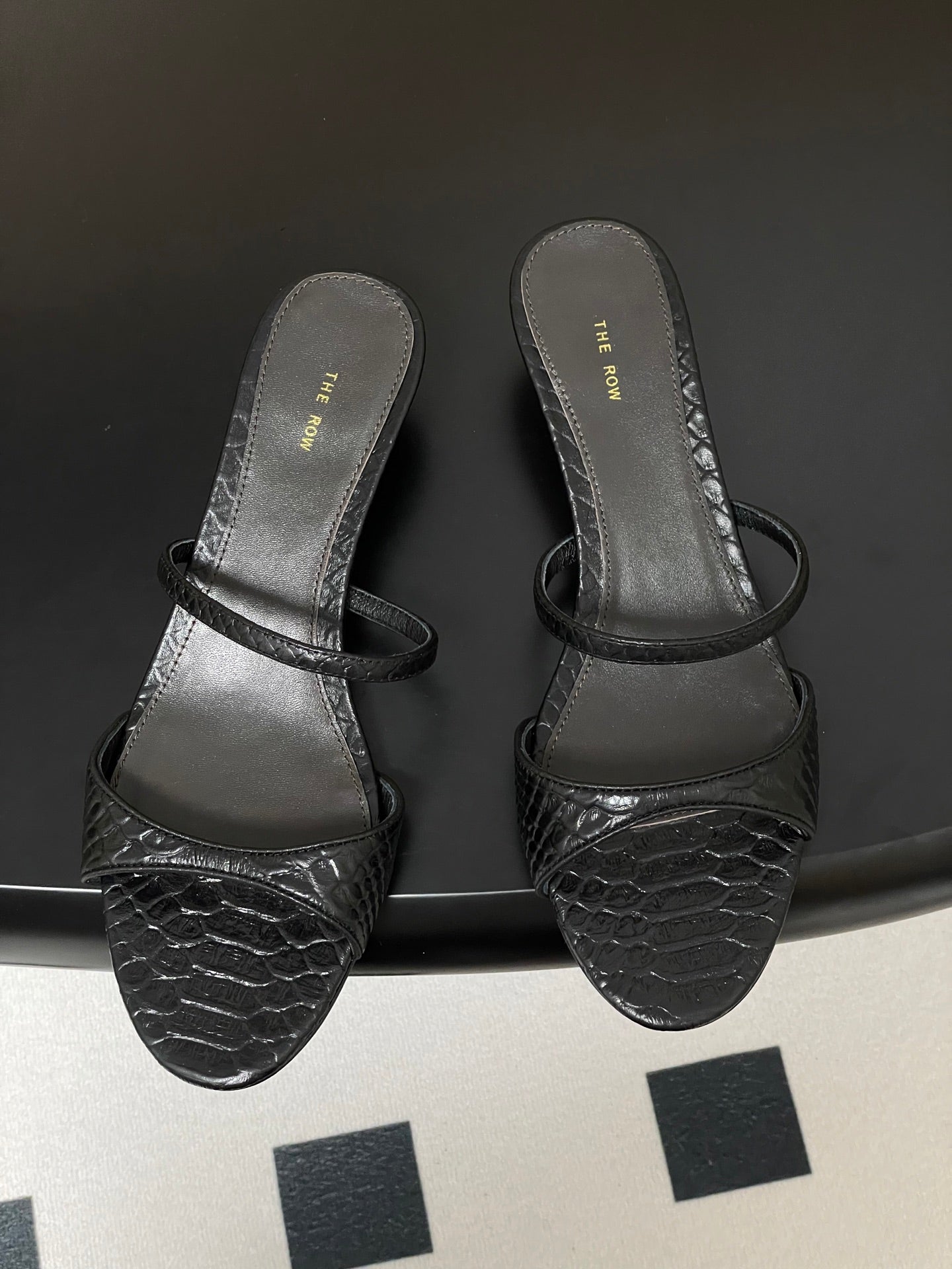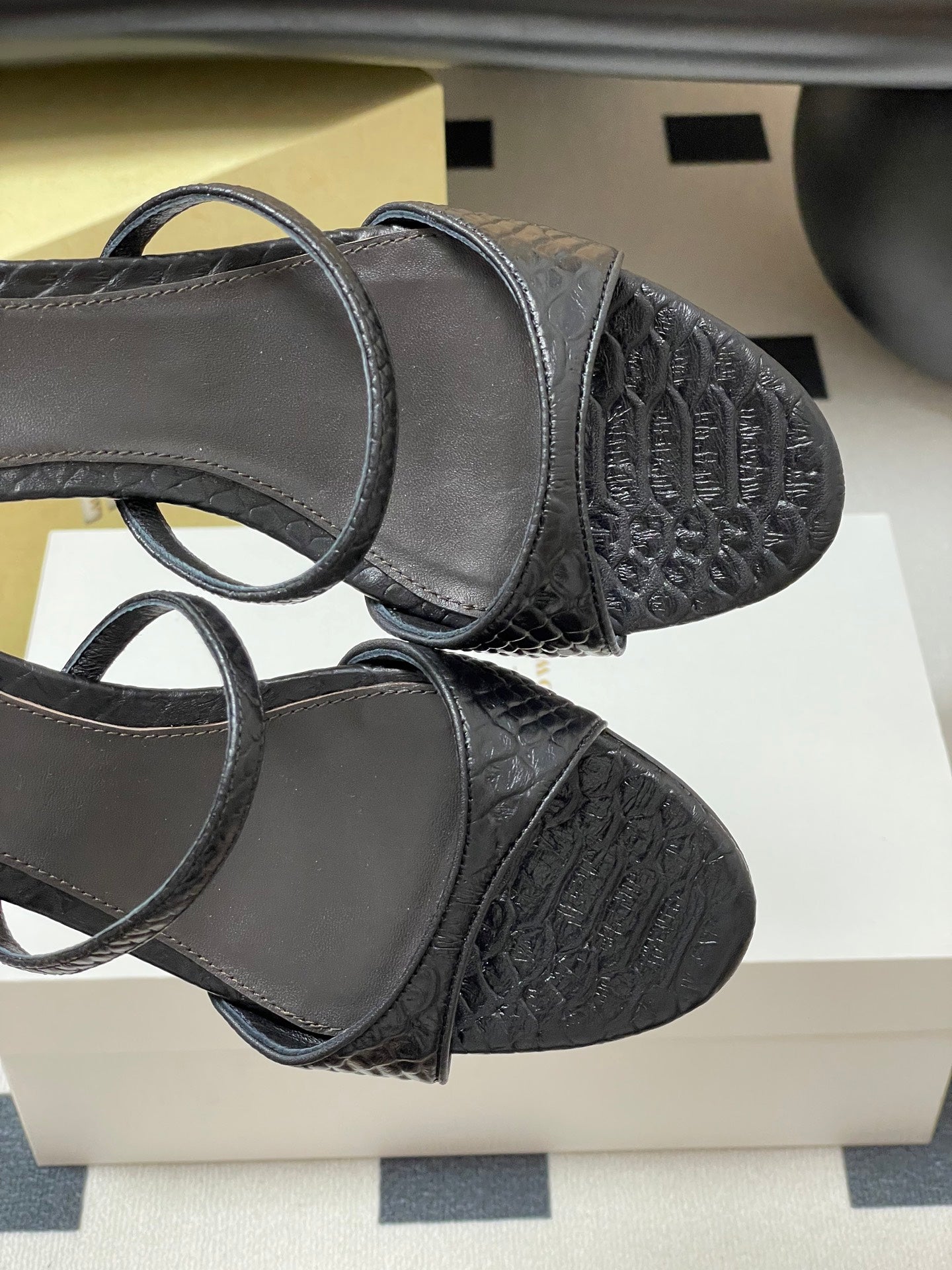 The Row 25S Strap High Heel Mule Sandals 35mm Black Snake Pattern Cowhide 286213
