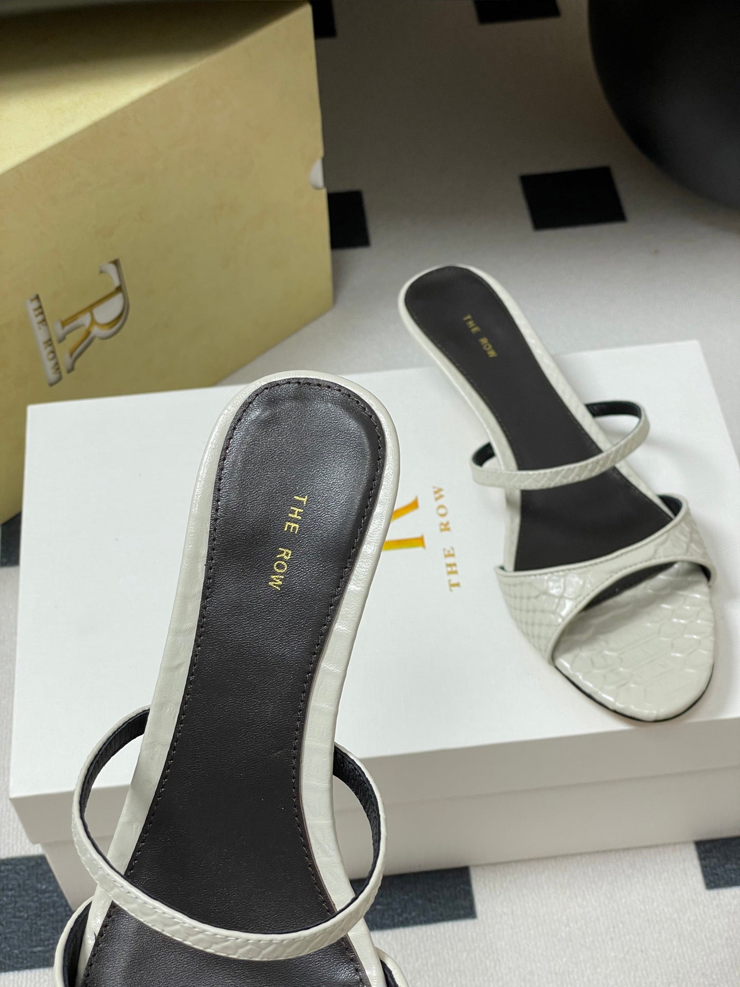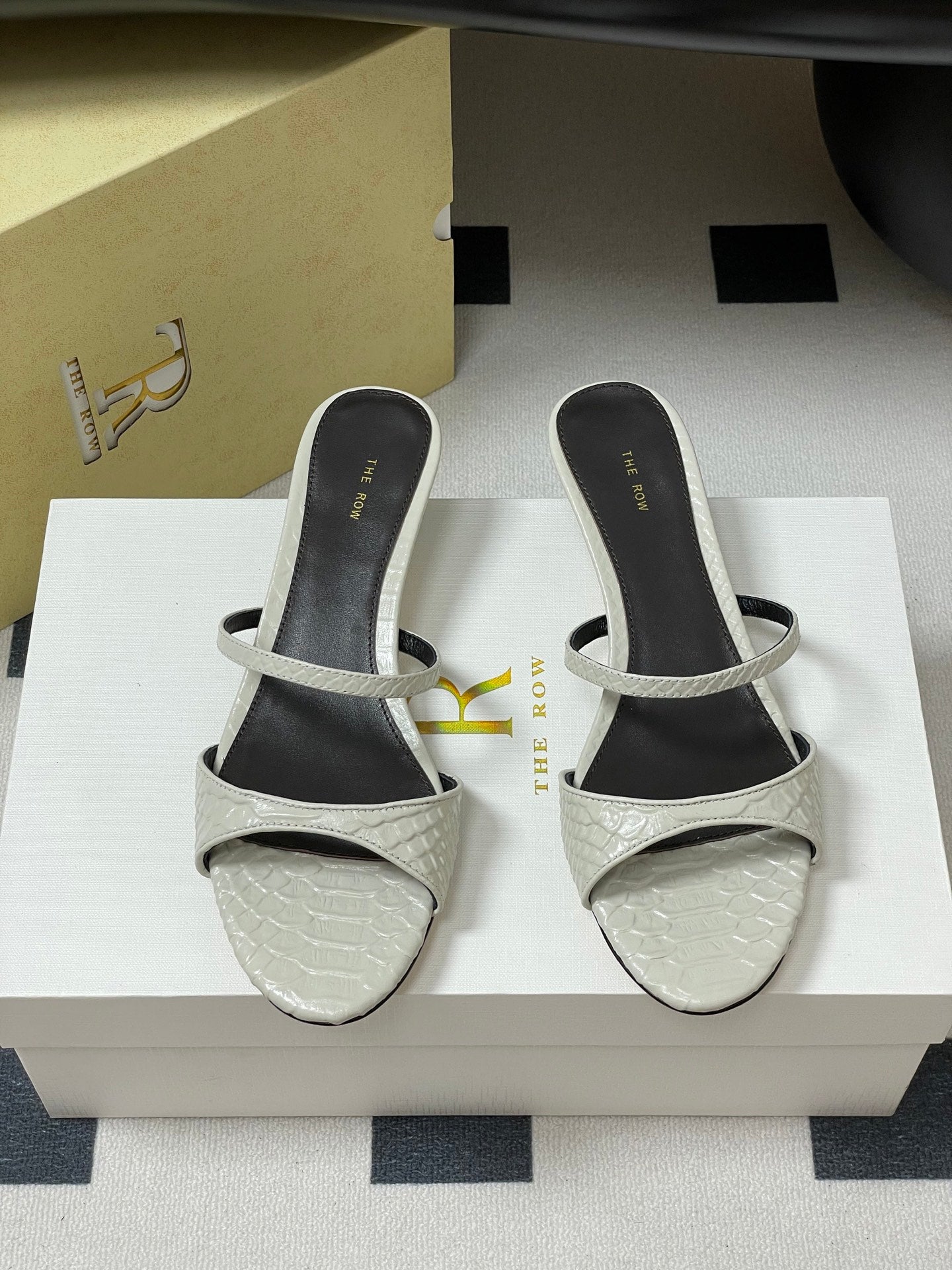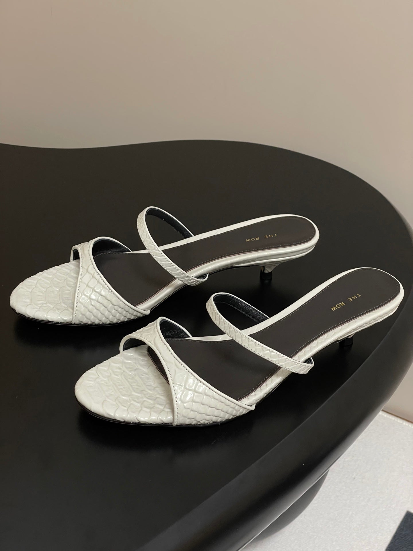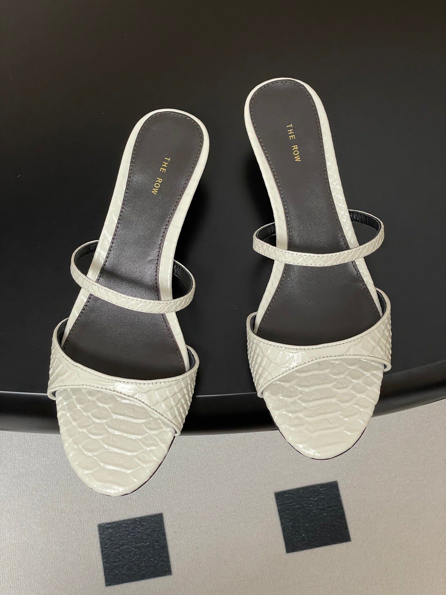 The Row 25S Strap High Heel Mule Sandals 35mm White Snake Pattern Cowhide 286212