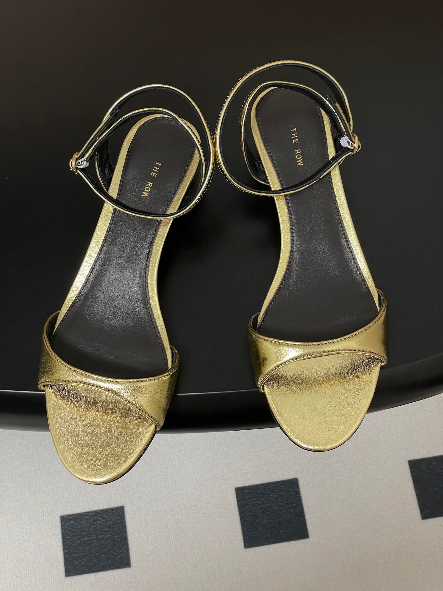 The Row 25S Strap High Heel Sandals 35mm Black Mix Gold Metallic Cowhide 286202