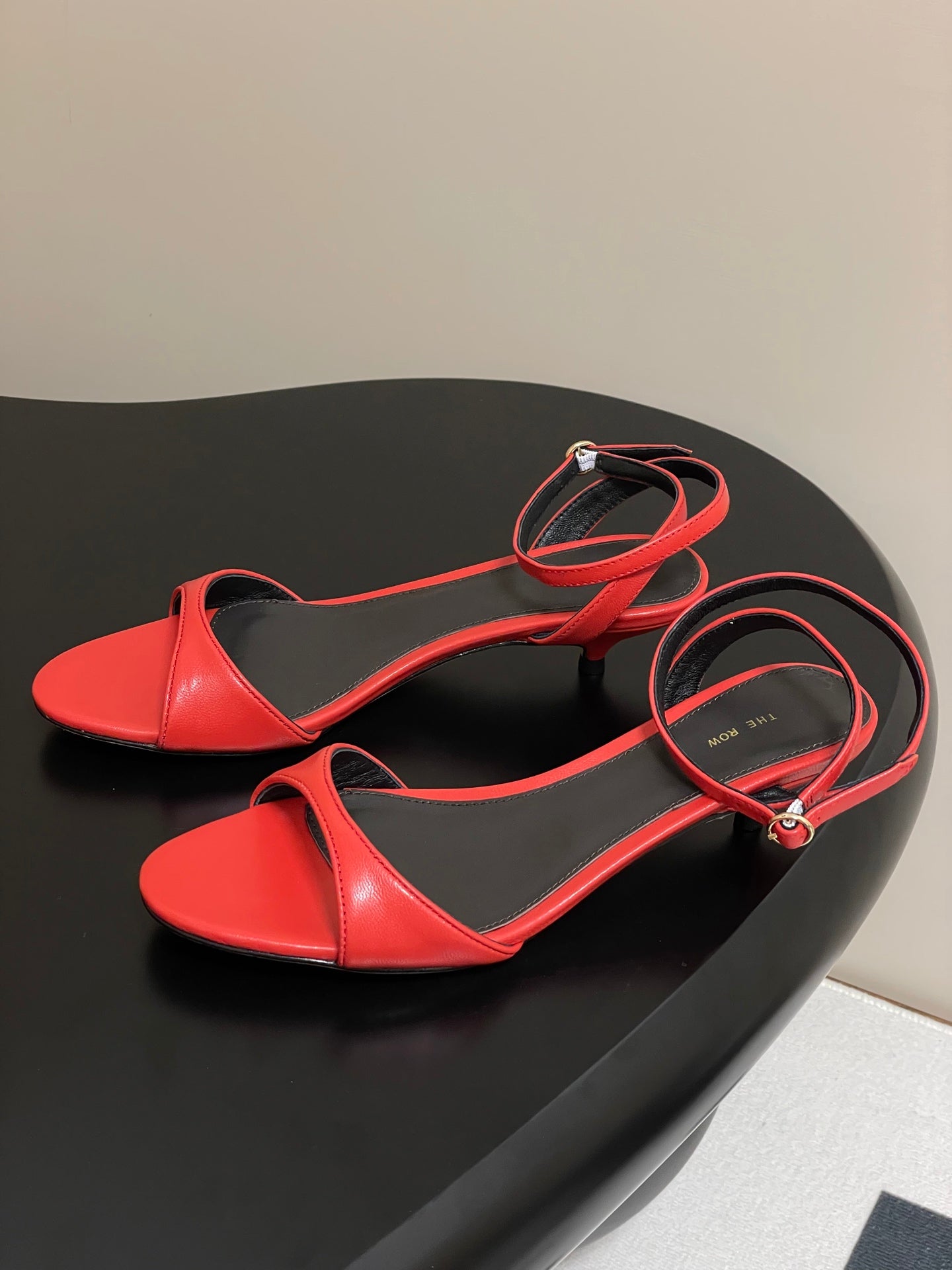 The Row 25S Strap High Heel Sandals 35mm Red Sheepskin 286198