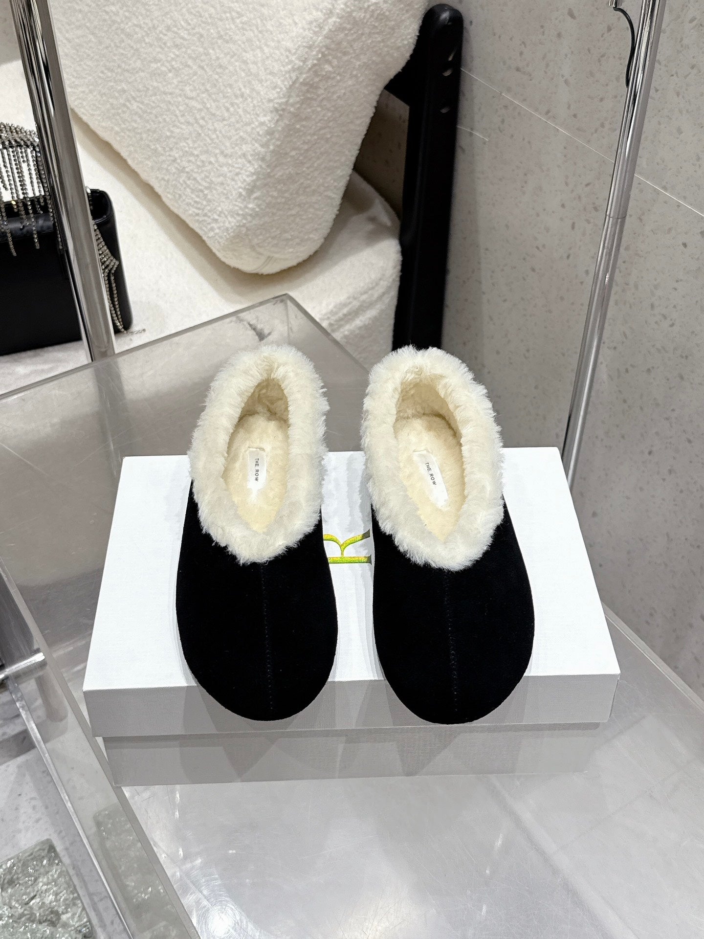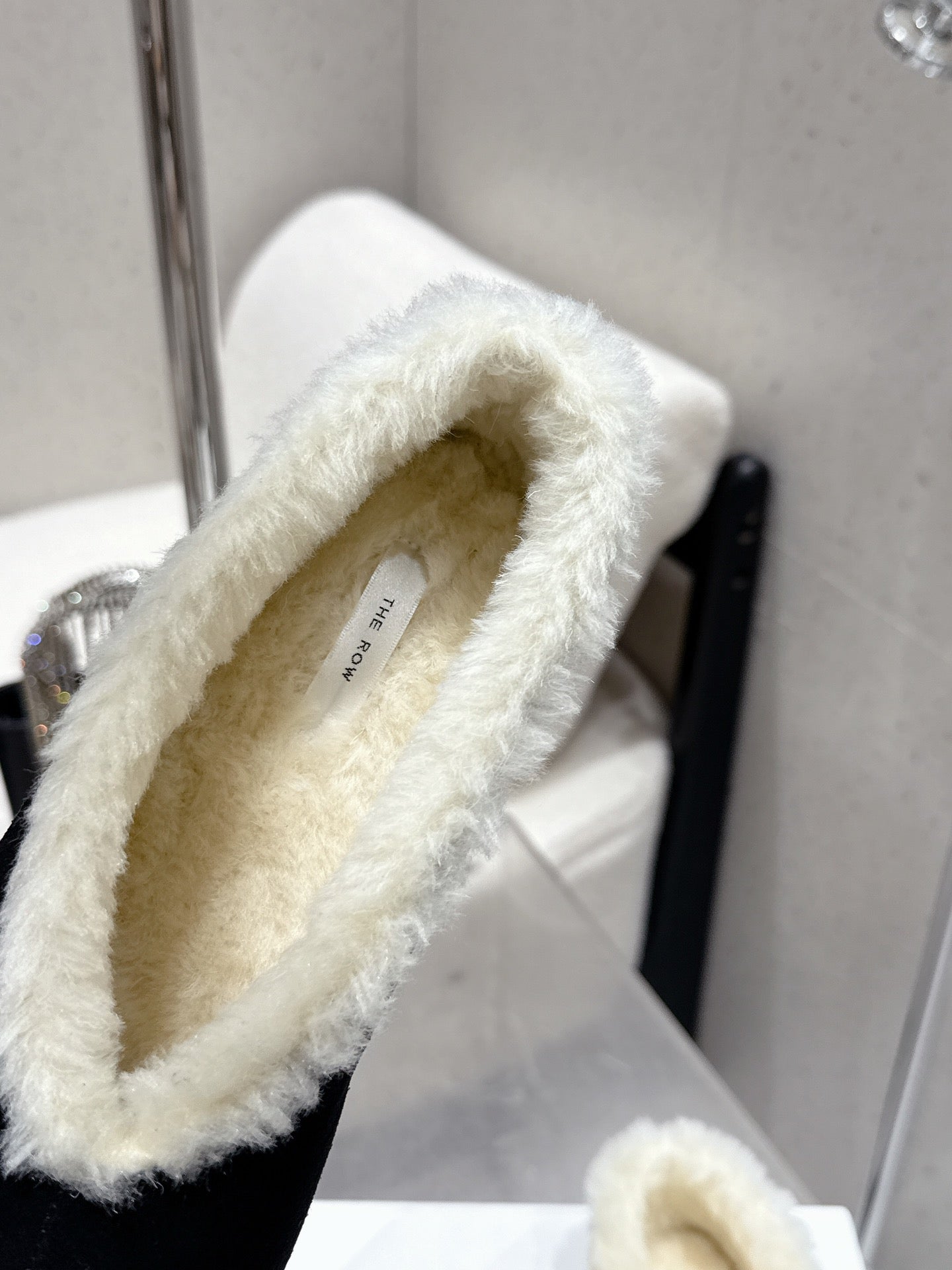 The Row 25ss Ballet Flat Black Nubuck Leather Fur 554385