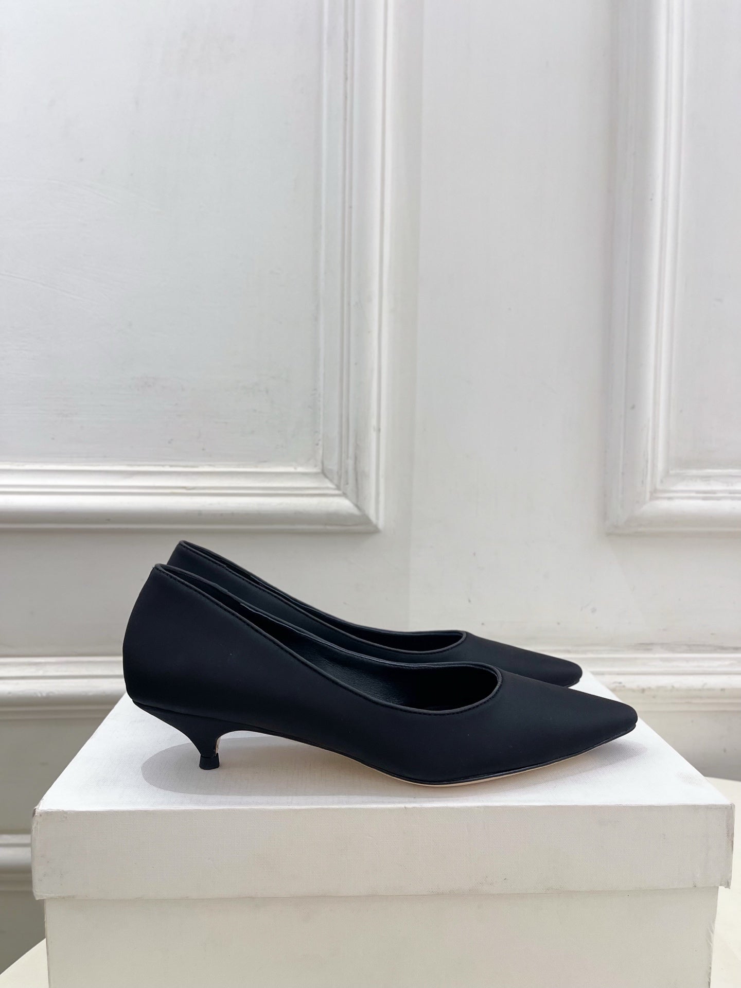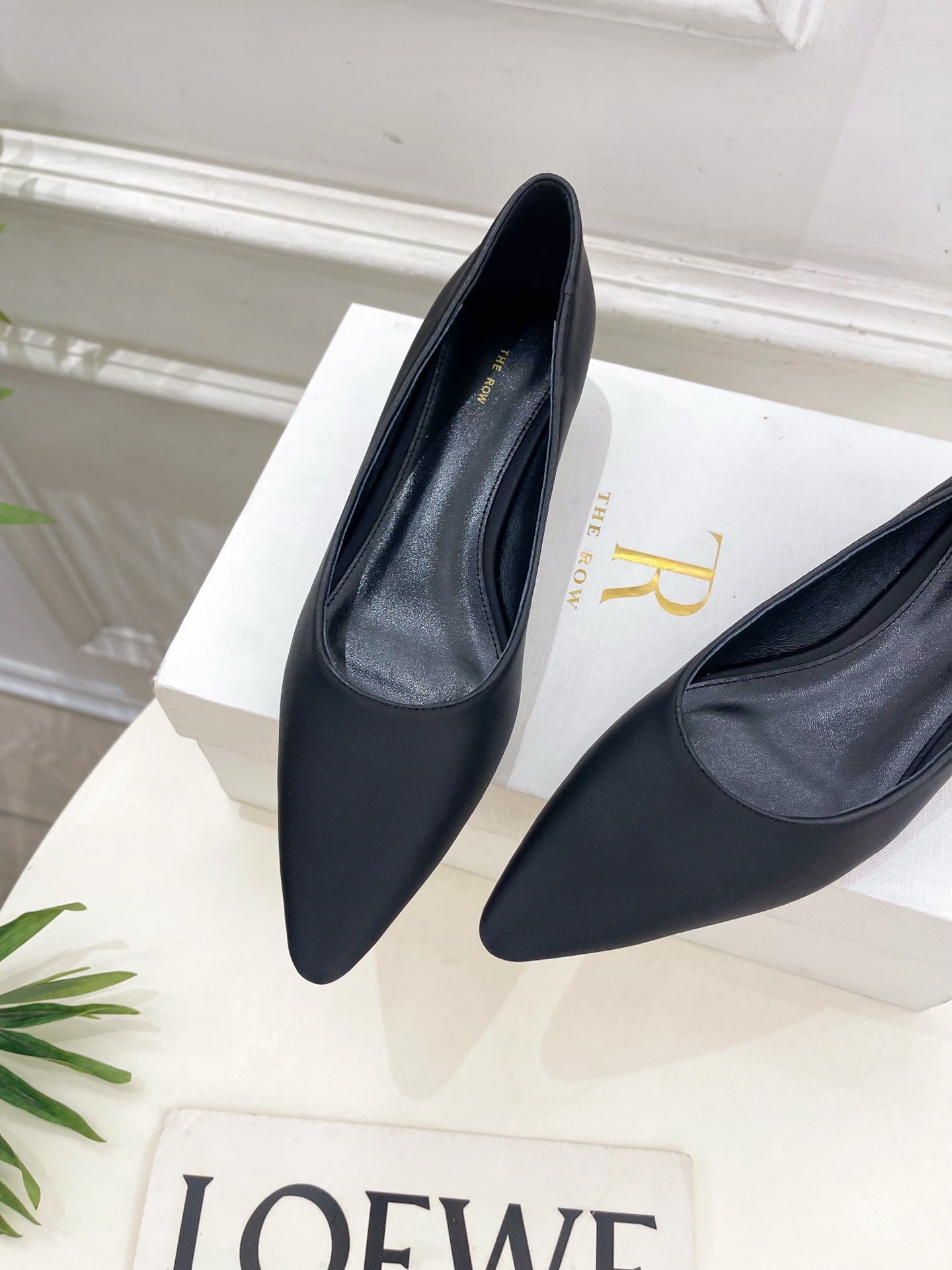 The Row 25ss TR Kitten heel Pointed Toe Shoes 35mm Black Frabic Sheepskin 425556