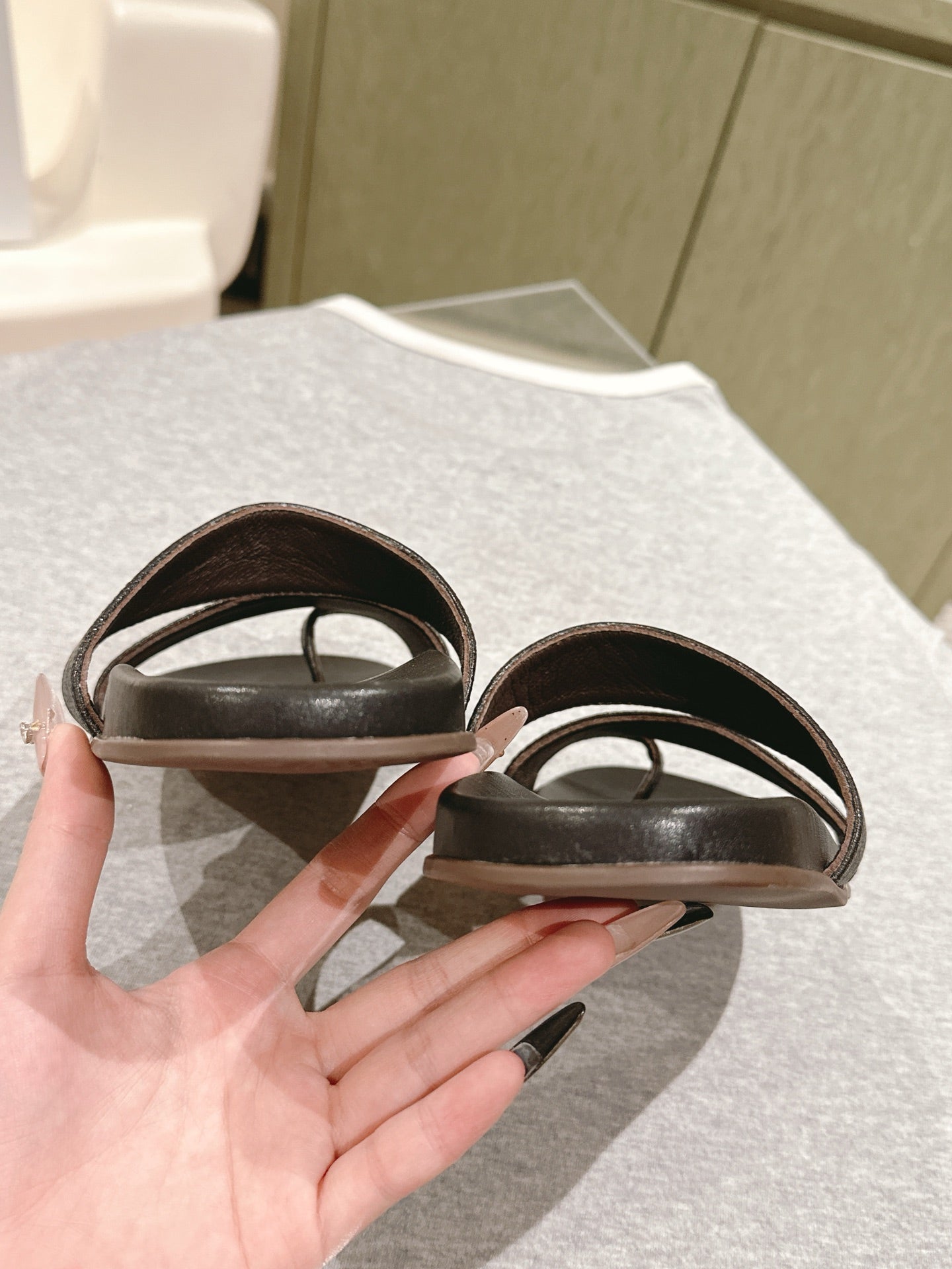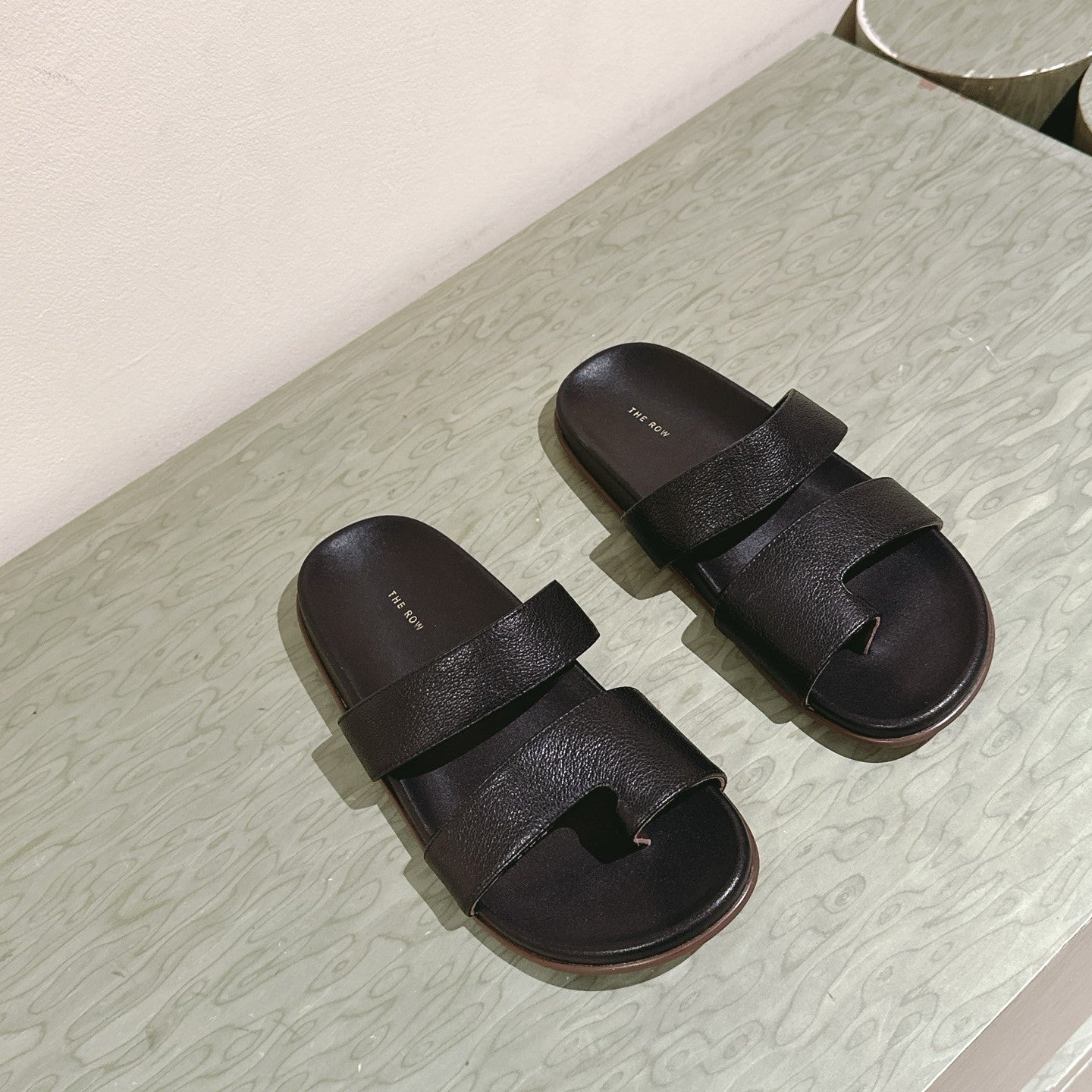 The Row Hugh Slides Black Cowhide Rubber 451281