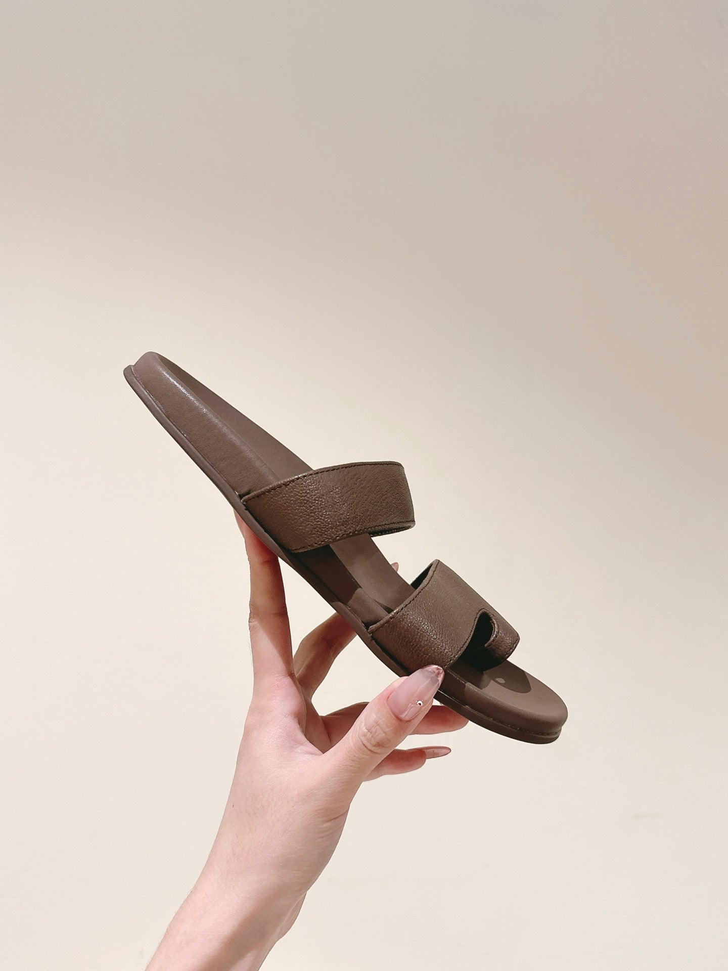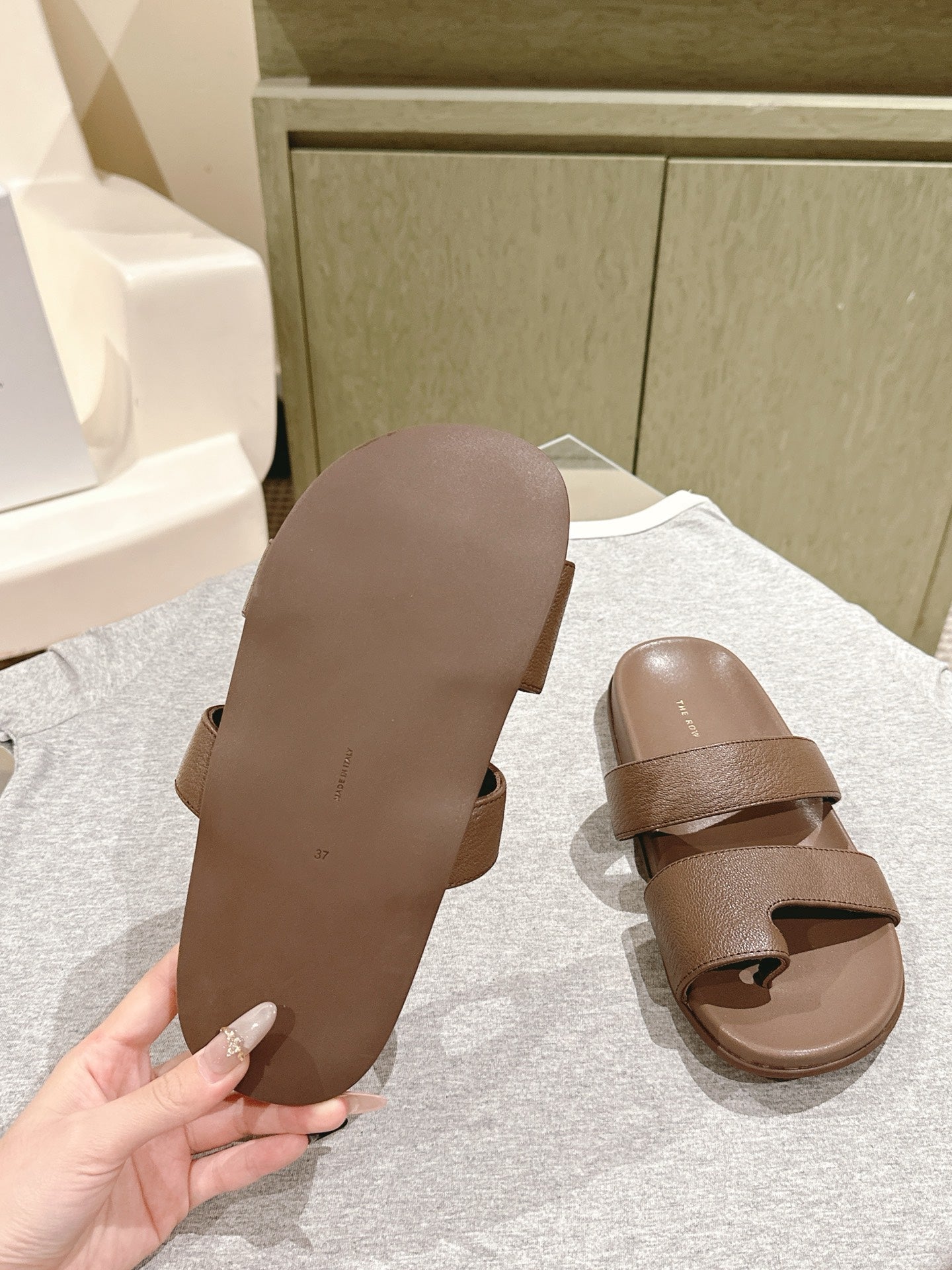 The Row Hugh Slides Brown Cowhide Rubber 451283