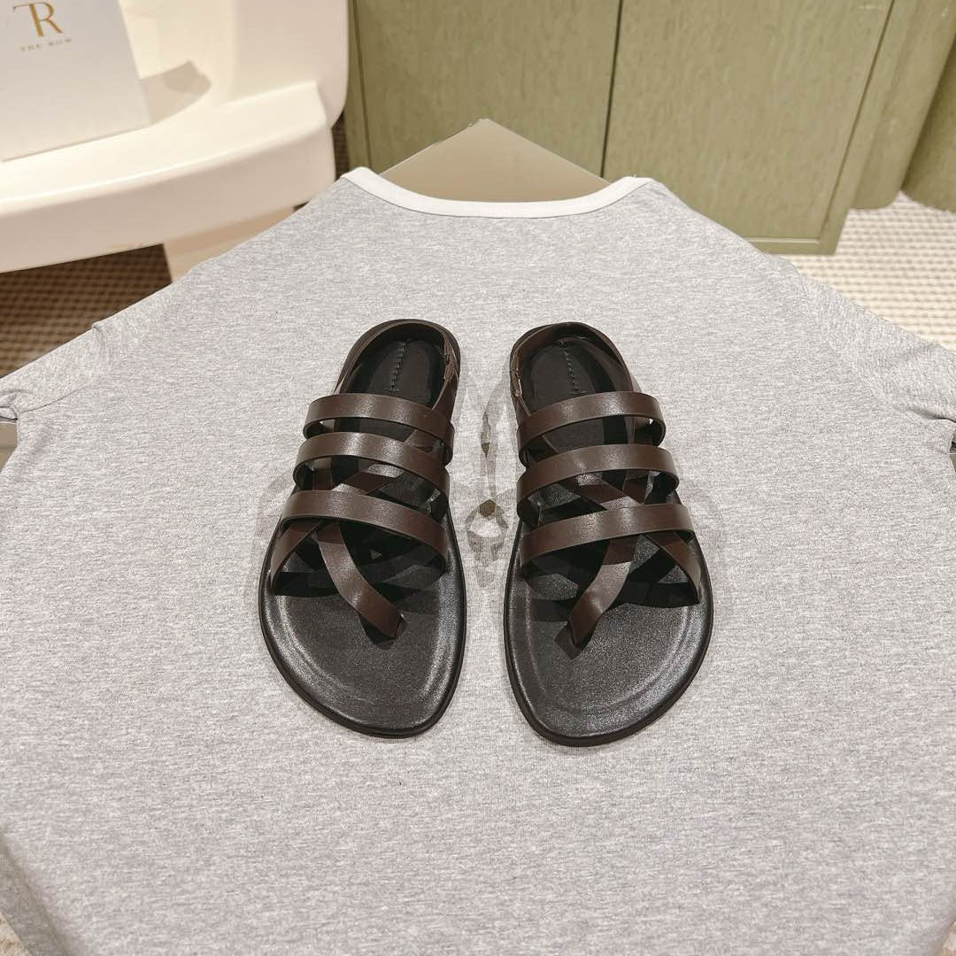 The Row Line Sandals Dark Brown Black Sheepskin 451279