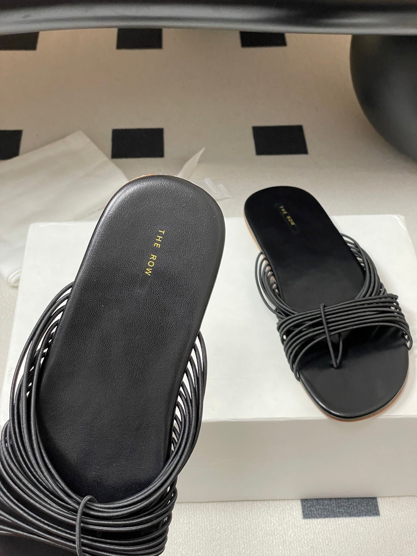 The Row Sara Slide Sandal In Black Elastic And Leather 345205