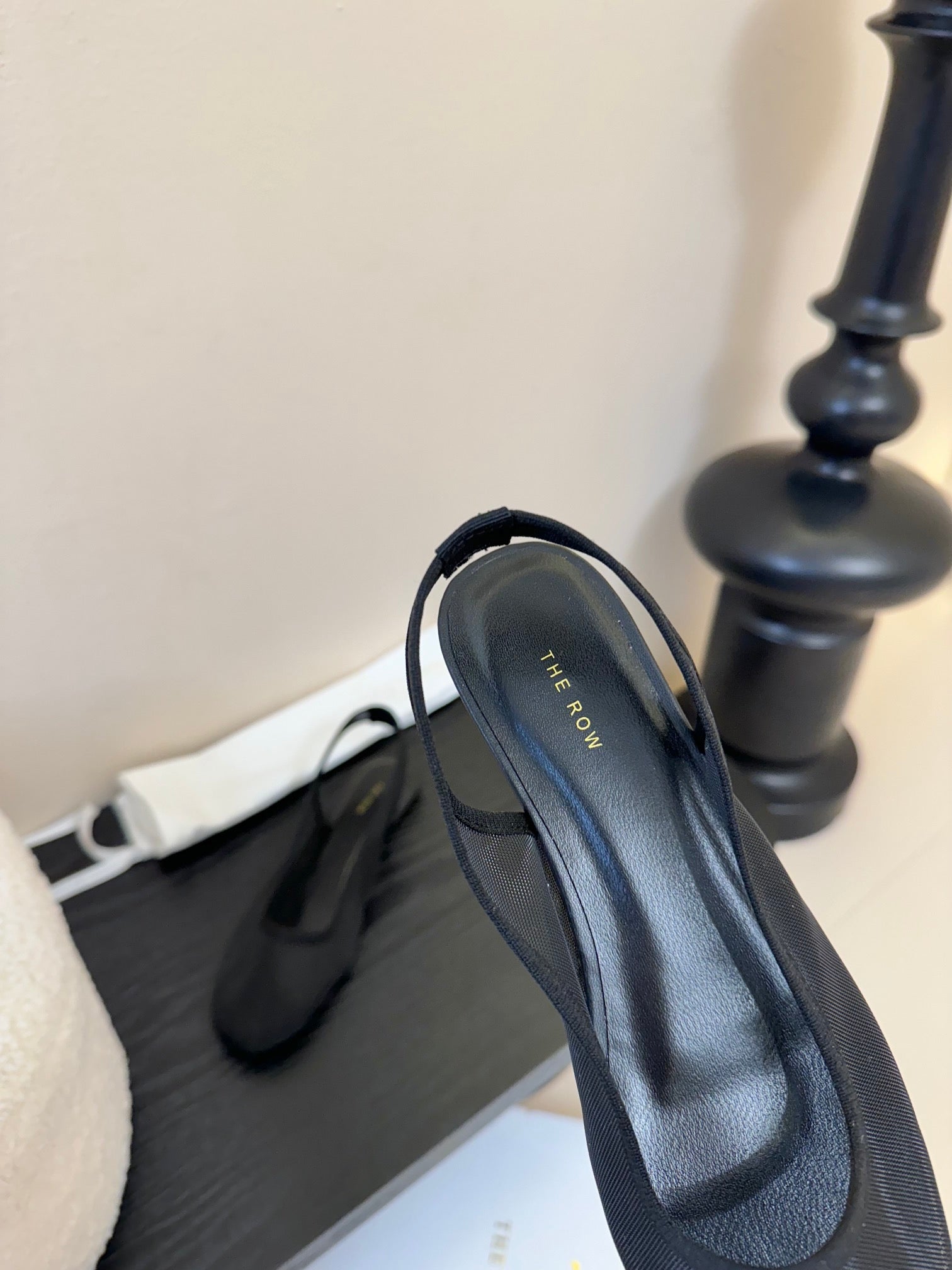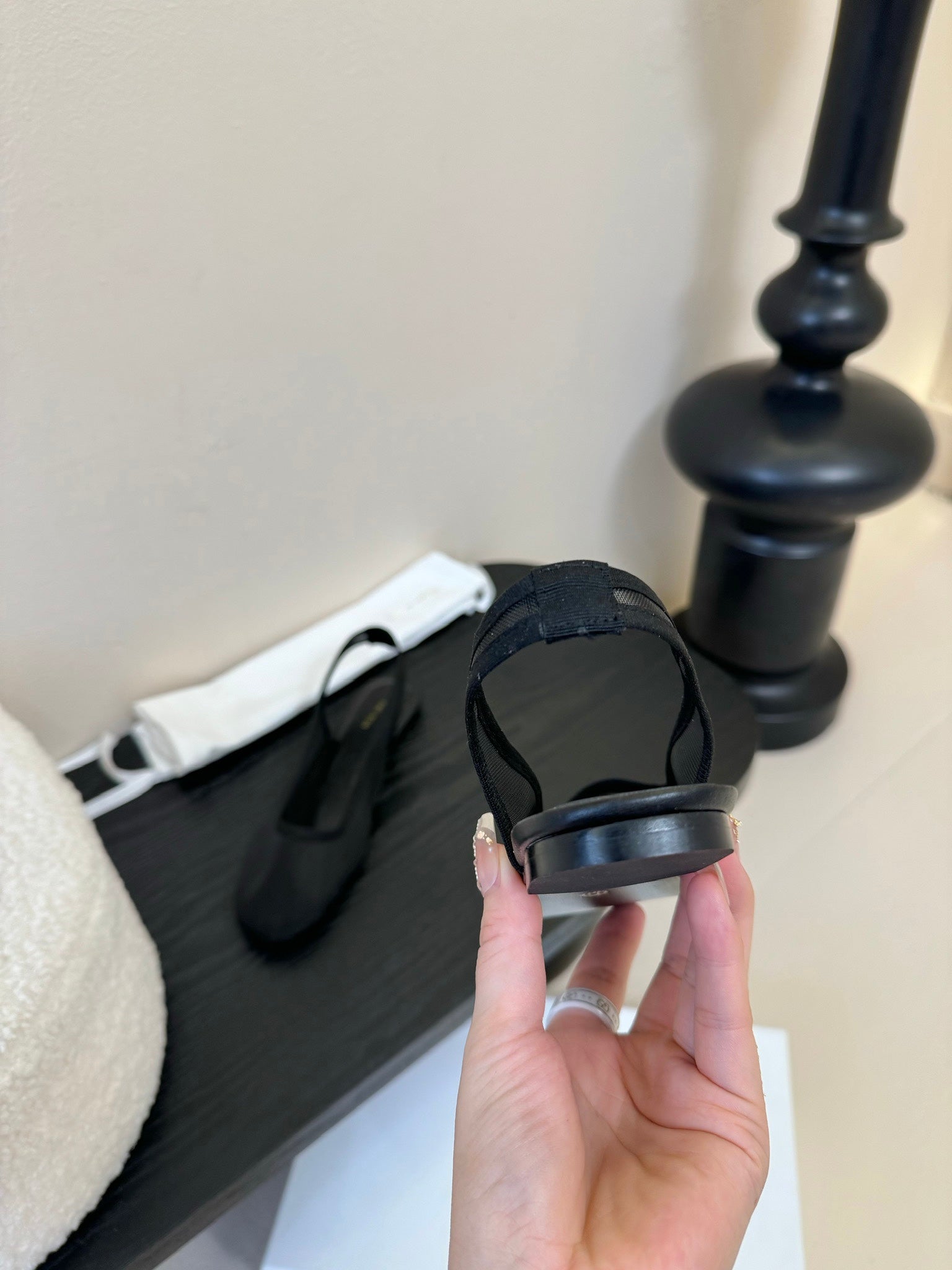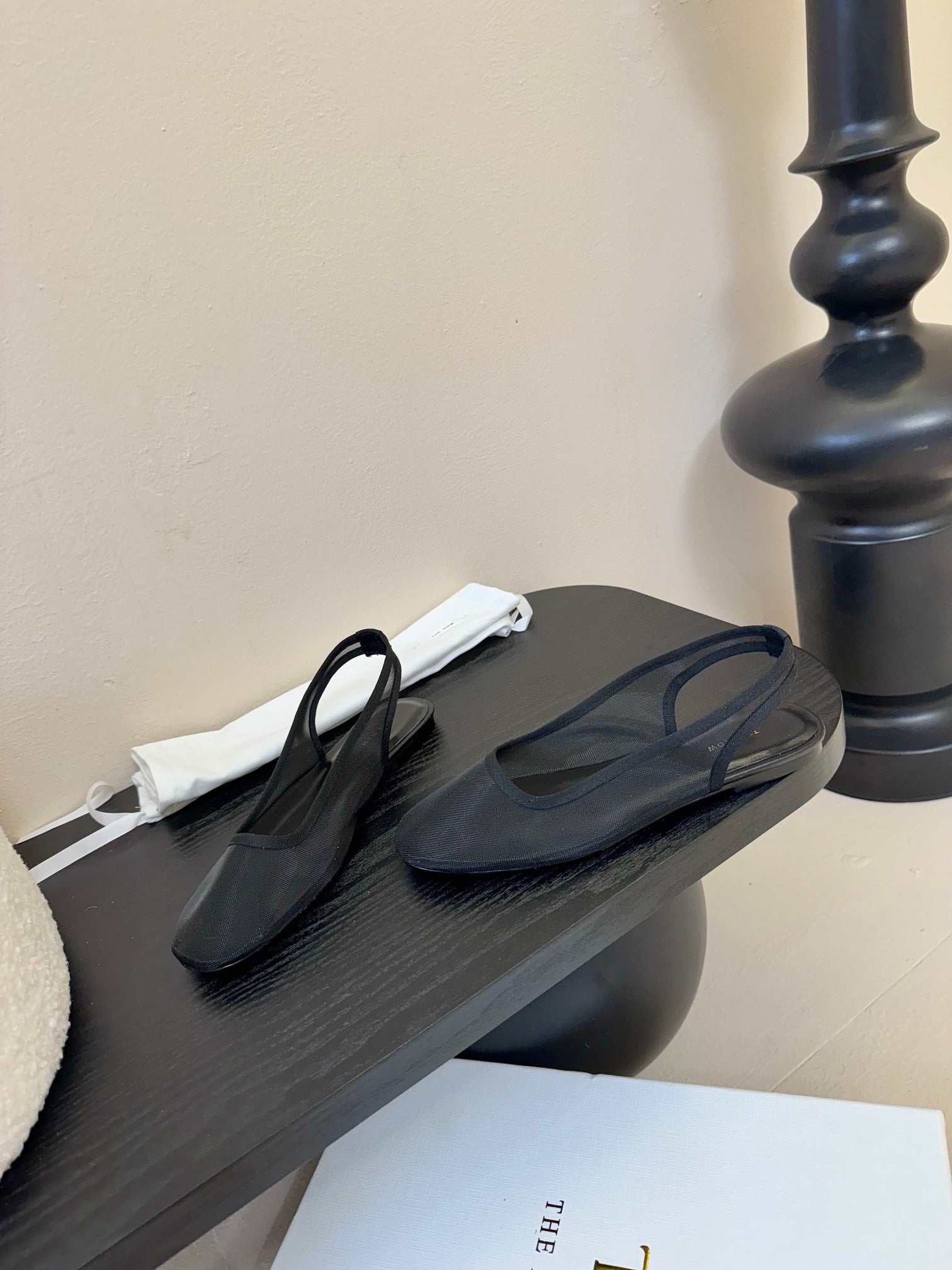 The Row Slingback Flat 10mm Black Mesh And Sheepskin 334168