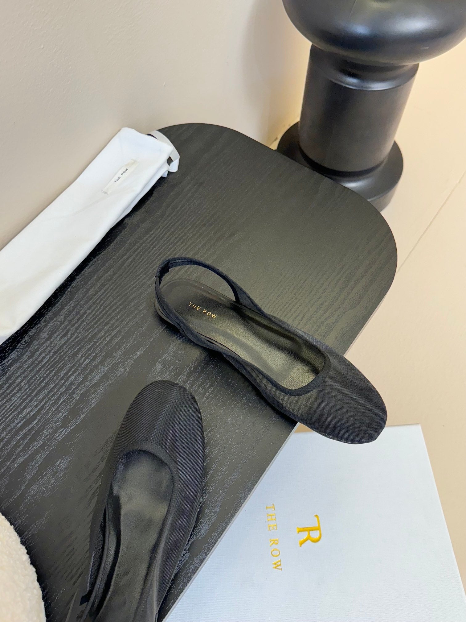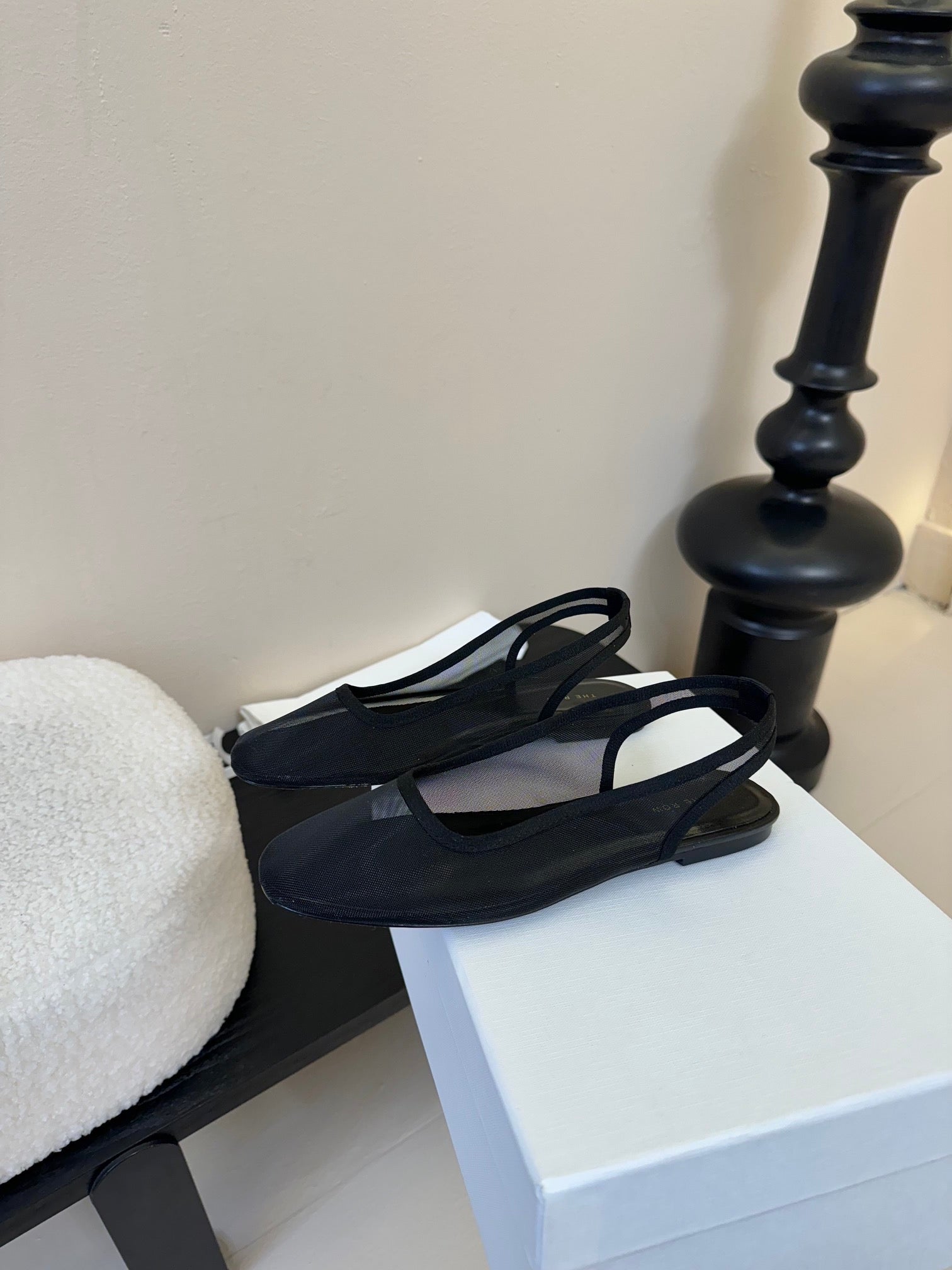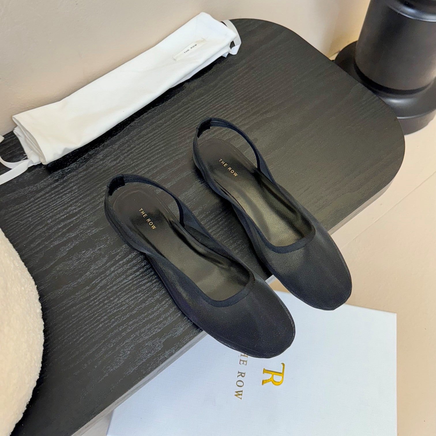 The Row Slingback Flat 10mm Black Mesh And Sheepskin 334168