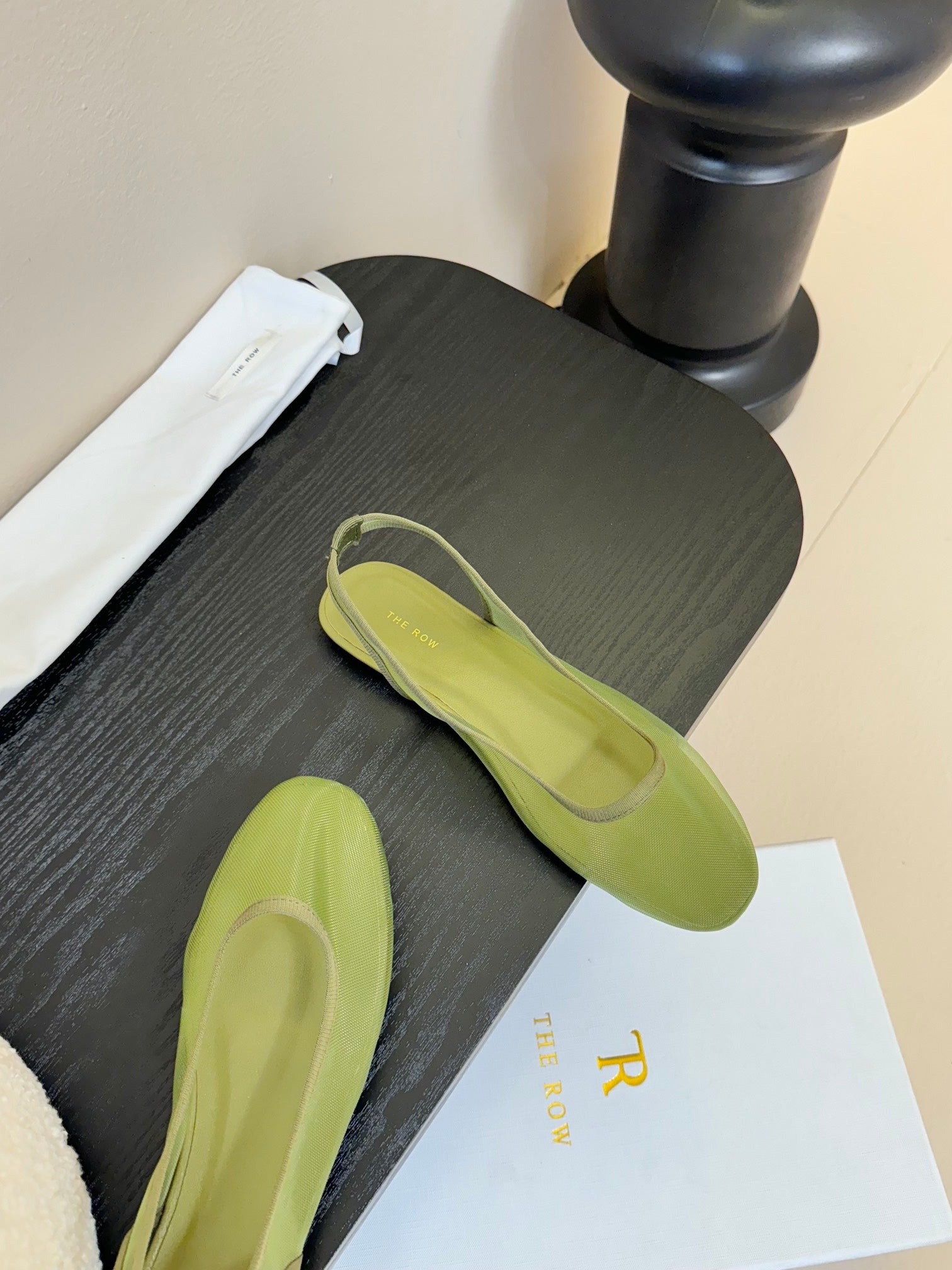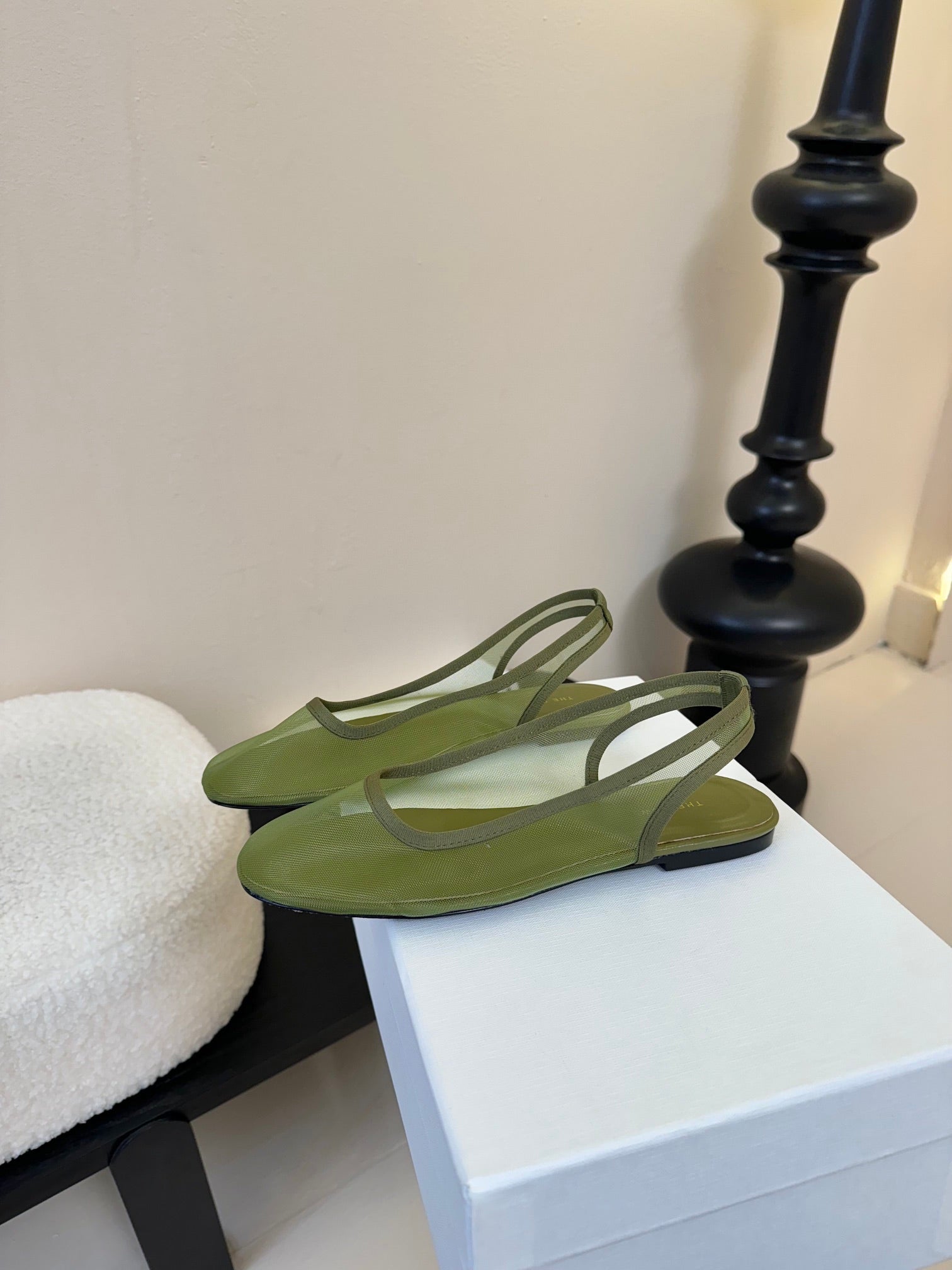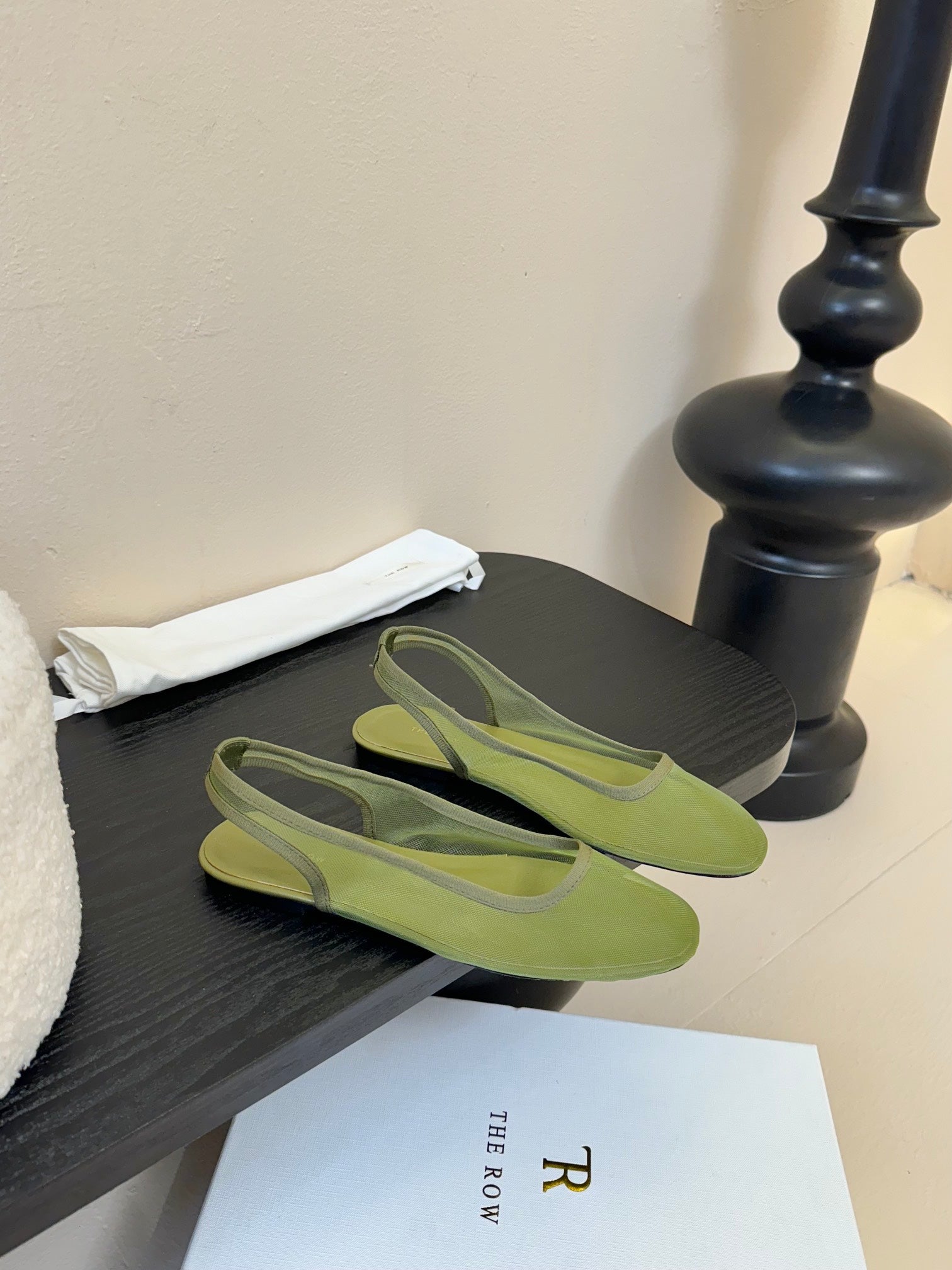 The Row Slingback Flat 10mm Green Mesh And Sheepskin 334167