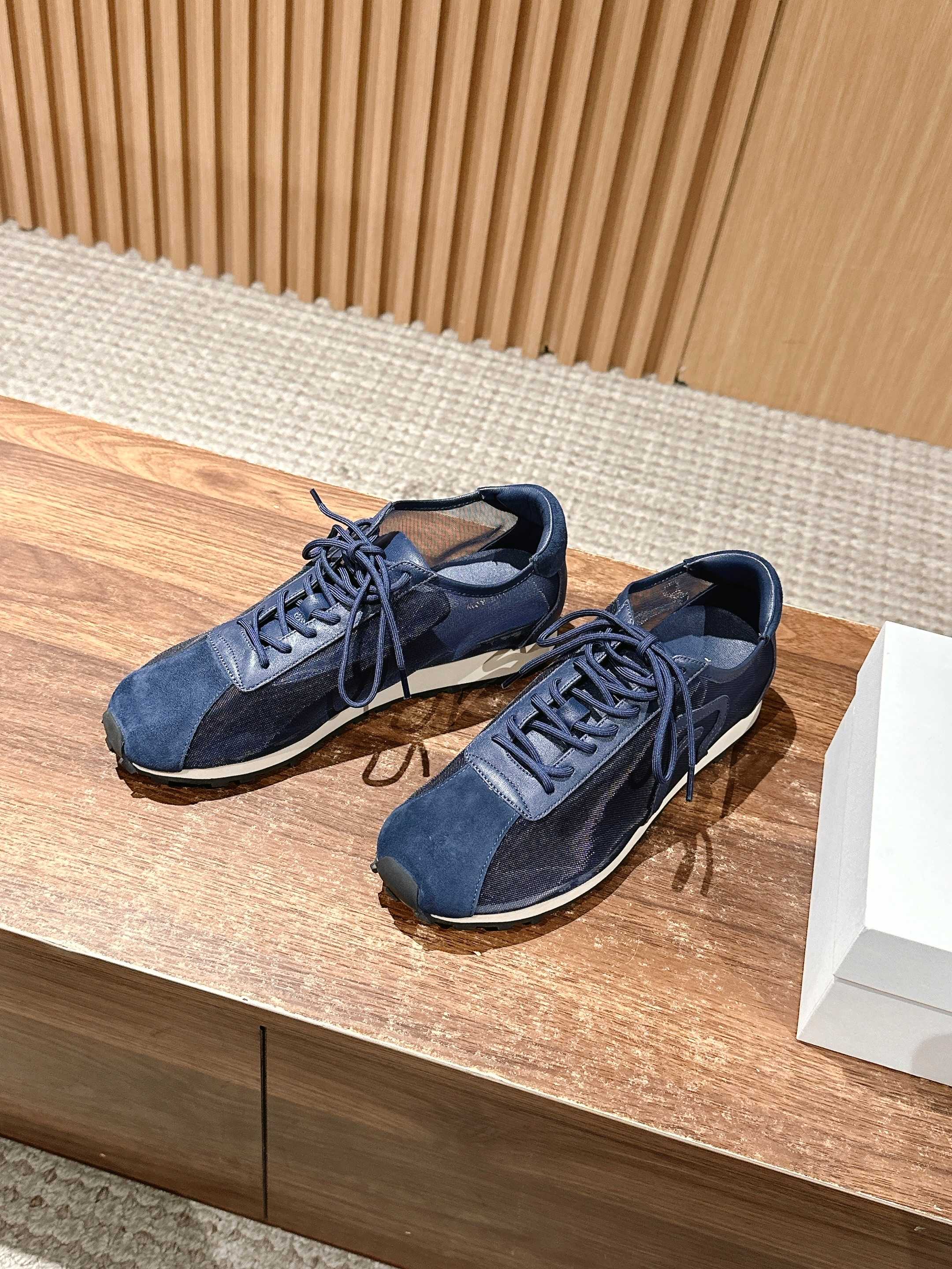 The Row Sneakers Navy Blue Mesh And Cowhide 330593