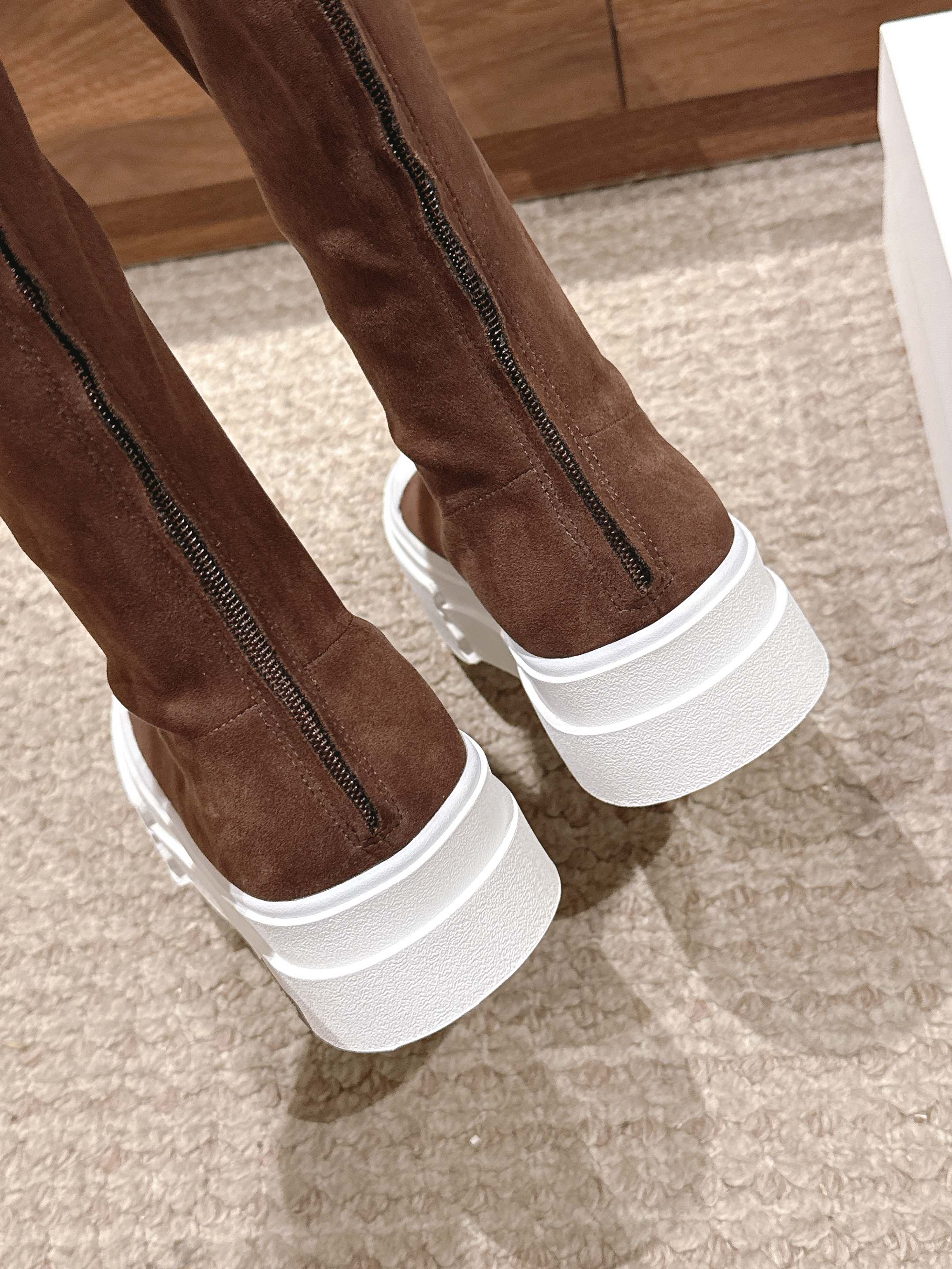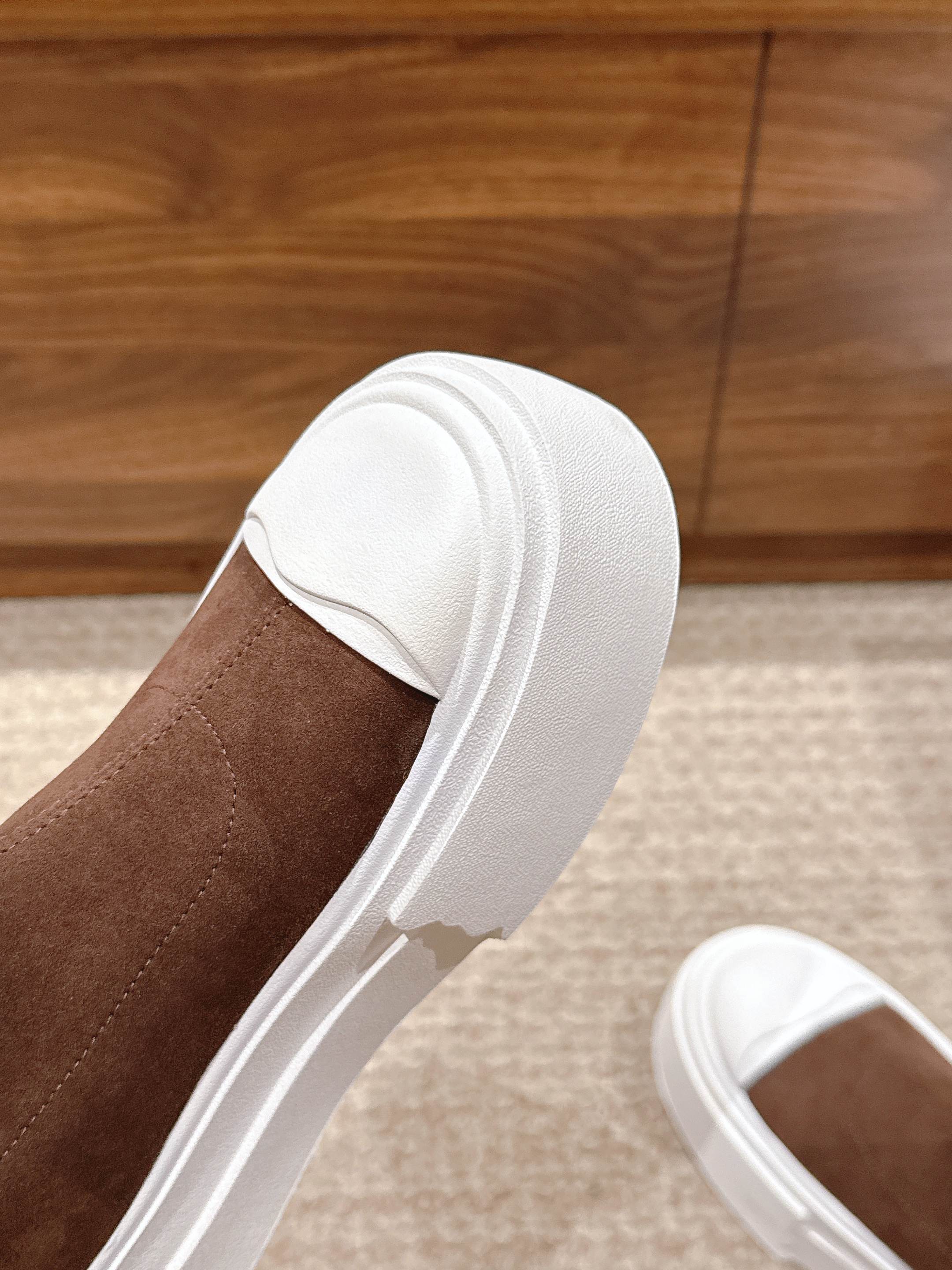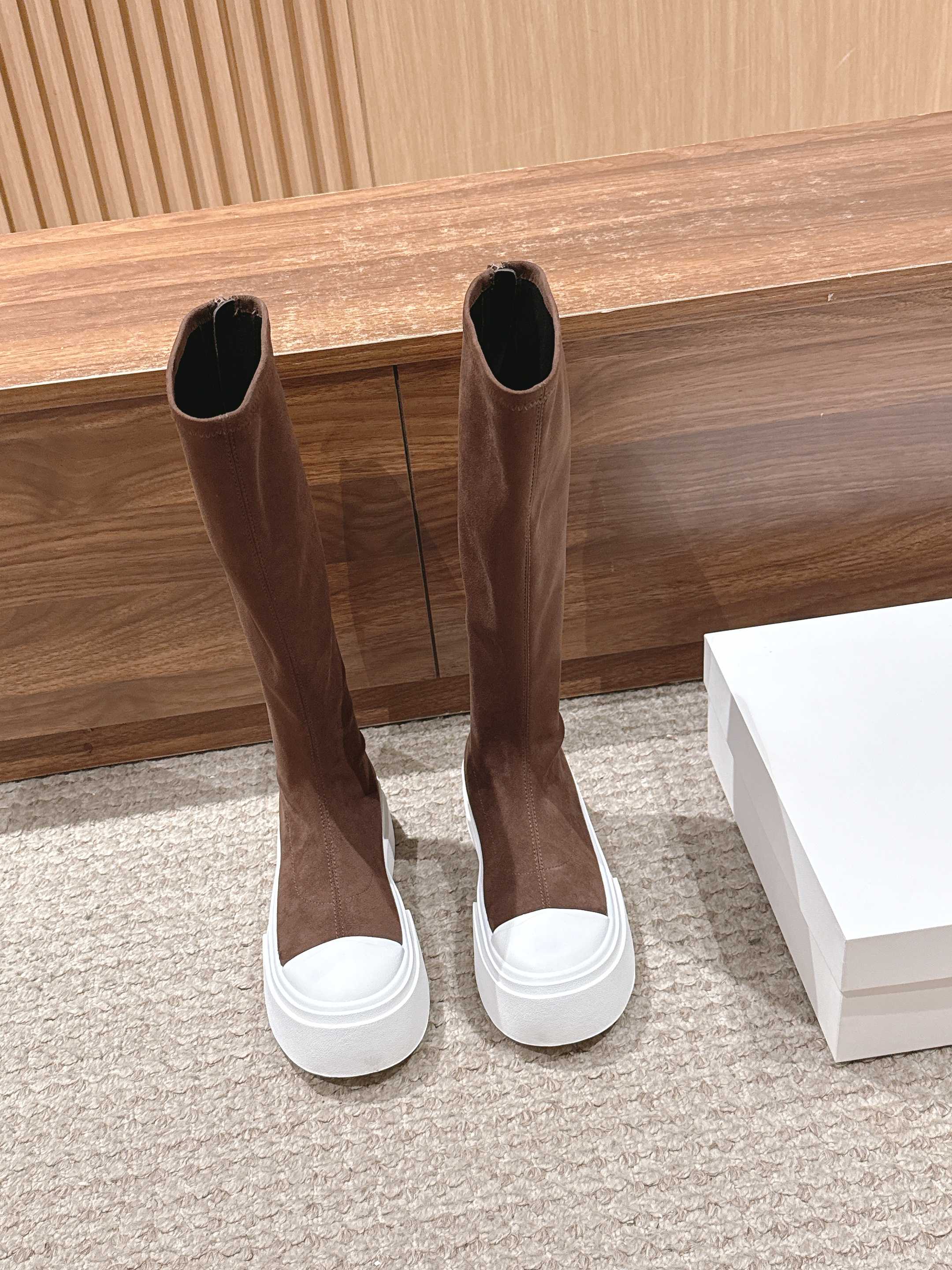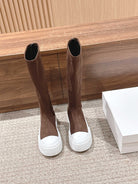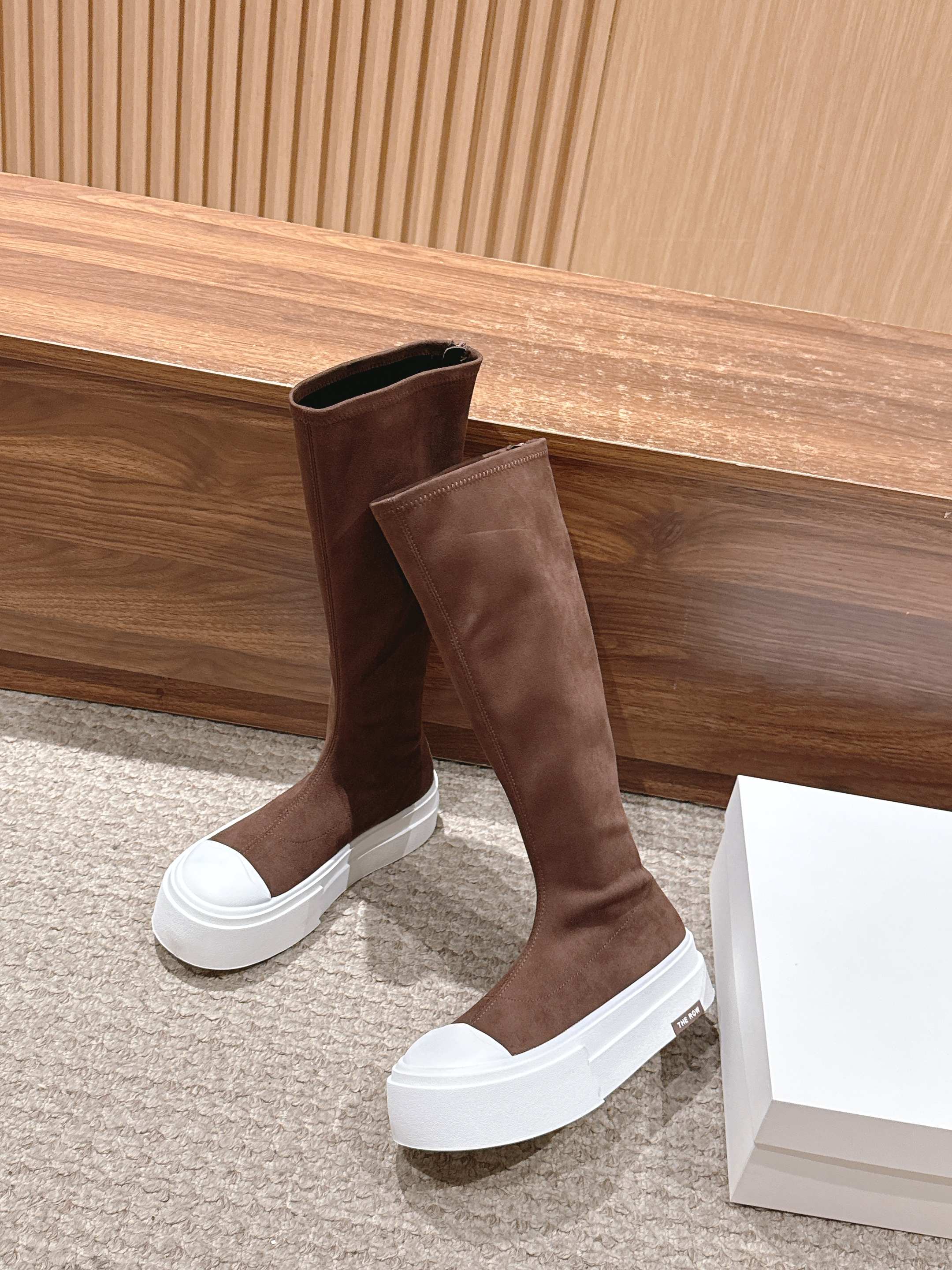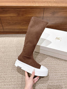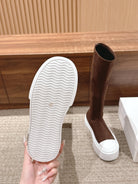 The Row Thick-soled Classic Knee-high Boots Brown White Suede 444171